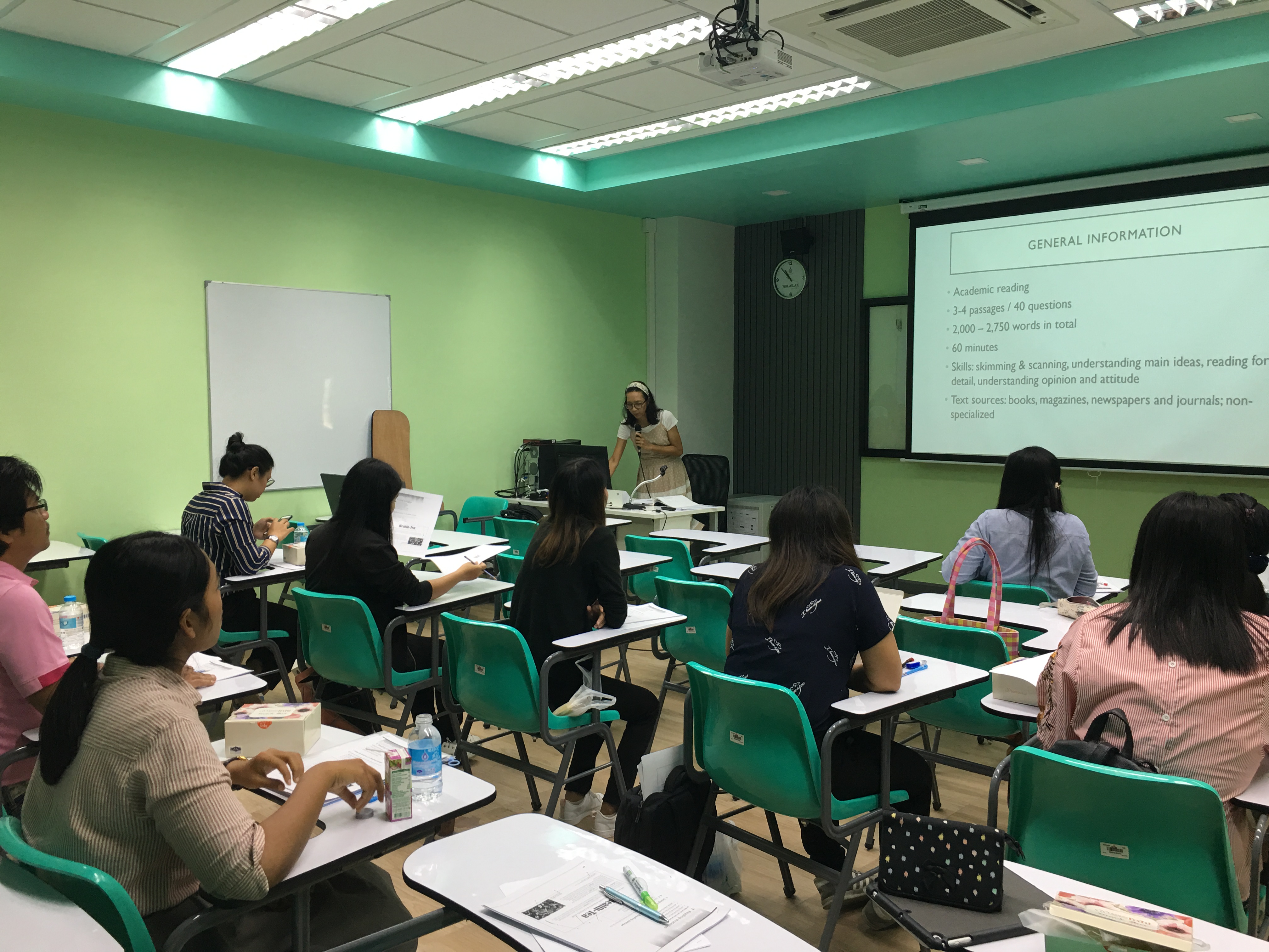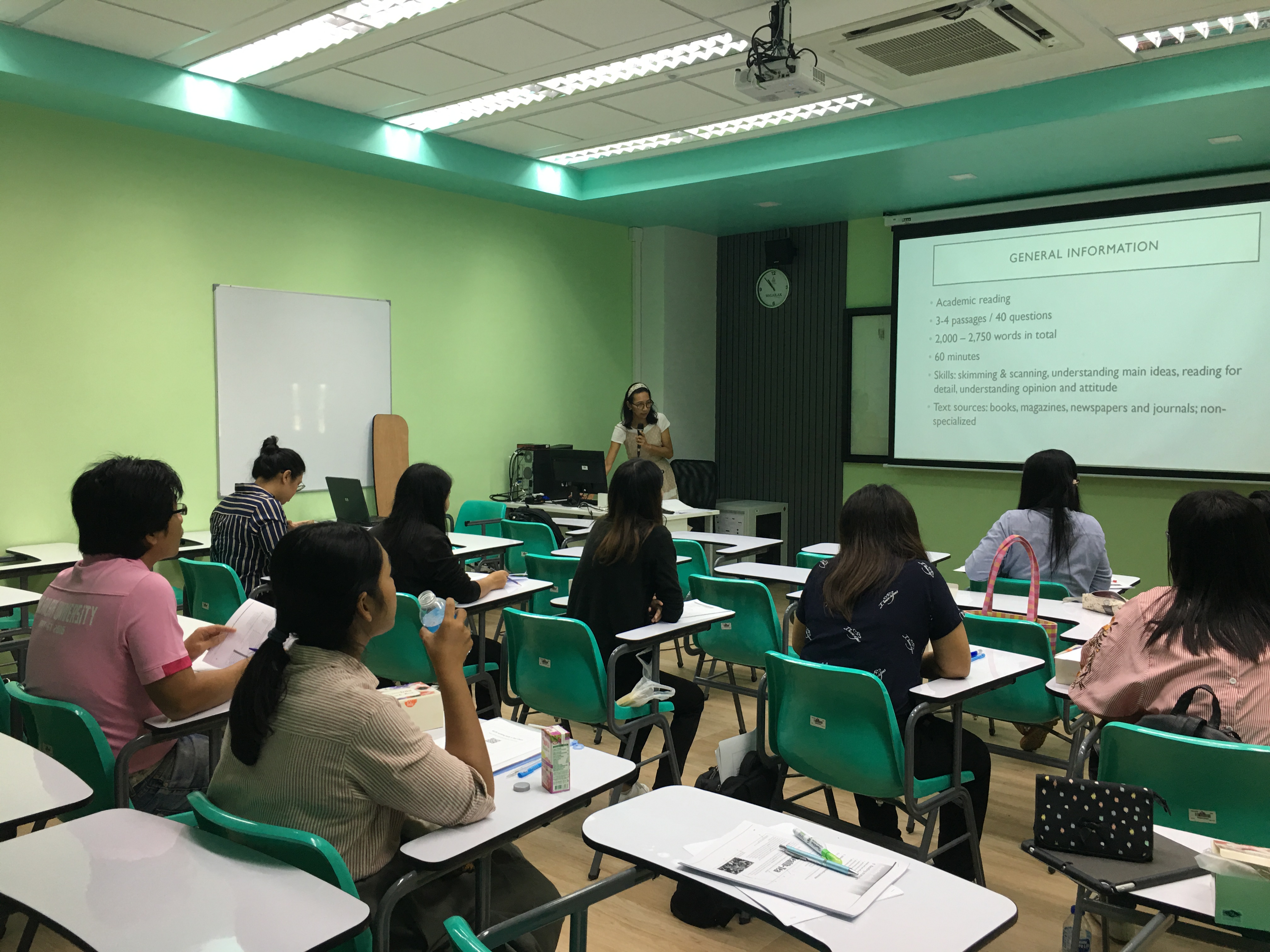 เมื่อวันที่ 29 มิถุนายน 2562 สำนักวิชาศิลปศาสตร์ได้จัดการอบรมภาษาอังกฤษเพื่อการสอบ IELTS ภายใต้ โครงการพัฒนาทักษะการสื่อสารภาษาอังกฤษสำหรับบุคลากรสำนักวิชาศิลปศาสตร์ ณ ห้อง AD 1304 อาคารปฏิบัติการสถาปัตยกรรมและการออกแบบ โดยมีอาจารย์ ดร. วรรัตน์ หวานจิตต์ อาจารย์ภูมิ ชาญป้อม และ Mr. Simon Moxon อาจารย์ประจำหลักสูตรภาษาอังกฤษ สำนักวิชาศิลปศาสตร์ เป็นวิทยากรในการอบรม เพื่อให้ความรู้เกี่ยวกับเทคนิคในการสอบ IELTS โดยในการจัดอบรมครั้งนี้มีผู้เข้าร่วมการอบรมทั้งสิ้น 10 คน