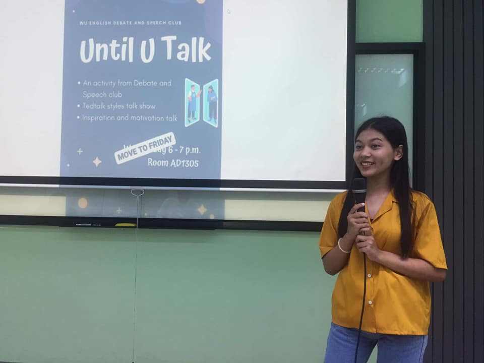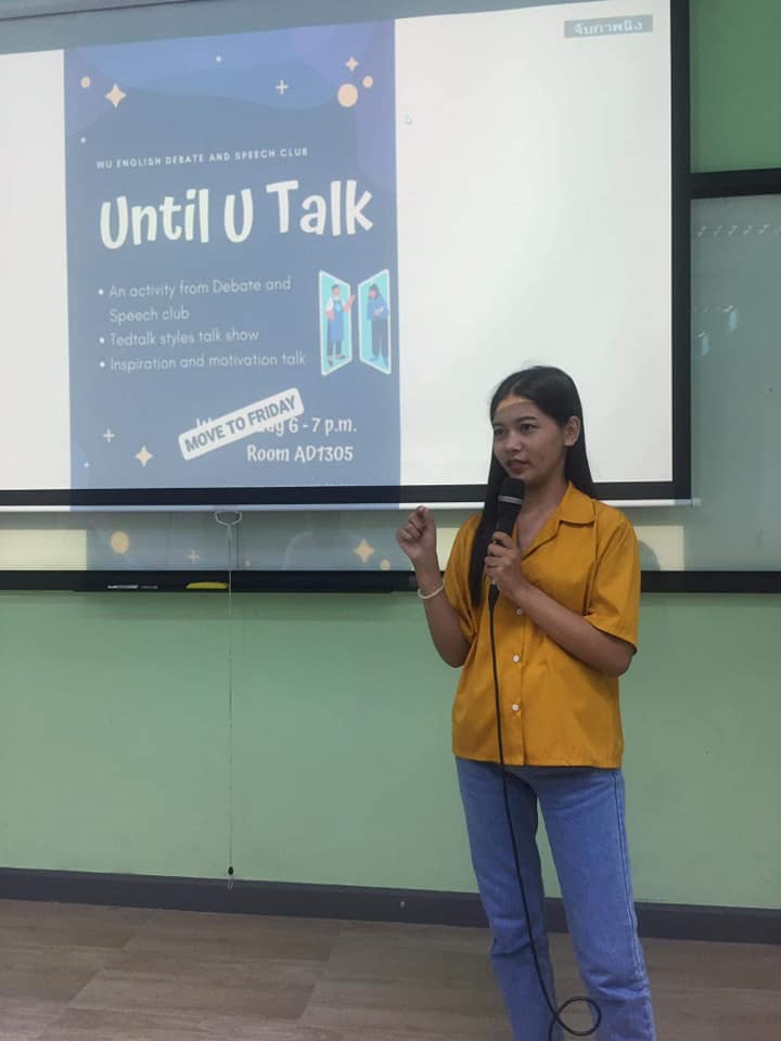 วันศุกร์ที่ 2 เมษายน 2564 นักศึกษาชมรม WU English Debate and Speech จัดกิจกรรมฝึกการปราศรัยภาษาอังกฤษแบบ Ted Talks