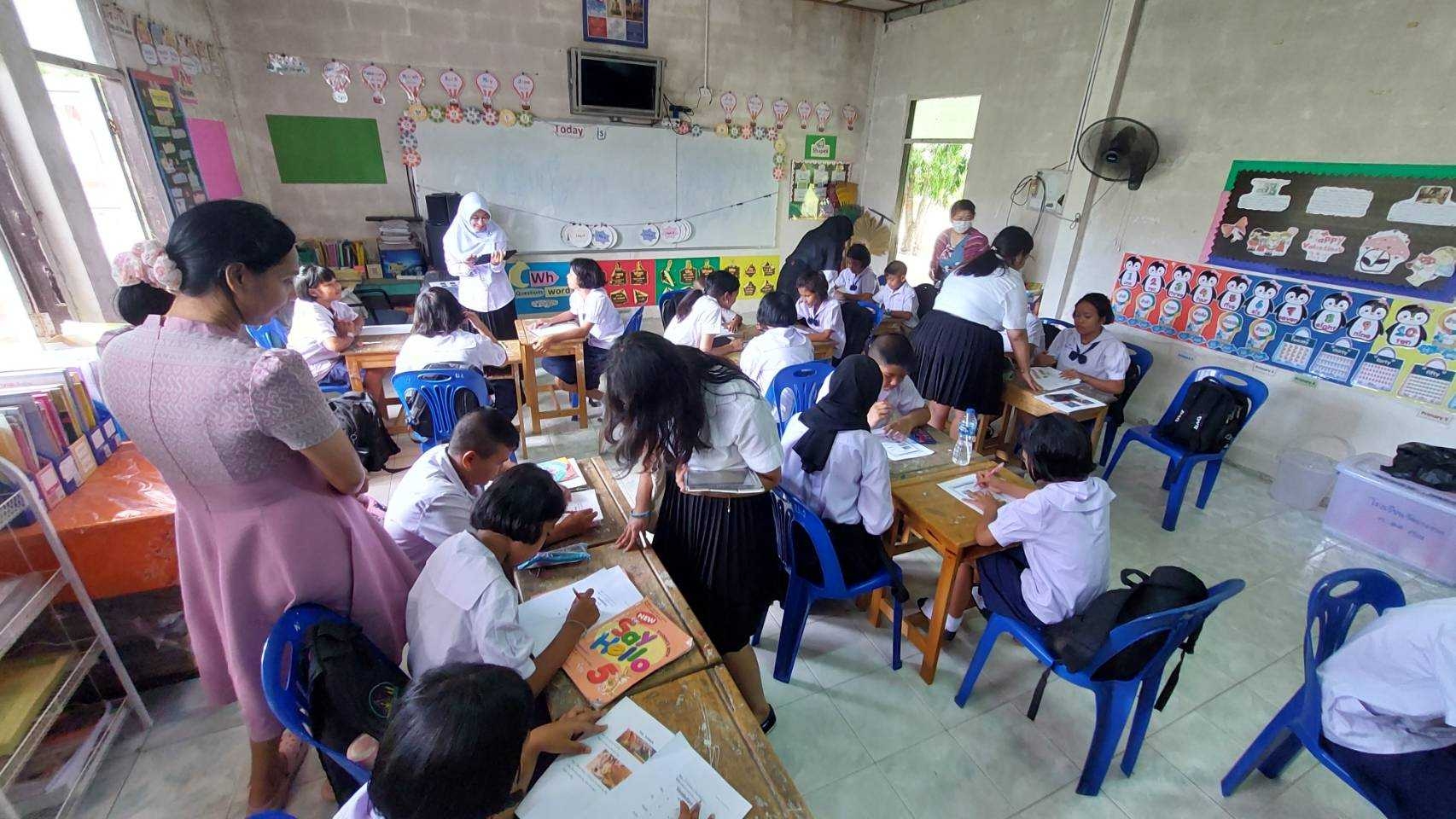 ภาคการศึกษาที่ 1/2566 ที่ผ่านมา ผศ.ดร.พัชรี อิ่มศรี อาจารย์ประจำหลักสูตรภาษาอังกฤษ สำนักวิชาศิลปศาสตร์ ร่วมกับศูนย์บริการวิชาการ มหาวิทยาลัยวลัยลักษณ์ ได้นำนักศึกษาสาขาภาษาอังกฤษ ชั้นปีที่ 1 ที่ลงทะเบียนเรียนในรายวิชา ENG63-101 English Grammar through Translation จัดกิจกรรรมพัฒนาทักษะการอ่านคำศัพท์และการออกเสียงภาษาอังกฤษให้กับนักเรียนชั้นประถมศึกษาปีที่ 5 โรงเรียนชุมชนใหม่ โรงเรียนวัดยางงามและโรงเรียนประทีปศาสน์อิสมาอีลอนุสรณ์