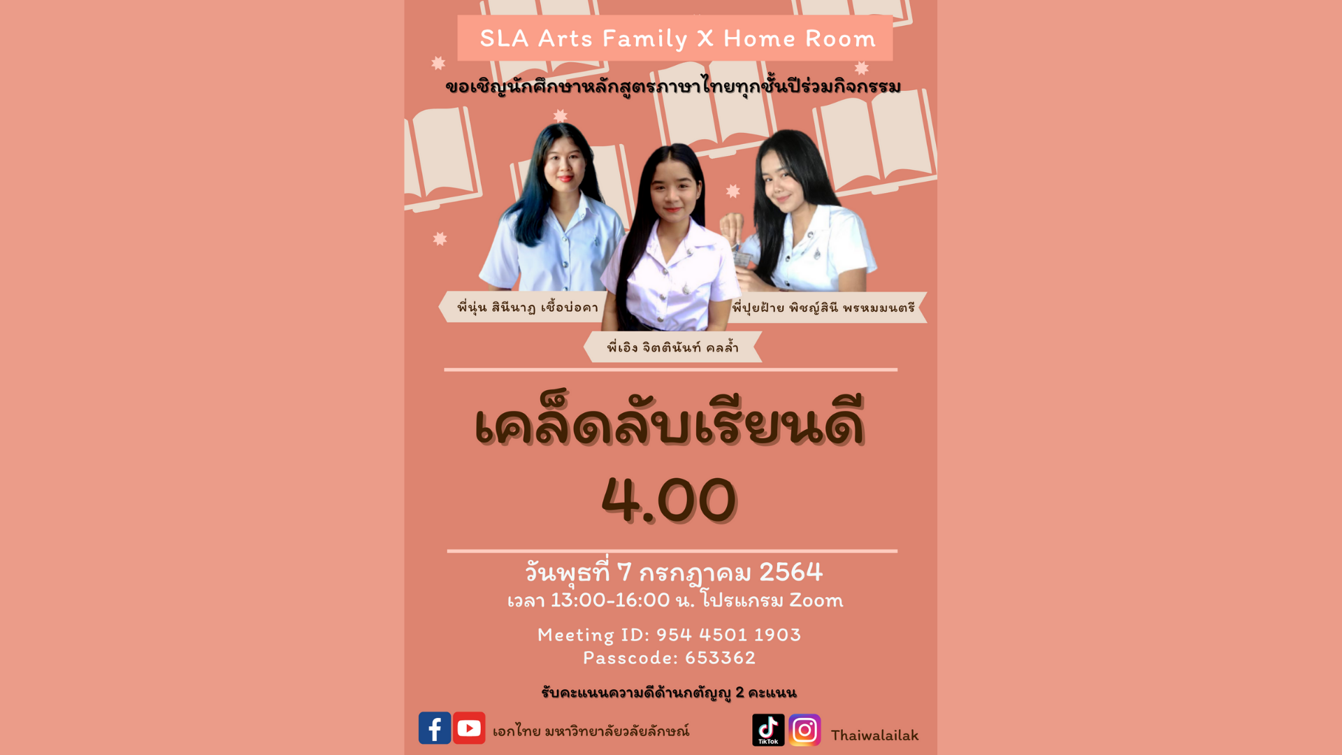 กิจกรรม Liberal Arts Family x Homeroom หลักสูตรภาษาไทย “เคล็ดลับเรียนดี 4.00” อ่านต่อ » กรกฎาคม 9, 2021
