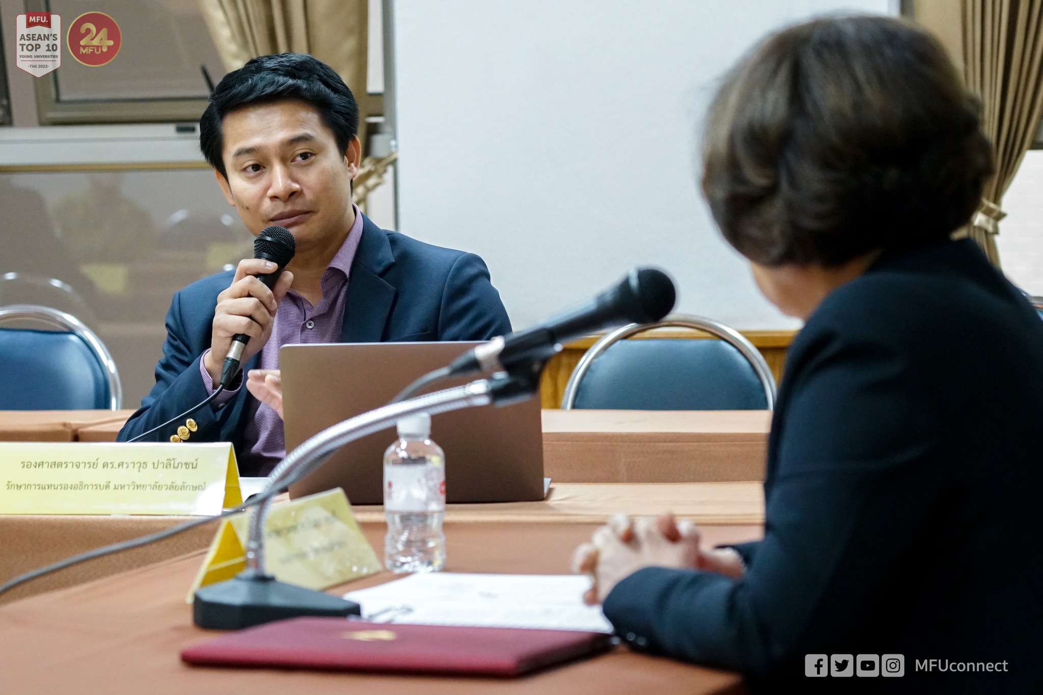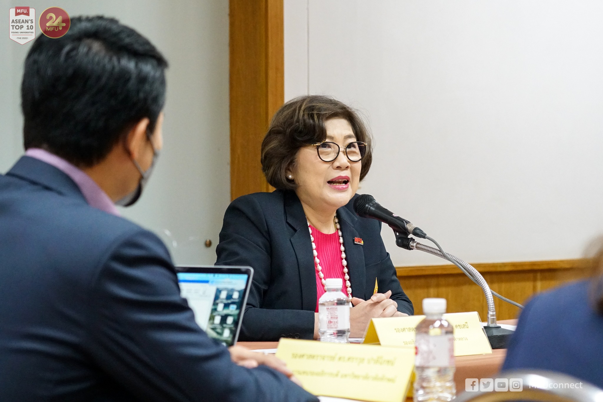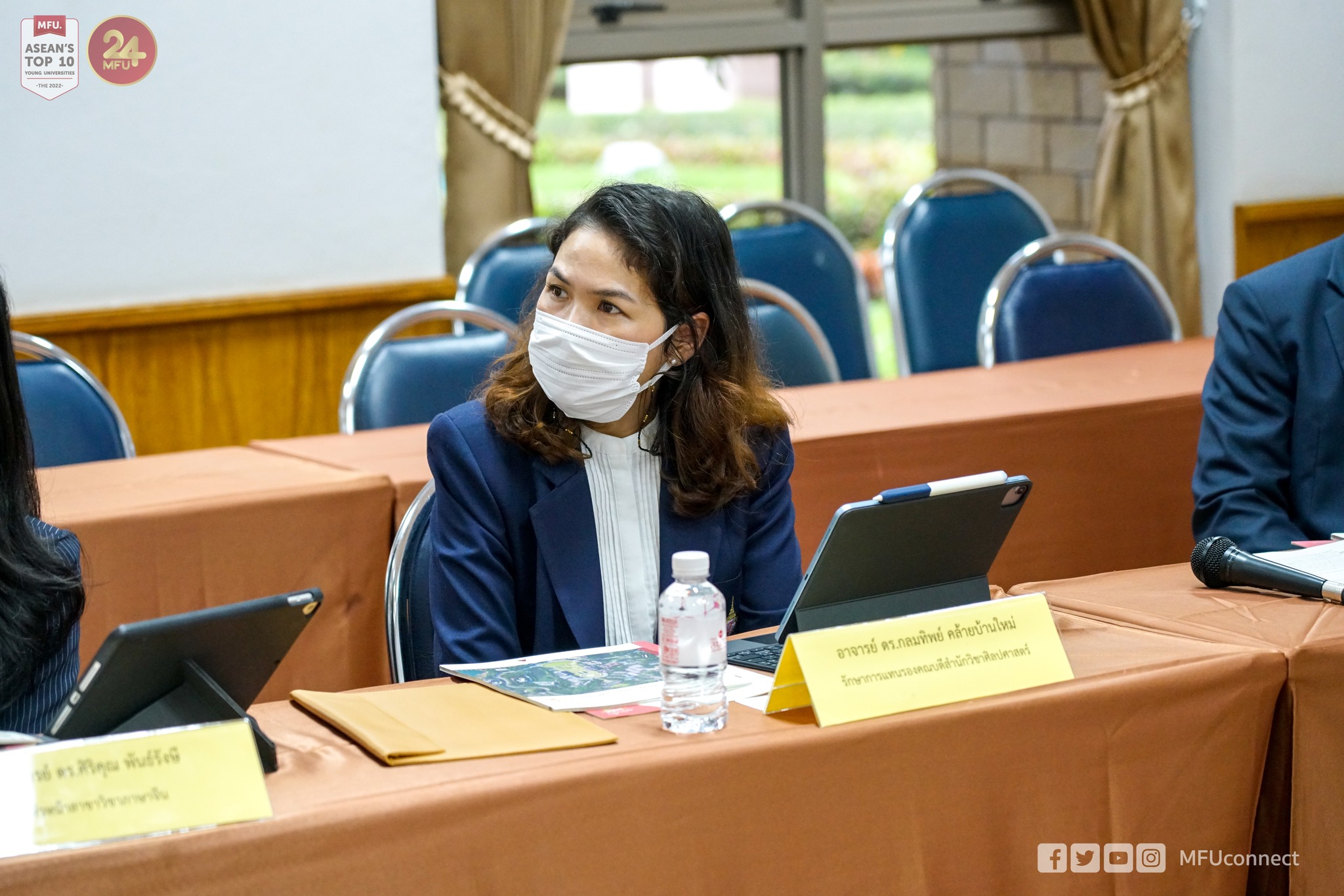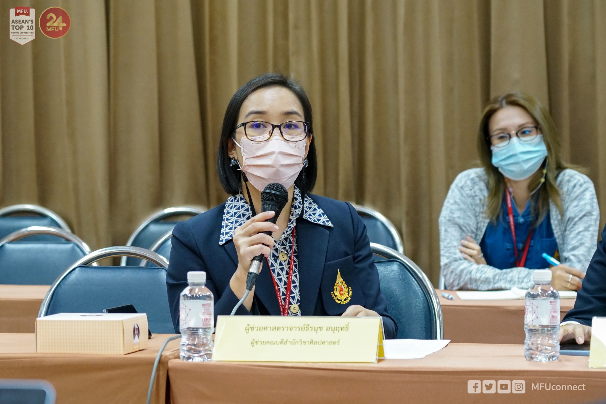 ภาคบ่ายเป็นการประชุมร่วมกับสำนักวิชาศิลปศาสตร์ มหาวิทยาลัยแม่ฟ้าหลวง โดยมี ผู้ช่วยศาสตราจารย์ธีรนุช อนุฤทธิ์ ผู้ช่วยคณบดีสำนักวิชาศิลปศาสตร์ กล่าวแนะนำสำนักวิชา ร่วมด้วยอาจารย์อัญชิดา ทิพรัตน์ ผู้ช่วยคณบดีฯ ให้ข้อมูลเรื่องการสอบประมวลความรู้ (Exit Exam) และอาจารย์ ดร.ชยาภรณ์ เคารพไทย อาจารย์ประจำสำนักวิชาศิลปศาสตร์ ให้ข้อมูลเรื่องความร่วมมือในการวิจัย