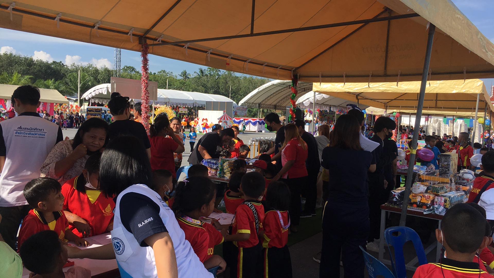 นอกจากซุ้มกิจกรรมของพี่ ๆ สโมสรนักศึกษาสำนักวิชาศิลปศาสตร์แล้ว ในงานยังมีซุ้มกิจกรรมจากหน่วยงานต่าง ๆ ในพื้นที่ อาทิ ด่านศุลกากรอำเภอสิชล ค่ายฝึกรบพิเศษอำเภอสิชล สถานีตำรวจภูธรอำเภอสิชล เป็นต้น กิจกรรมดังกล่าวมีน้องนักเรียนระดับอนุบาลถึงประถมศึกษาในพื้นที่รายรอบวัดเจดีย์ (ไอ้ไข่) รวมถึงบุคคลทั่วไป เข้าร่วมกิจกรรมกว่า 1 พันคน บรรยากาศเป็นไปอย่างสนุกสนานและน่าประทับใจ