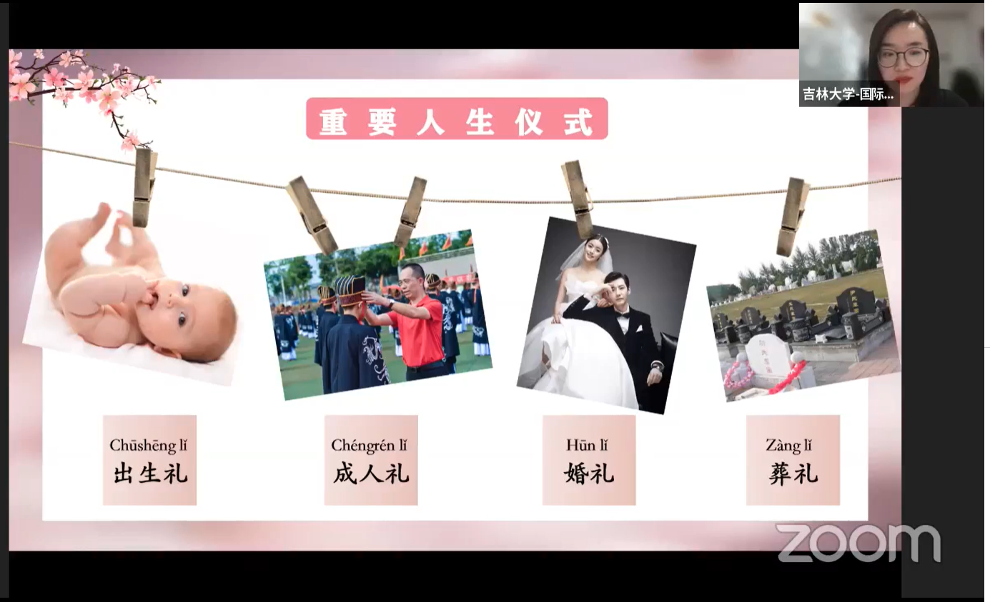 เมื่อวันที่ 1 มีนาคมที่ผ่านมา สาขาวิชาภาษาจีน สำนักวิชาศิลปศาสตร์ ร่วมกับ มหาวิทยาลัยจี๋หลิน (Jilin University) สาธารณรัฐประชาชนจีน จัดบรรยายออนไลน์ในหัวข้อเรื่อง “วัฒนธรรมเกี่ยวกับการเกิดของคนจีน(中国人的出生礼)”  โดยวิทยากรเจ้าของภาษา  Ms.Wang Li(王莉)และ Ms.Wang Na(王娜)อาจารย์จากมหาวิทยาลัยจี๋หลิน (吉林大学) กิจกรรมดังกล่าวเป็นกิจกรรมเสริมการเรียนรู้นอกห้องเรียน นอกจากเป็นการพัฒนาทักษะการฟังและการพูดภาษาจีนของนักศึกษาแล้ว ยังทำให้นักศึกษาเข้าใจในวัฒนธรรมจีนมากขึ้นด้วย