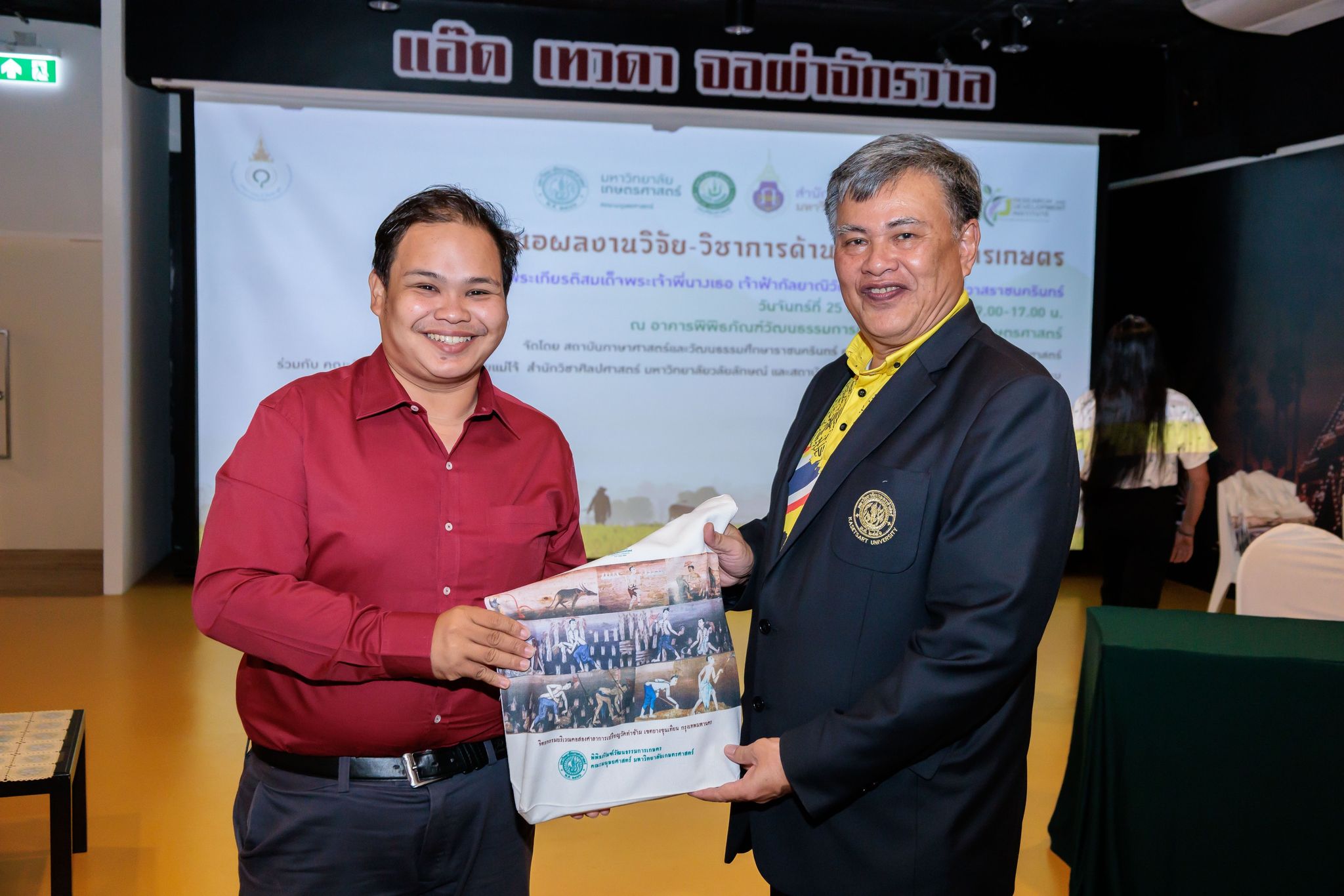 อาจารย์กรกฎ คำแหง อาจารย์ประจำหลักสูตรภาษาไทย สำนักวิชาครุศาสตร์และศิลปศาสตร์ นำเสนอบทความภายในโครงการเฉลิมพระเกียรติสมเด็จพระเจ้าพี่นางเธอ เจ้าฟ้ากัลยาณิวัฒนา กรมหลวงนราธิวาสราชนครินทร์: การนำเสนอผลงานวิจัย-วิชาการด้านวัฒนธรรมการเกษตร ณ อาคารพิพิธภัณฑ์วัฒนธรรมการเกษตร มหาวิทยาลัยเกษตรศาสตร์