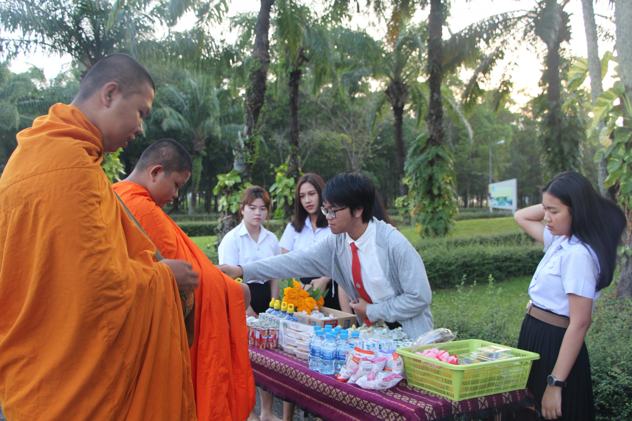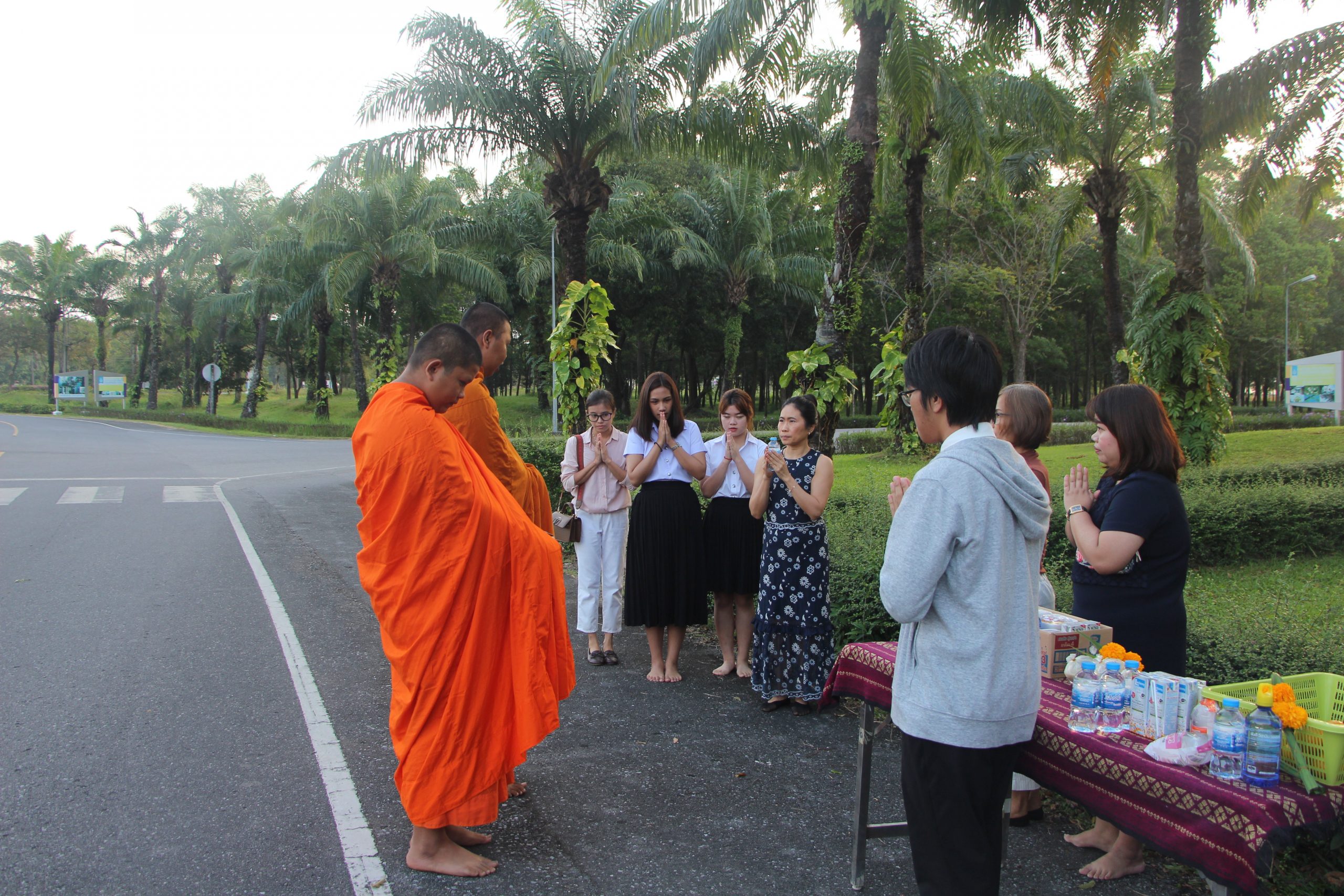 เมื่อศุกร์วันที่ 24 มกราคม 2563 หลักสูตรภาษาอังกฤษ (นานาชาติ) สำนักวิชาศิลปศาสตร์ ได้จัดกิจกรรมให้นักศึกษาในหลักสูตรพบอาจารย์ที่ปรึกษา โดยในช่วงเช้าระหว่างเวลา 7.00-8.00 น. ได้มีการตักบาตรร่วมกันระหว่างอาจารย์ นักศึกษา และบุคลากร ซึ่งนิมนต์มาจากวัดคลองดิน ด้านหน้าศาลท่านท้าวจตุคามรามเทพ และศาลทวดตุมปัง บริเวณข้างตึกไทยบุรี เพื่อเสริมสร้างการเรียนรู้เรื่องด้านการทำนุบำรุงศิลปวัฒนธรรม หลังจากเสร็จกิจกรรมการตักบาตรทางหลักสูตรได้มีการพบปะพูดคุยกับนักศึกษาในหลักสูตร ตลอดจนให้คำแนะนำในด้านการเรียนและเรื่องอื่นๆ ให้กับนักศึกษา นอกจากนี้ ผศ.ดร.ภัทร์นรินทร์ ศุภกร รองคณบดีสำนักวิชาศิลปศาสตร์และประธานหลักสูตรฯ ได้มอบรางวัลให้กับนักศึกษาที่มีผลการเรียนดีเยี่ยม 2 คน ได้แก่ นายศิวกร อักษรนำ และ นายวัศพล สถาพร ซึ่งได้เกรดเฉลี่ย 3.70 และ 3.55 โดยลำดับ