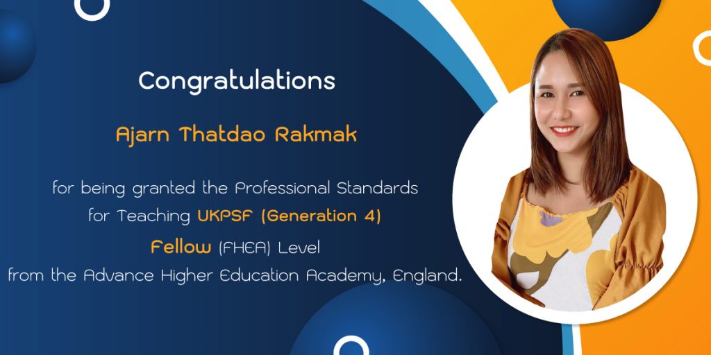 Congratulations to Ajarn Thatdao Rakmak for being granted the Professional Standards for Teaching (UKPSF) generation 4, Fellow level.