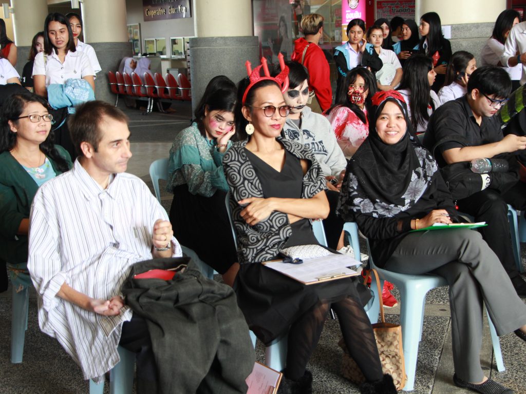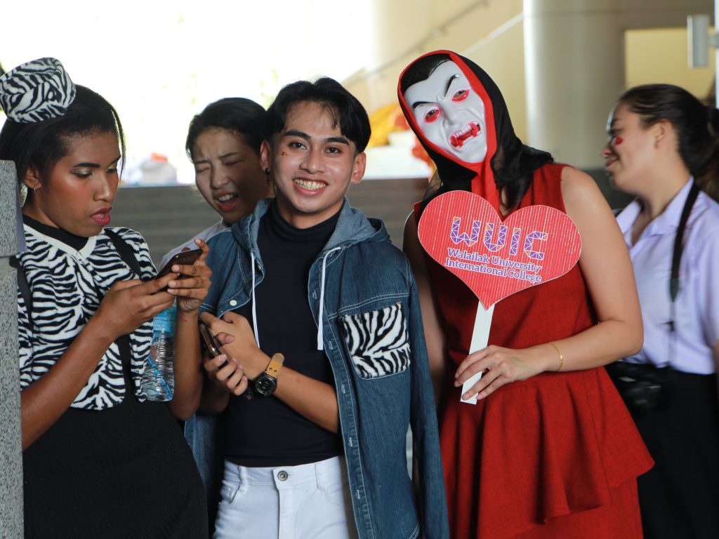 On 30th November 2019, English Program, School of Liberal Arts arranged “Cross-cultural Event – 21st Century Gen Halloween Challenge”. The objective focused on learning outside the classroom by doing activities. The event took place at 1st Floor – Hall, Thai Buri Building. There were many interesting activities to all participants to join such as Halloween Costume Contest, Trick or Treat, Bob Apples and so on.