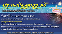 จึงใคร่ขอเชิญผู้สนใจส่งตัวแทนบุคลากร/นักศึกษา เข้าร่วมการประกวดเทพีนพมาศ และร่วมงานประเพณีวันลอยกระทง ประจำปี พ.ศ. 2560 พร้อมทั้งชมการแสดงและกิจกรรมต่างๆ ในวันศุกร์ ที่ 3 พฤศจิกายน 2560 เวลา 17.00-23.30 น. ณ เวทีแสดงลานเพลินตา หน้าอาคารไทยบุรี มหาวิทยาลัยวลัยลักษณ์