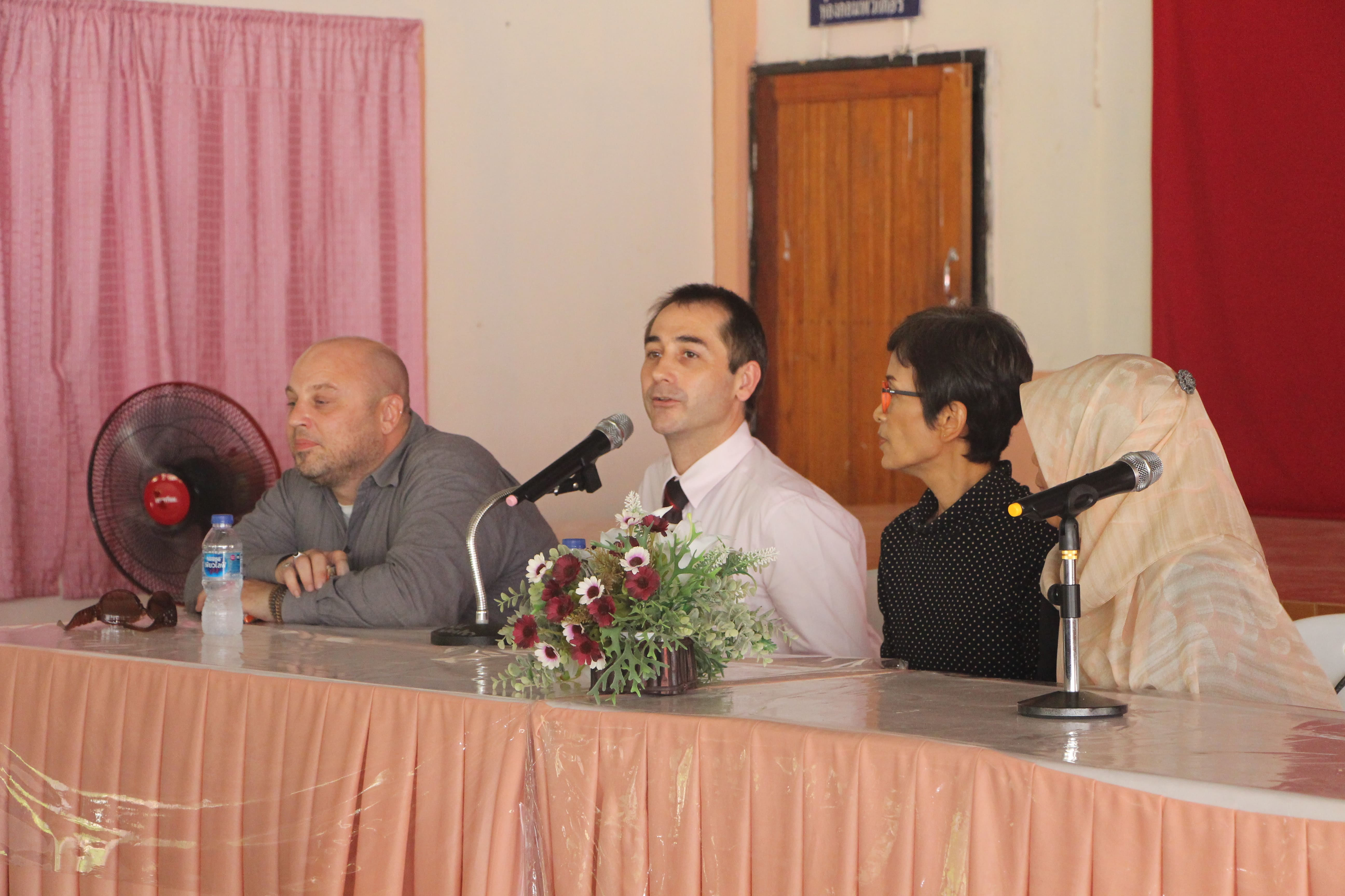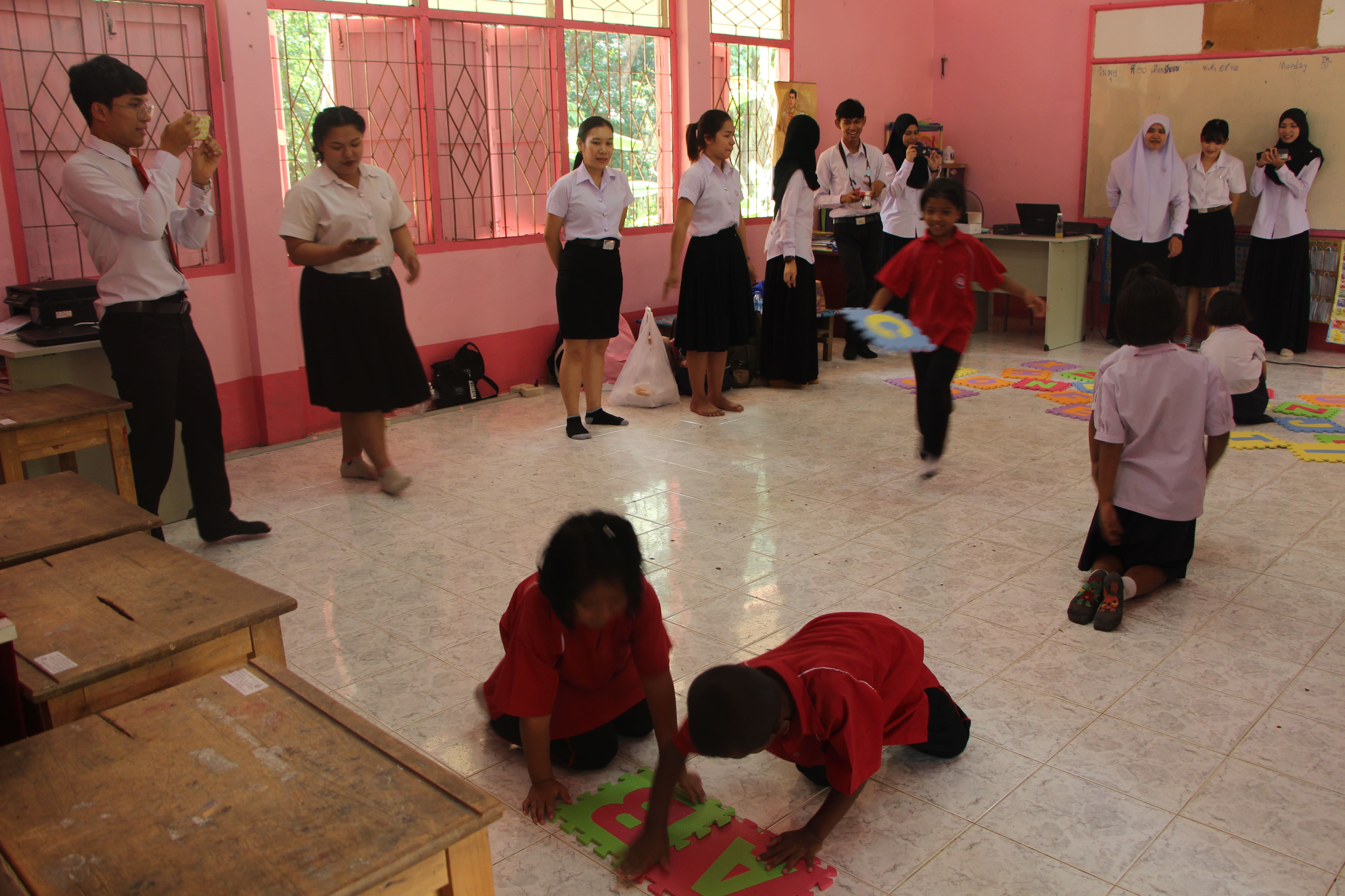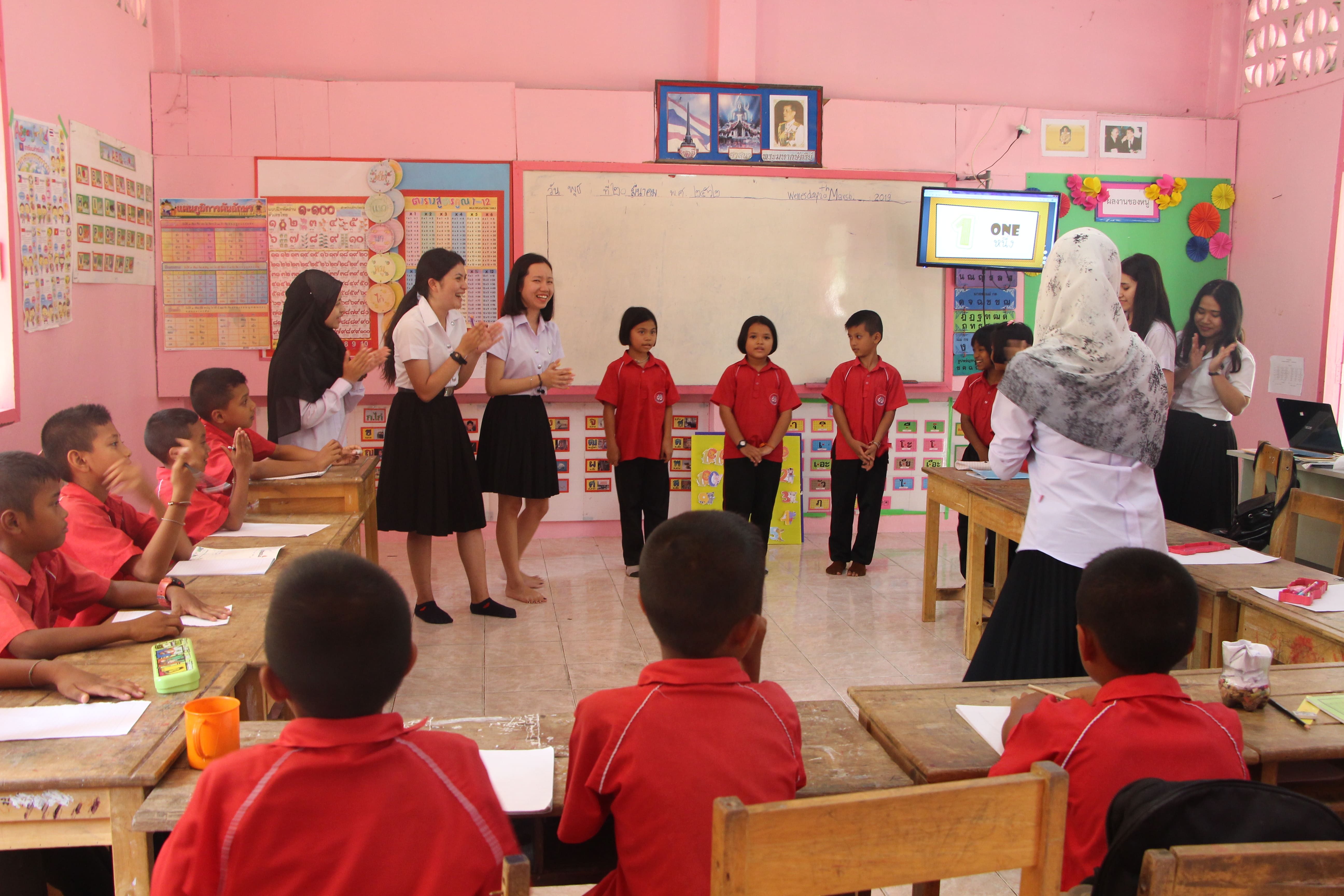 เมื่อวันที่ 20 มีนาคม 2562 คณาจารย์และนักศึกษาชั้นปีที่ 4 หลักสูตรภาษาอังกฤษ รายวิชา EFL-410 Senior Project จำนวน 90 คน ได้ลงพื้นที่เก็บข้อมูลการทำสื่อการเรียนออนไลน์ประกอบการเรียนการสอนภาษาอังกฤษ ณ โรงเรียนบ้านไสโป๊ะ อ.นาบอน จ.นครศรีธรรมราช โดยได้รับเกียรติจากนางสุกฤตา วิษณุพงษ์พร ผู้อำนวยการโรงเรียนบ้านไสโป๊ะ และคณะกรรมการสถานศึกษา กล่าวต้อนรับคณาจารย์และนักศึกษา พร้อมพูดคุยแลกเปลี่ยนแนวทางการจัดการเรียนการสอนของโรงเรียน ทั้งนี้ นักศึกษาได้พูดคุยแลกเปลี่ยนประสบการณ์การสอนกับคุณครูประจำชั้นเกี่ยวกับประเด็นปัญหาการจัดการเรียนการสอนภาษาอังกฤษชั้นปฐมวัย และทำกิจกรรมร่วมกับนักเรียนโรงเรียนบ้านไสโป๊ะ