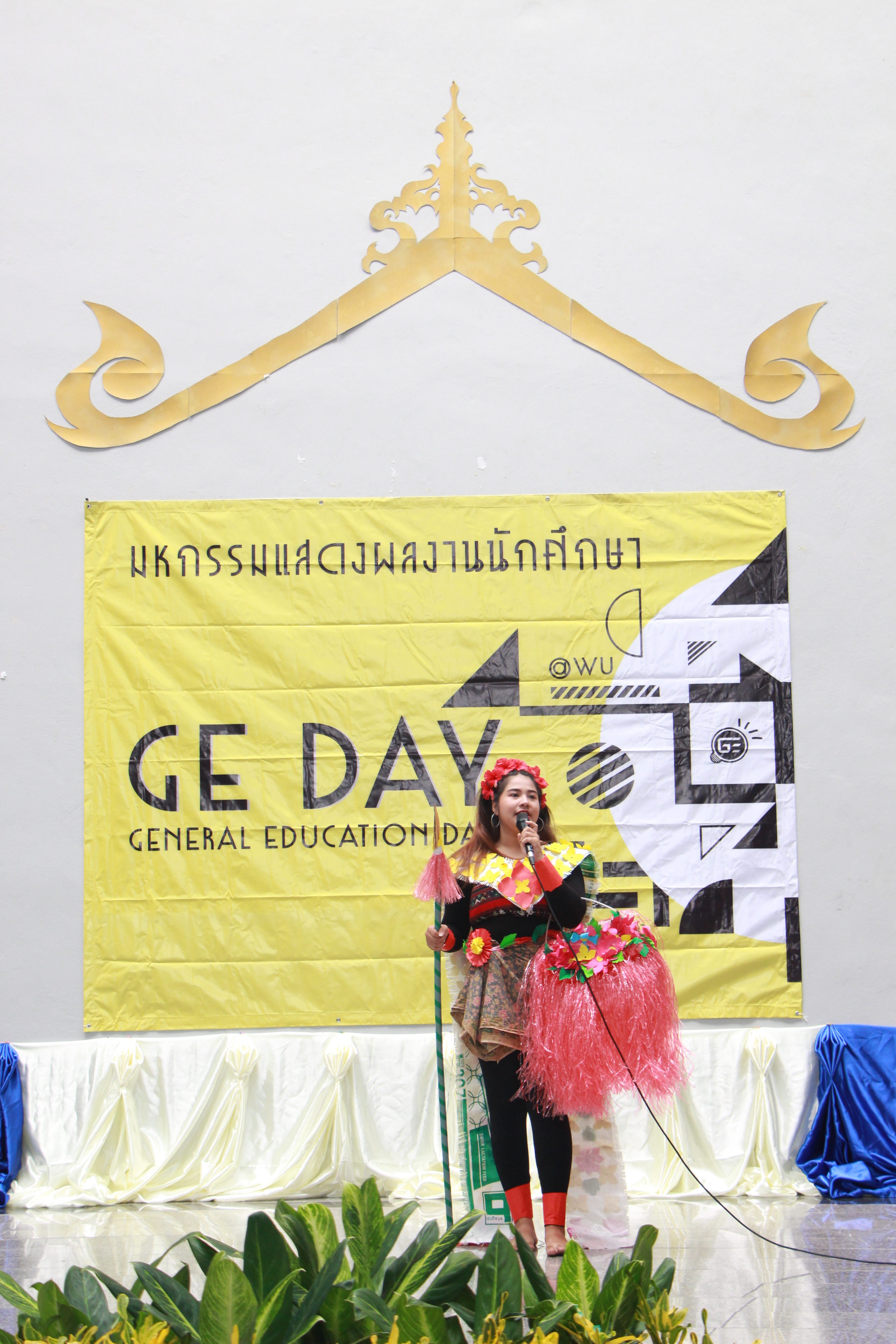 สาขาวิชาศึกษาทั่วไป สำนักวิชาศิลปศาสตร์ ได้จัดกิจกรรม GE DAY : การแสดงผลงานของนักศึกษารายวิชาศึกษาทั่วไป ประจำภาคการศึกษาที่ 3/2561 เมื่อวันที่ 1 พฤษภาคม 2562 เวลา 13.00 น. ณ อาคารปฏิบัติการทางสถาปัตยกรรมและการออกแบบ มหาวิทยาลัยวลัยลักษณ์ โดยได้รับเกียรติจาก รองศาสตราจารย์ ดร.สุรินทร์ ไหมศรีกรด รองอธิการบดีฝ่ายกิจการต่างประเทศและพัฒนาการเรียนการสอนเป็นประธานกล่าวเปิดงาน และมีคณาจารย์ผู้สอนในรายวิชาศึกษาทั่วไป รวมทั้งนักศึกษาที่ลงทะเบียนเรียนในรายวิชาศึกษาทั่วไปเข้าร่วมกิจกรรมเป็นจำนวนมาก