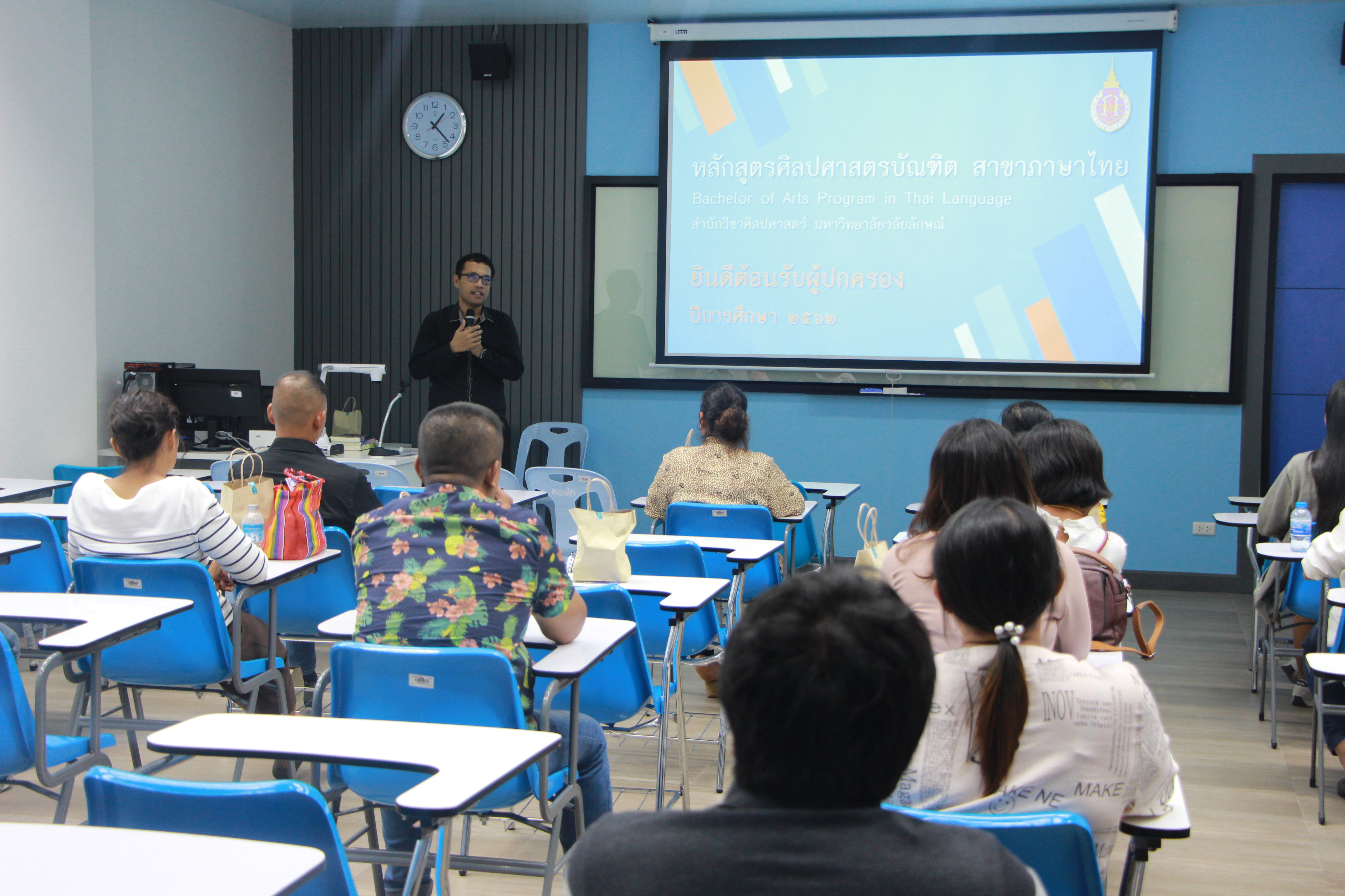 เมื่อวันศุกร์ที่ 14 มิถุนายน 2562 มหาวิทยาลัยวลัยลักษณ์ จัดกิจกรรมต้อนรับผู้ปกครอง ปีการศึกษา 2562 โดยในเวลา 10.30 น. กล่าวต้อนรับผู้ปกครอง แนะนำคณะผู้บริหาร และบรรยายภาพรวมของมหาวิทยาลัยวลัยลักษณ์ จากนั้นเปิดโอกาสให้ผู้ปกครองแลกเปลี่ยน ซักถาม และเวลา 12.00-13.30 น. ผู้ปกครองเดินทางไปยังสถานที่จัดกิจกรรมคณบดีและคณาจารย์พบผู้ปกครอง ซึ่งสำนักวิชาศิลปศาสตร์จัดกิจกรรมที่ อาคารสถาปัตย์ฯ โดยแยกเป็นหลักสูตรภาษาอังกฤษ ภาษาจีน และภาษาไทย ภายในกิจกรรมดังกล่าวแต่ละหลักสูตรได้แนะนำผู้บริหารสำนักวิชาฯ บุคลากรประจำหลักสูตร และแนะนำหลักสูตรให้แก่ผู้ปกครองรับทราบ จากนั้นเปิดโอกาสแลกเปลี่ยน ซักถาม