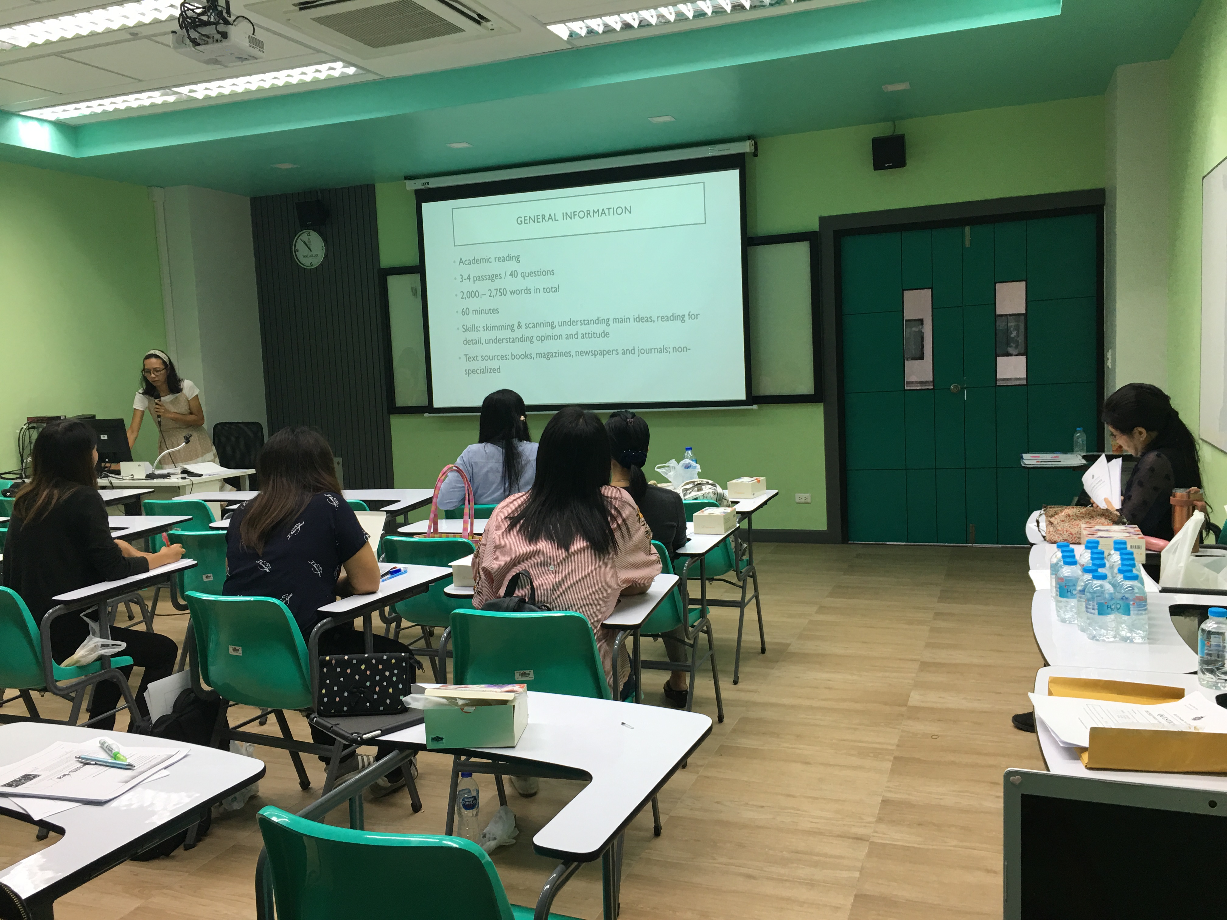 เมื่อวันที่ 29 มิถุนายน 2562 สำนักวิชาศิลปศาสตร์ได้จัดการอบรมภาษาอังกฤษเพื่อการสอบ IELTS ภายใต้ โครงการพัฒนาทักษะการสื่อสารภาษาอังกฤษสำหรับบุคลากรสำนักวิชาศิลปศาสตร์ ณ ห้อง AD 1304 อาคารปฏิบัติการสถาปัตยกรรมและการออกแบบ โดยมีอาจารย์ ดร. วรรัตน์ หวานจิตต์ อาจารย์ภูมิ ชาญป้อม และ Mr. Simon Moxon อาจารย์ประจำหลักสูตรภาษาอังกฤษ สำนักวิชาศิลปศาสตร์ เป็นวิทยากรในการอบรม เพื่อให้ความรู้เกี่ยวกับเทคนิคในการสอบ IELTS โดยในการจัดอบรมครั้งนี้มีผู้เข้าร่วมการอบรมทั้งสิ้น 10 คน