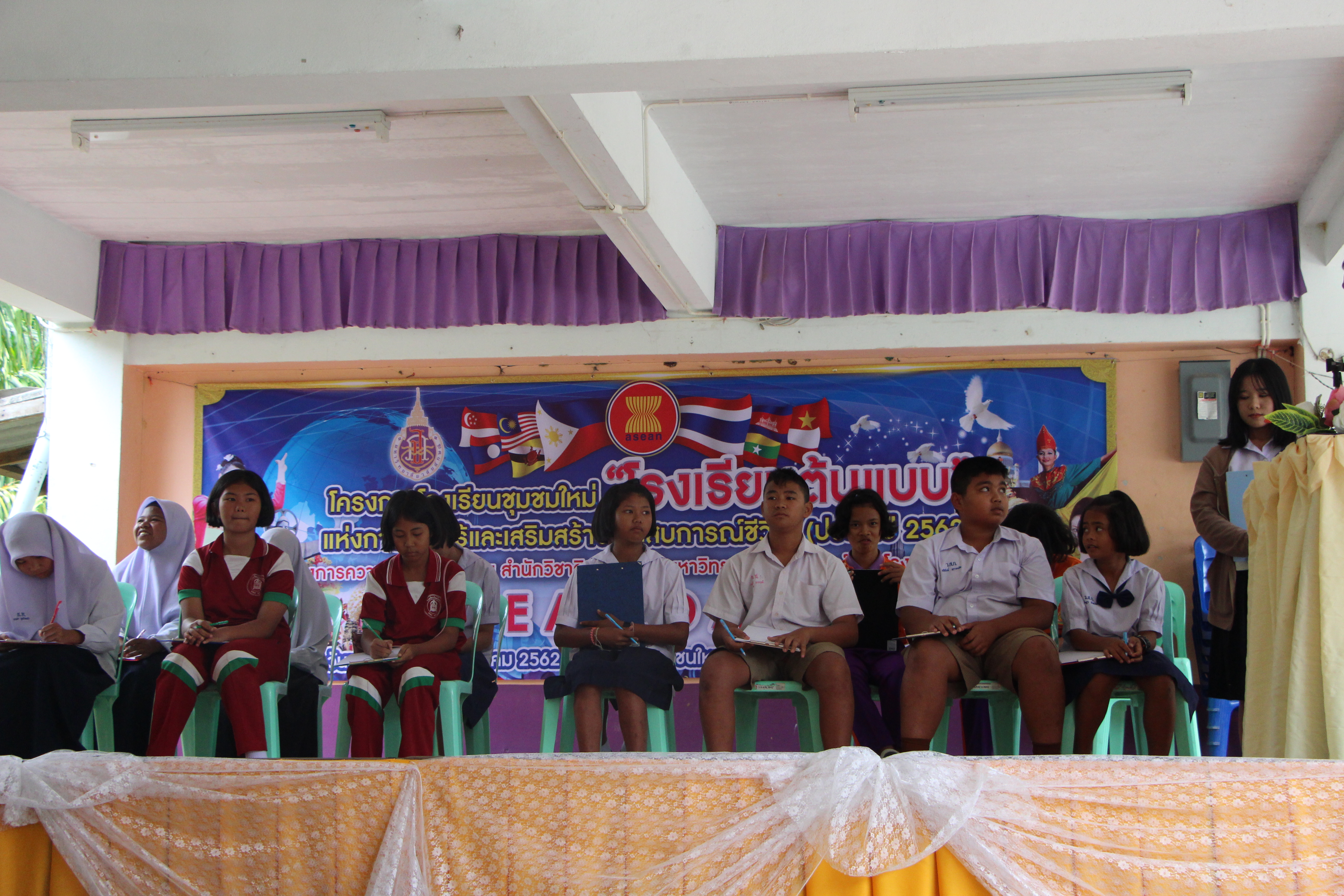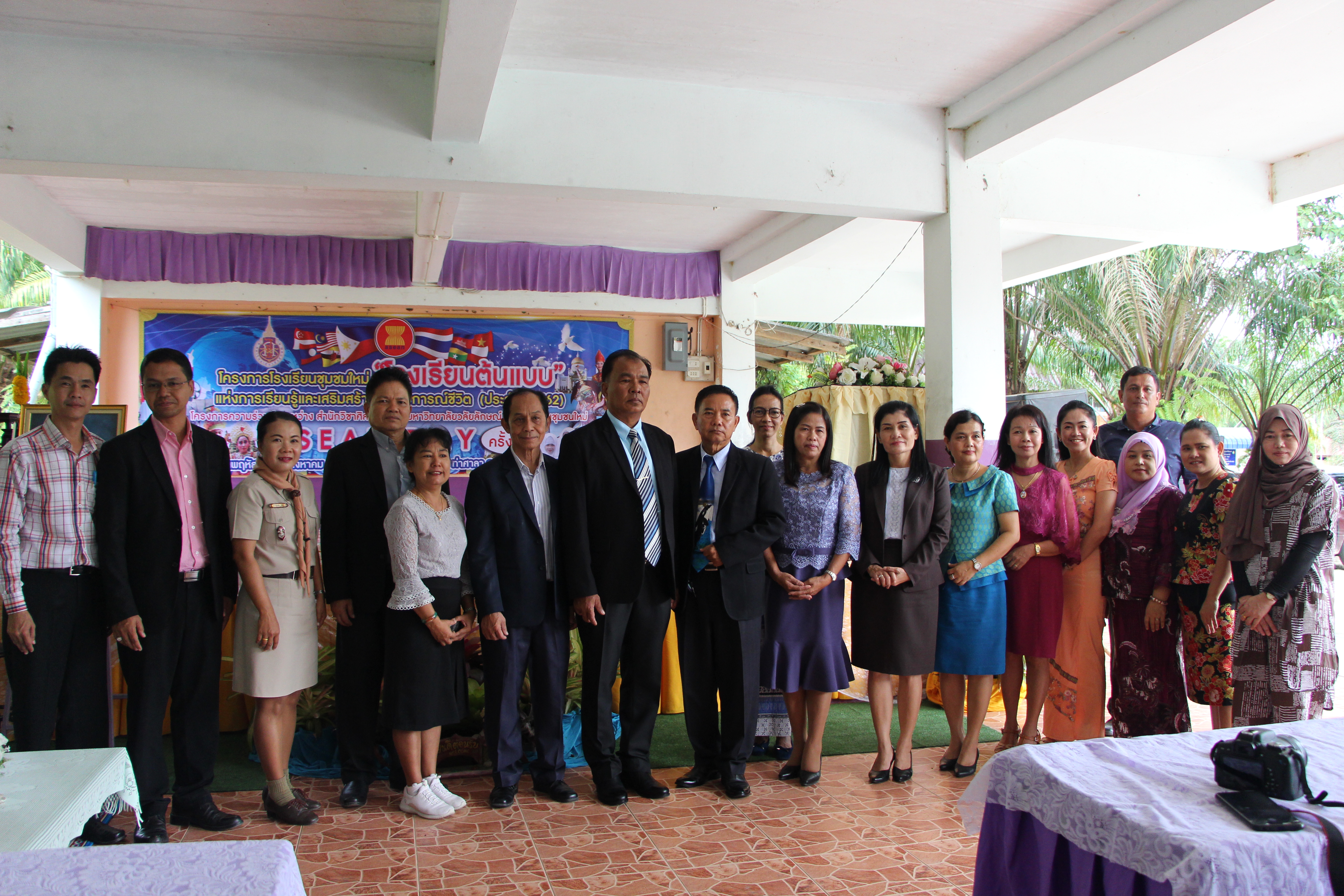 สำนักวิชาศิลปศาสตร์จัดกิจกรรม วันอาเซียน (ASEAN DAY) ครั้งที่ 3 ภายใต้ โครงการวิชาการรับใช้สังคม (WU-Social Engagement) โครงการโรงเรียนต้นแบบแห่งการเรียนรู้และเสริมสร้างประสบการณ์ชีวิต โรงเรียนชุมชนใหม่ ปีที่ 2 เมื่อวันที่ 8 สิงหาคม 2562 ณ โรงเรียนชุมชนใหม่ โดยมี นายวิรัตน์ ไกรแก้ว ผู้อำนวยการสำนักงานเขตพื้นที่การศึกษาประถมศึกษานครศรีธรรมราช เขต 4 เป็นประธานกล่าวเปิดงาน นายสุจินต์ สุดคิด ผู้อำนวยการโรงเรียนชุมชนใหม่ กล่าวรายงานต่อประธานเปิดงาน และผู้ช่วยศาสตราจารย์ ดร.นิพนธ์ ทิพย์ศรีนิมิต คณบดีสำนักวิชาศิลปศาสตร์ มหาวิทยาลัยวลัยลักษณ์ กล่าวต้อนรับผู้เข้าร่วมกิจกรรม