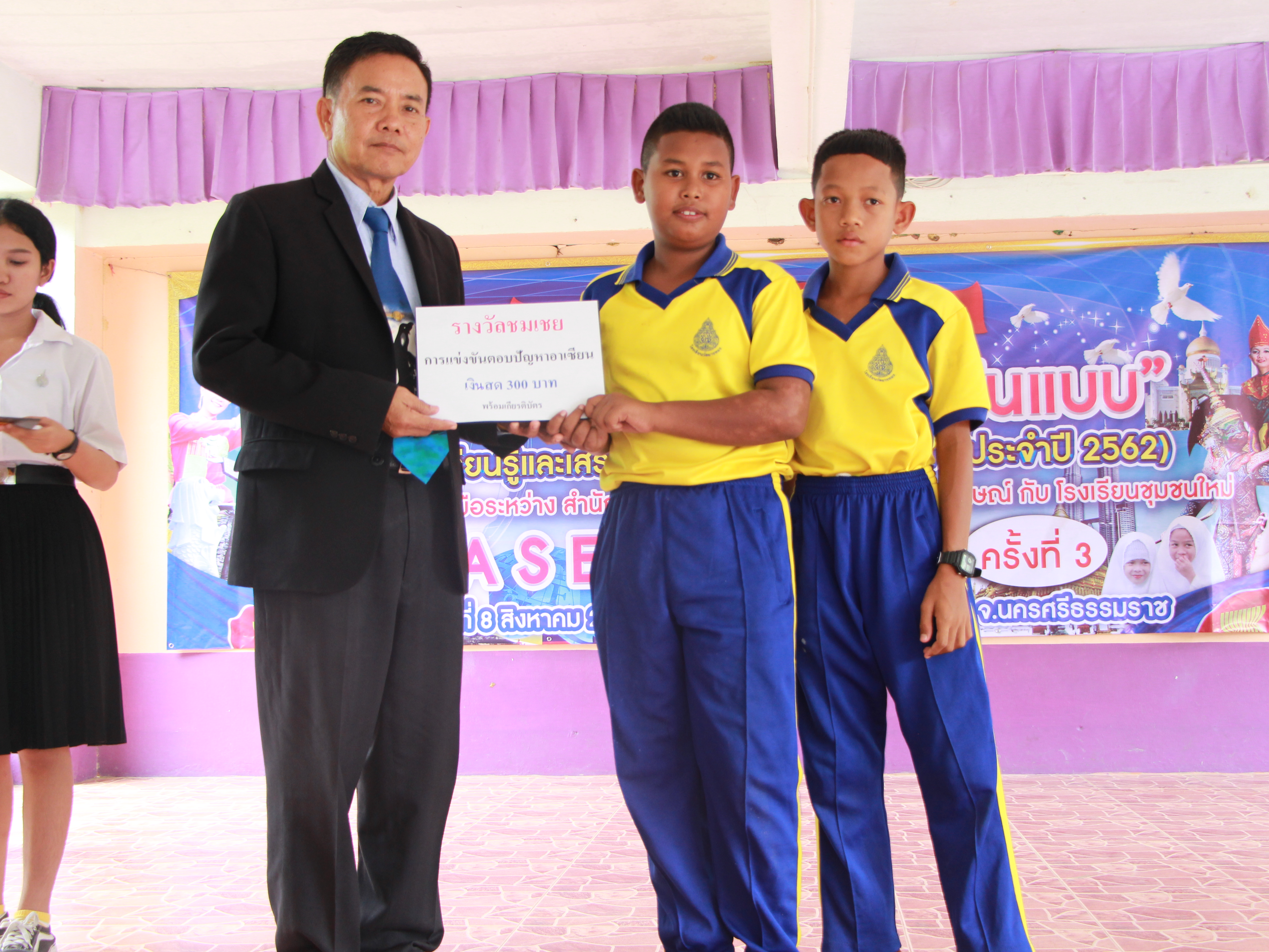 - รางวัลชมเชย ได้แก่ ด.ช.ซาดิส สะมาลา และด.ช.วรวุฒิ เดชวรรณ์ จากโรงเรียนวัดยางทอง และด.ญ.กัญญาณํฐ หนูน้อย และด.ญ.ศุภรดา มาศศรี จากโรงเรียนวัดพระเลียบ