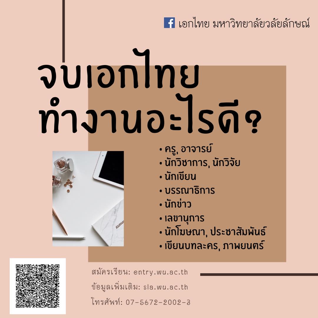 จบหลักสูตรภาษาไทย สำนักวิชาศิลปศาสตร์ มหาวิทยาลัยวลัยลักษณ์ สามารถประกอบอาชีพได้หลากหลาย