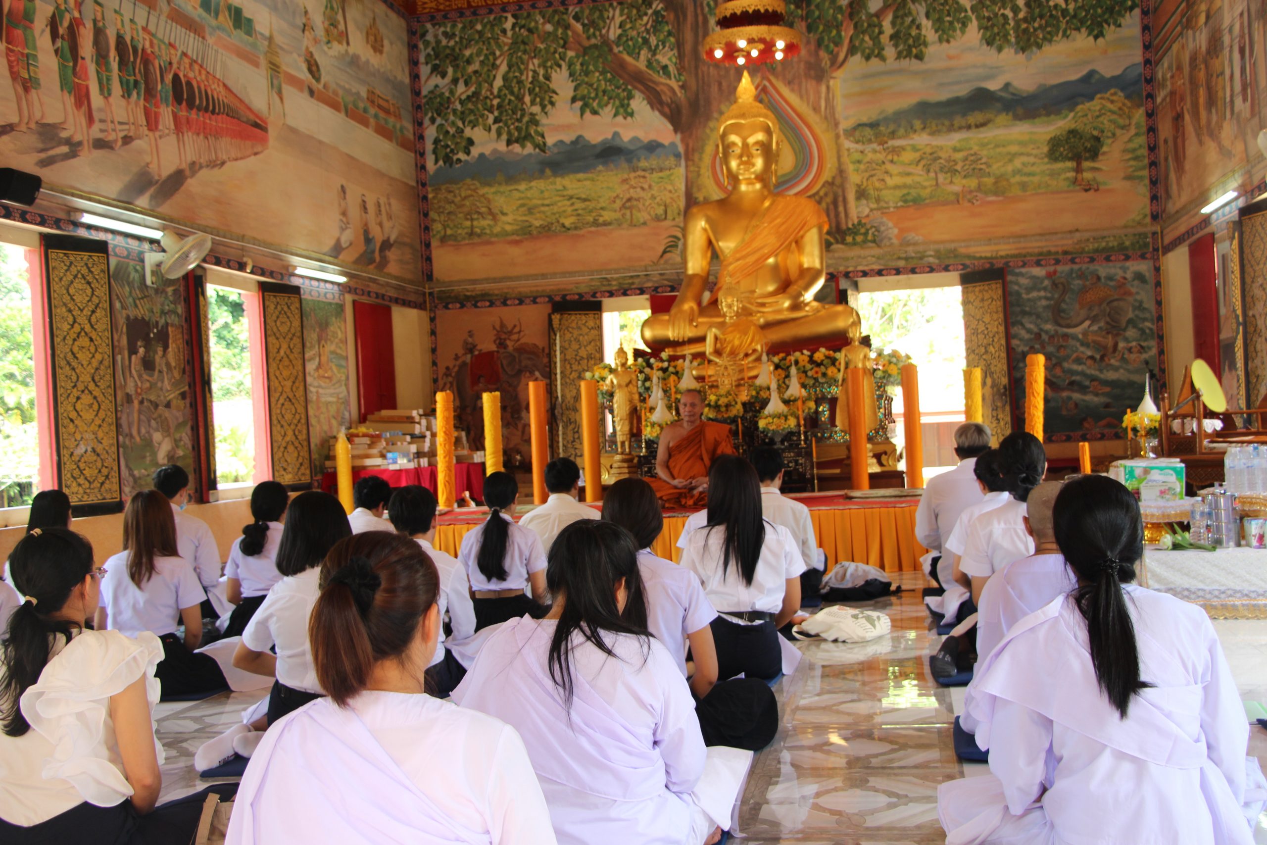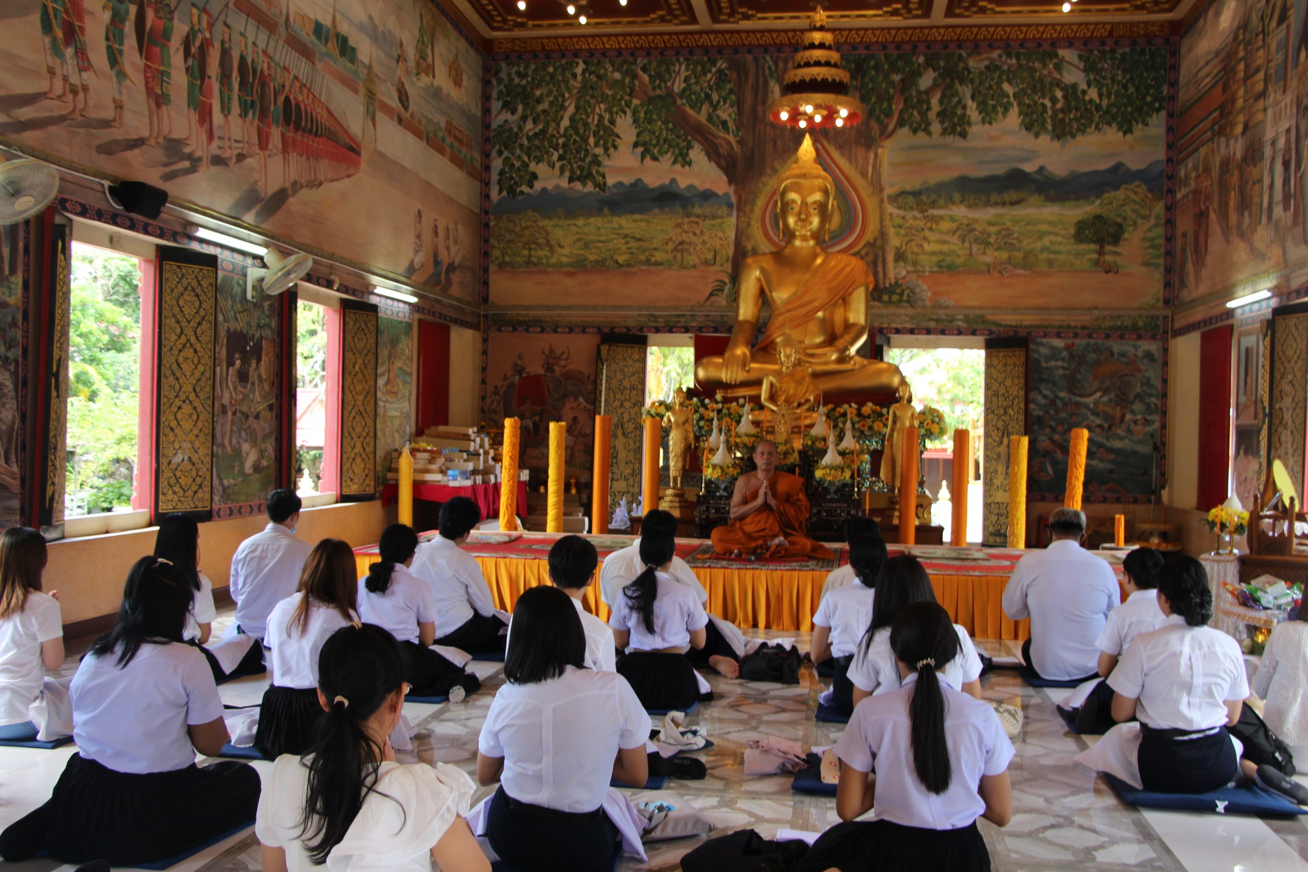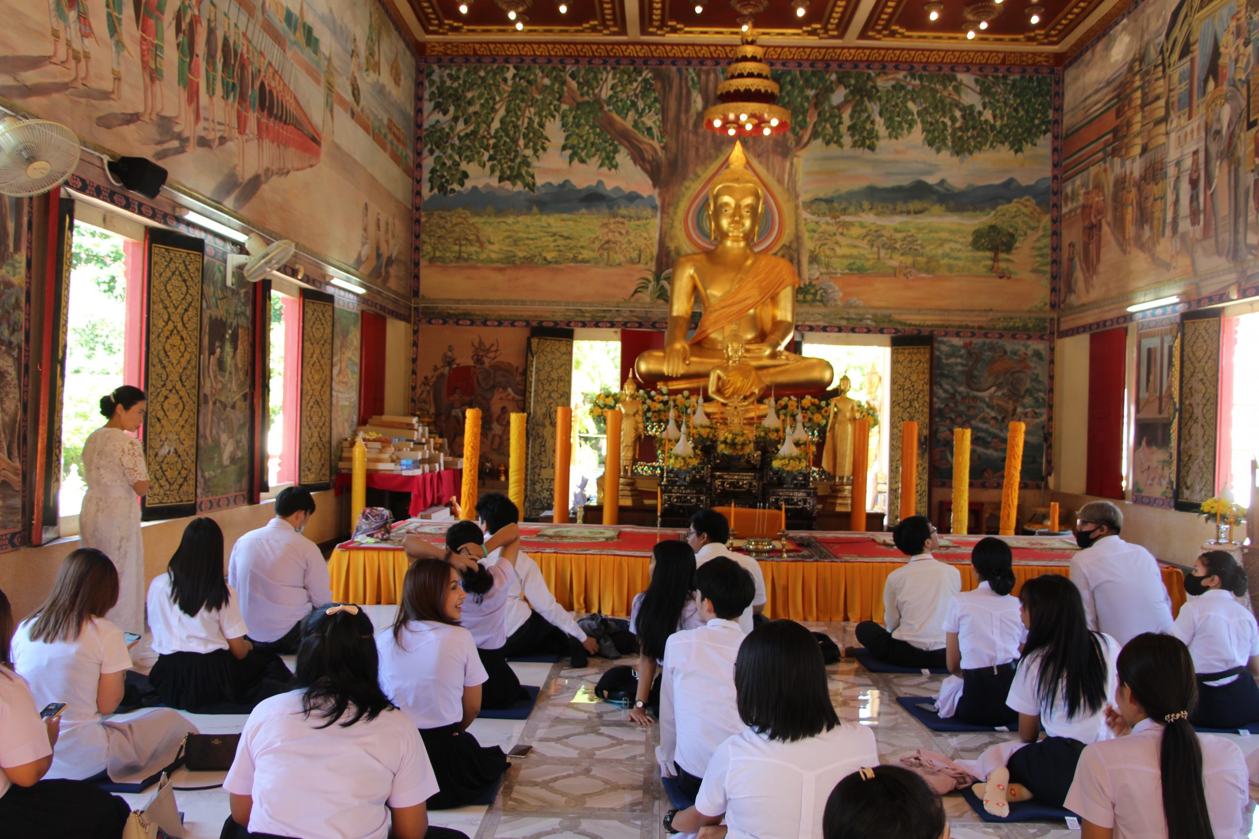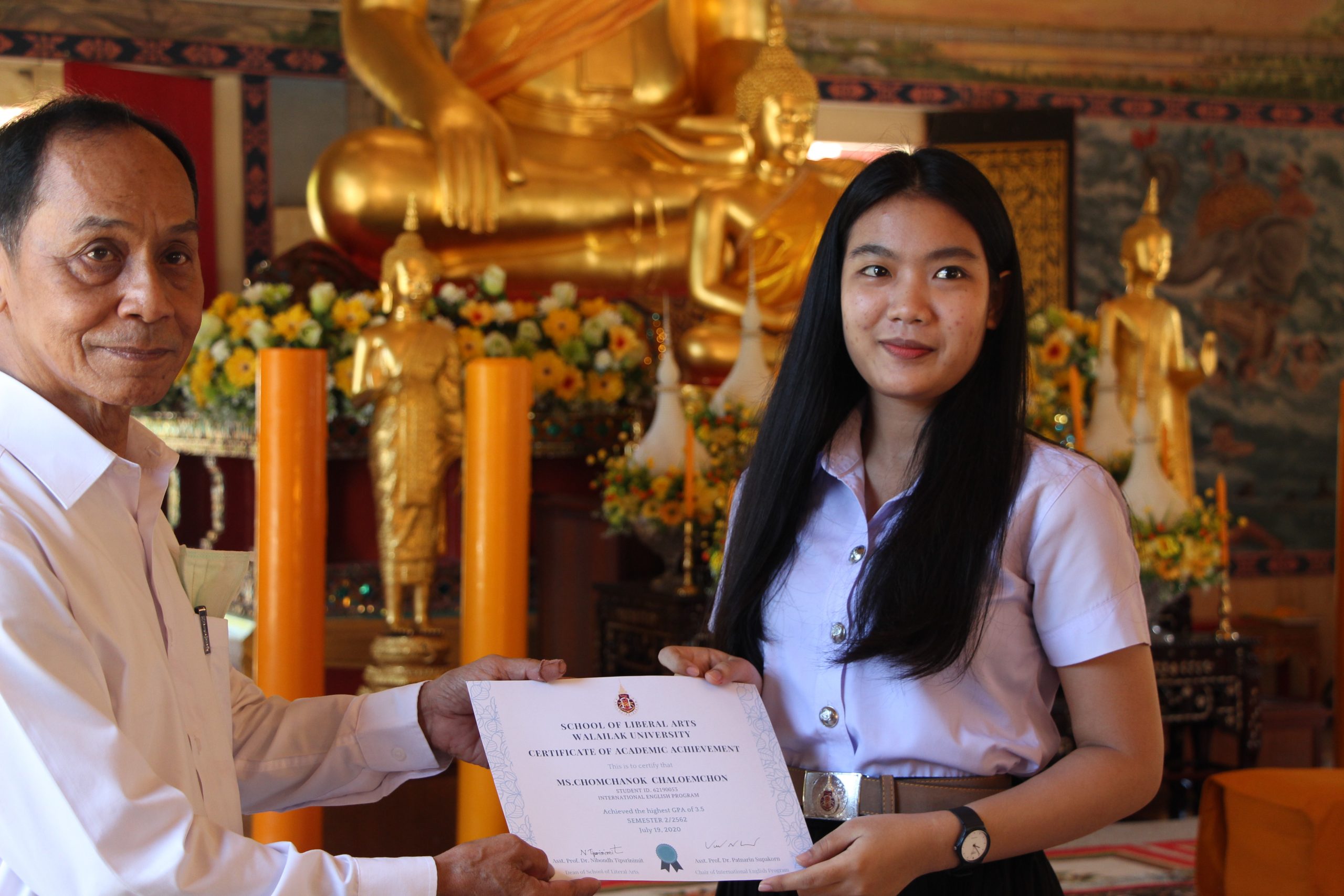 เมื่อวันอาทิตย์ที่ 19 กรกฎาคม 2563 หลักสูตรภาษาอังกฤษ (นานาชาติ) สำนักวิชาศิลปศาสตร์ ได้จัดกิจกรรมนักศึกษาพบที่ปรึกษาและอาจารย์ในหลักสูตรภาษาอังกฤษ ณ วัดศรีทวี อำเภอเมือง จังหวัดนครศรีธรรมราช โดยท่านเจ้าอาวาสวัดศรีทวีได้ฝึกสมาธิ สอนธรรมะให้กับนักศึกษา อาจารย์ผู้เข้าร่วมกิจกรรม โดยได้ร่วมทำบุญและถวายอาหารเพลสำหรับพระสงฆ์ กิจกรรมดังกล่าวเป็นการเสริมสร้างการเรียนรู้ให้นักศึกษาตระหนักและเห็นความสำคัญของการทำนุบำรุงศิลปวัฒนธรรม นอกจากนี้ทางหลักสูตรได้พูดคุยกับนักศึกษาตลอดจนให้คำแนะนำในด้านการเรียนและเรื่องอื่นๆ ได้มีการมอบเกียรติบัตรและเงินรางวัลให้กับนักศึกษาที่มีผลการเรียนดีเยี่ยม 3 คน ได้แก่ นายศิวกร อักษรนำ นางสาวปิยณัฐ ปานสง นางสาวชมชนก เฉลิมพล ซึ่งได้เกรดเฉลี่ย 3.83, 3.75 และ 3.5 ตามลำดับ และมอบเกียรติบัตรและเงินรางวัลให้นักศึกษาที่สอบผ่านเกณฑ์ ITP TOEFL จำนวน 1 คน ได้แก่ นายวัศพล สถาพร