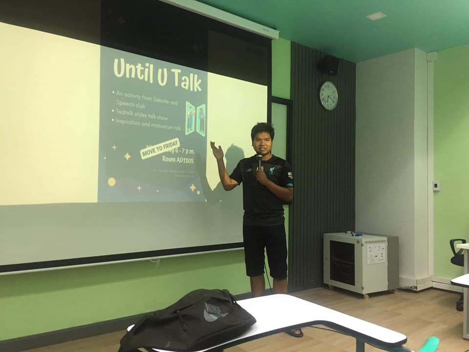 วันศุกร์ที่ 2 เมษายน 2564 นักศึกษาชมรม WU English Debate and Speech จัดกิจกรรมฝึกการปราศรัยภาษาอังกฤษแบบ Ted Talks