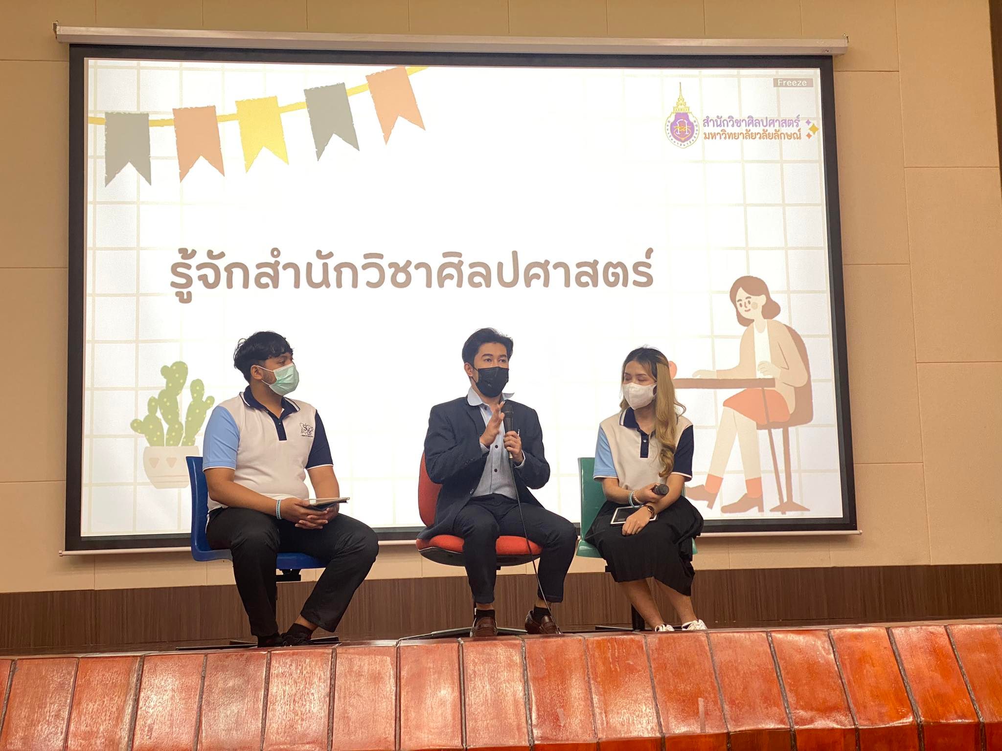 สำนักวิชาศิลปศาสตร์จัดกิจกรรมสานสัมพันธ์สำนักวิชาศิลปศาสตร์ ประจำปีการศึกษา 2565 ขึ้นเมื่อวันเสาร์ที่ 11 มิถุนายน 2565 เวลา 8.30-15.00 น. ณ อาคารเรียนรวม 1 และ 3 ซึ่งกิจกรรมดังกล่าวนอกจากนักศึกษาชั้นปีที่ 1 แล้วยังมีการเชิญชวนนักศึกษาชั้นปีที่ 2 เข้าร่วมกิจกรรมด้วยเนื่องจากอยากให้นักศึกษาชั้นปีที่ 2 ได้สัมผัสกับบรรยากาศกิจกรรมปฐมนิเทศแบบออนไซต์ โดยกิจกรรมสานสัมพันธ์สำนักวิชาหรือกิจกรรมปฐมนิเทศนักศึกษามีวัตถุประสงค์เพื่อสร้างความรู้ความเข้าใจเกี่ยวกับปรัชญา ปณิธานของมหาวิทยาลัยและสำนักวิชา รวมถึงการแนะนำให้นักศึกษาใหม่ได้รู้จักผู้บริหาร อาจารย์ อาจารย์ที่ปรึกษา นักวิชาการ และบุคลากรสายปฏิบัติการ และเพื่อประชาสัมพันธ์ช่องทางการติดต่อสื่อสารกับสำนักวิชาให้กับนักศึกษาทราบ อีกทั้งเป็นการสร้างแรงบันดาลใจแก่นักศึกษาใหม่อีกด้วย