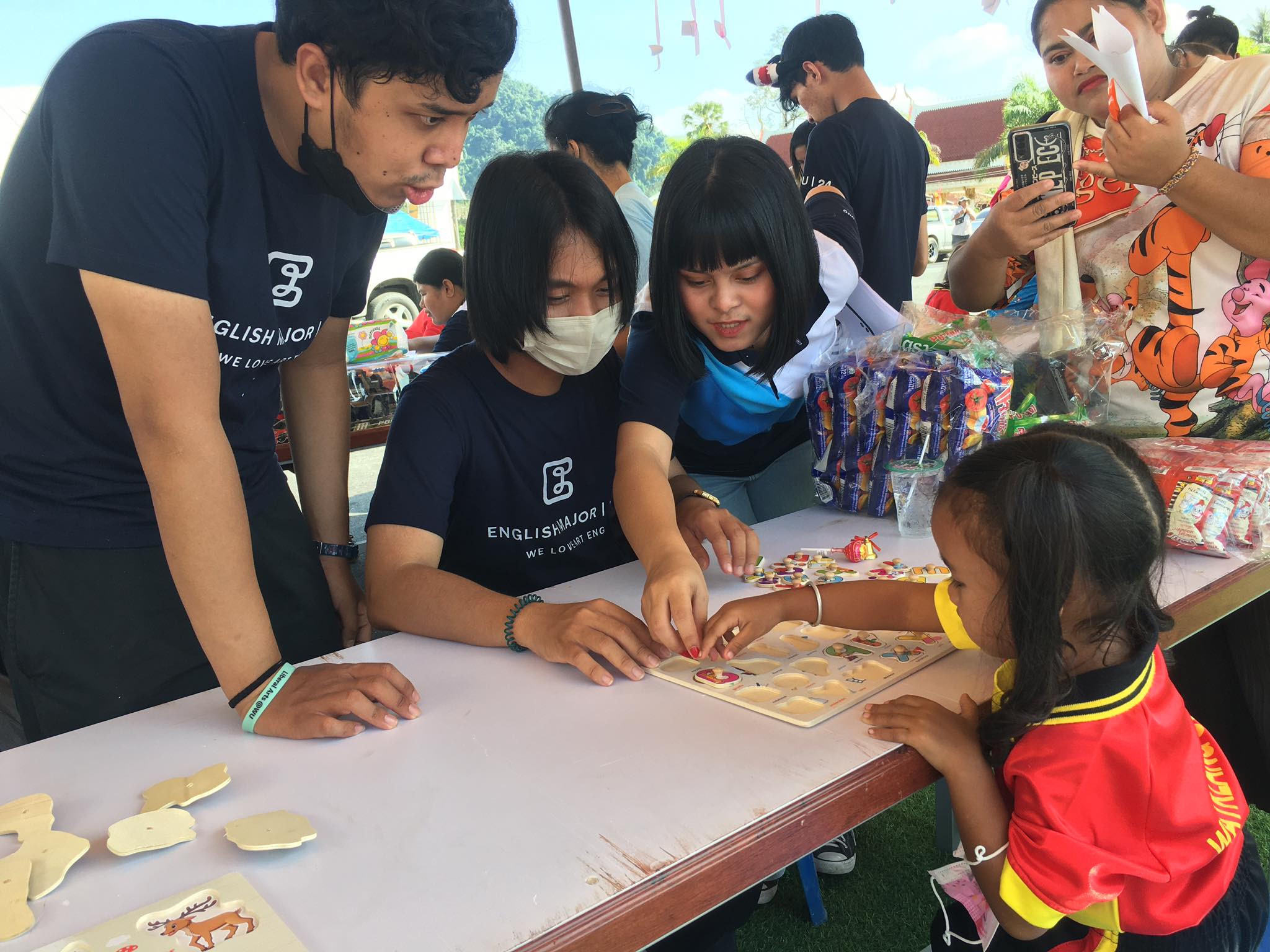 นอกจากซุ้มกิจกรรมของพี่ ๆ สโมสรนักศึกษาสำนักวิชาศิลปศาสตร์แล้ว ในงานยังมีซุ้มกิจกรรมจากหน่วยงานต่าง ๆ ในพื้นที่ อาทิ ด่านศุลกากรอำเภอสิชล ค่ายฝึกรบพิเศษอำเภอสิชล สถานีตำรวจภูธรอำเภอสิชล เป็นต้น กิจกรรมดังกล่าวมีน้องนักเรียนระดับอนุบาลถึงประถมศึกษาในพื้นที่รายรอบวัดเจดีย์ (ไอ้ไข่) รวมถึงบุคคลทั่วไป เข้าร่วมกิจกรรมกว่า 1 พันคน บรรยากาศเป็นไปอย่างสนุกสนานและน่าประทับใจ