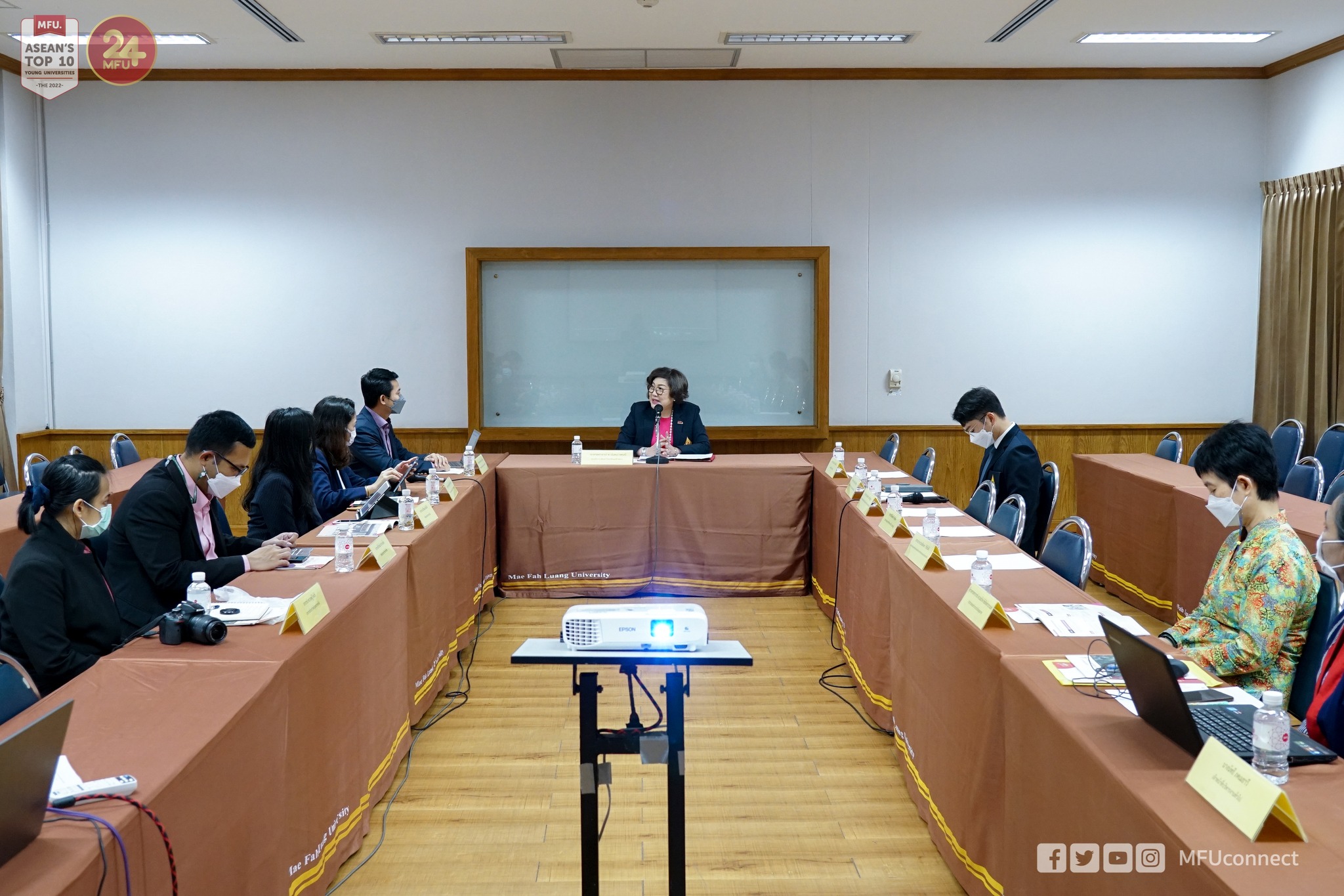 ภาคบ่ายเป็นการประชุมร่วมกับสำนักวิชาศิลปศาสตร์ มหาวิทยาลัยแม่ฟ้าหลวง โดยมี ผู้ช่วยศาสตราจารย์ธีรนุช อนุฤทธิ์ ผู้ช่วยคณบดีสำนักวิชาศิลปศาสตร์ กล่าวแนะนำสำนักวิชา ร่วมด้วยอาจารย์อัญชิดา ทิพรัตน์ ผู้ช่วยคณบดีฯ ให้ข้อมูลเรื่องการสอบประมวลความรู้ (Exit Exam) และอาจารย์ ดร.ชยาภรณ์ เคารพไทย อาจารย์ประจำสำนักวิชาศิลปศาสตร์ ให้ข้อมูลเรื่องความร่วมมือในการวิจัย