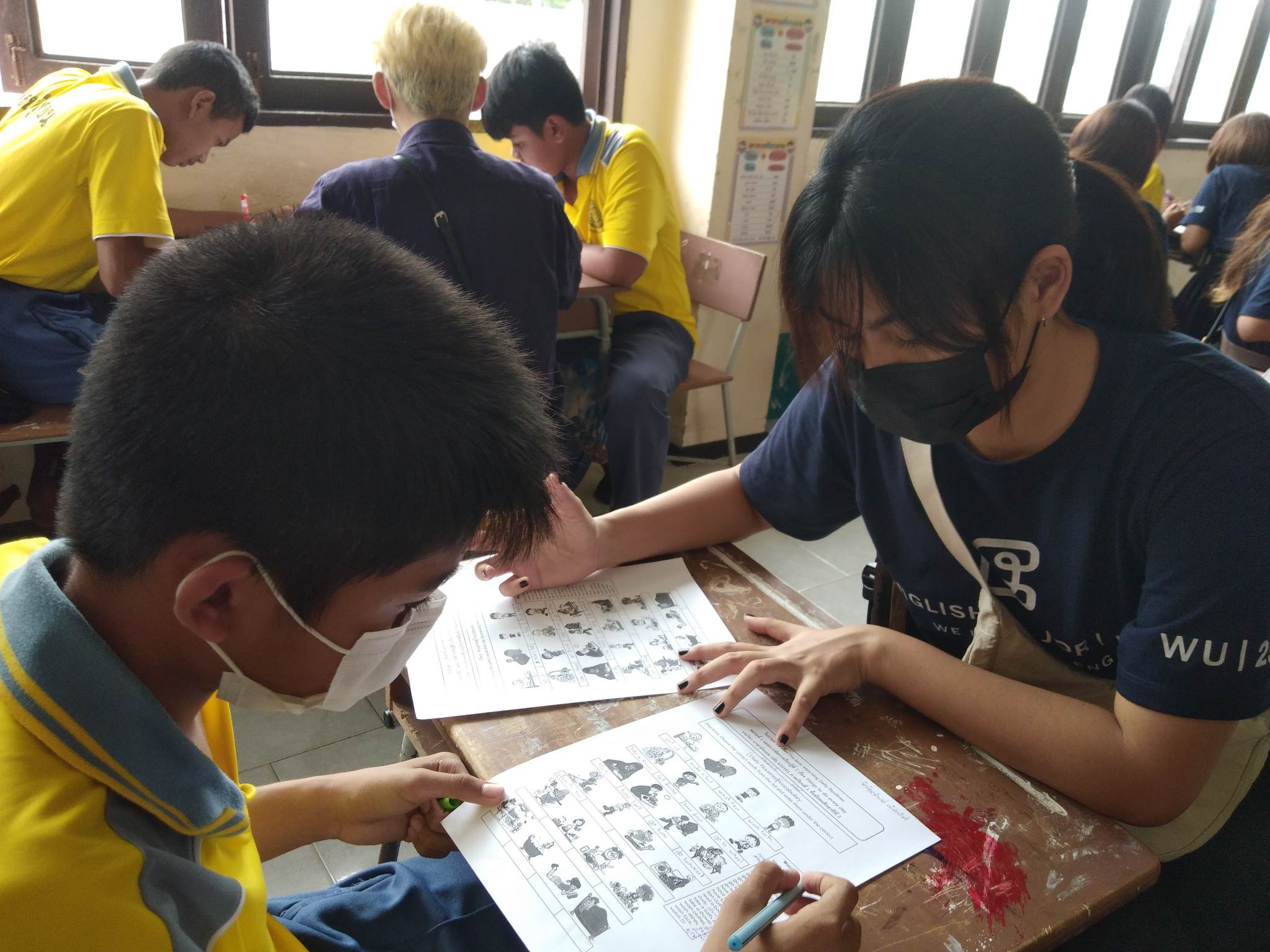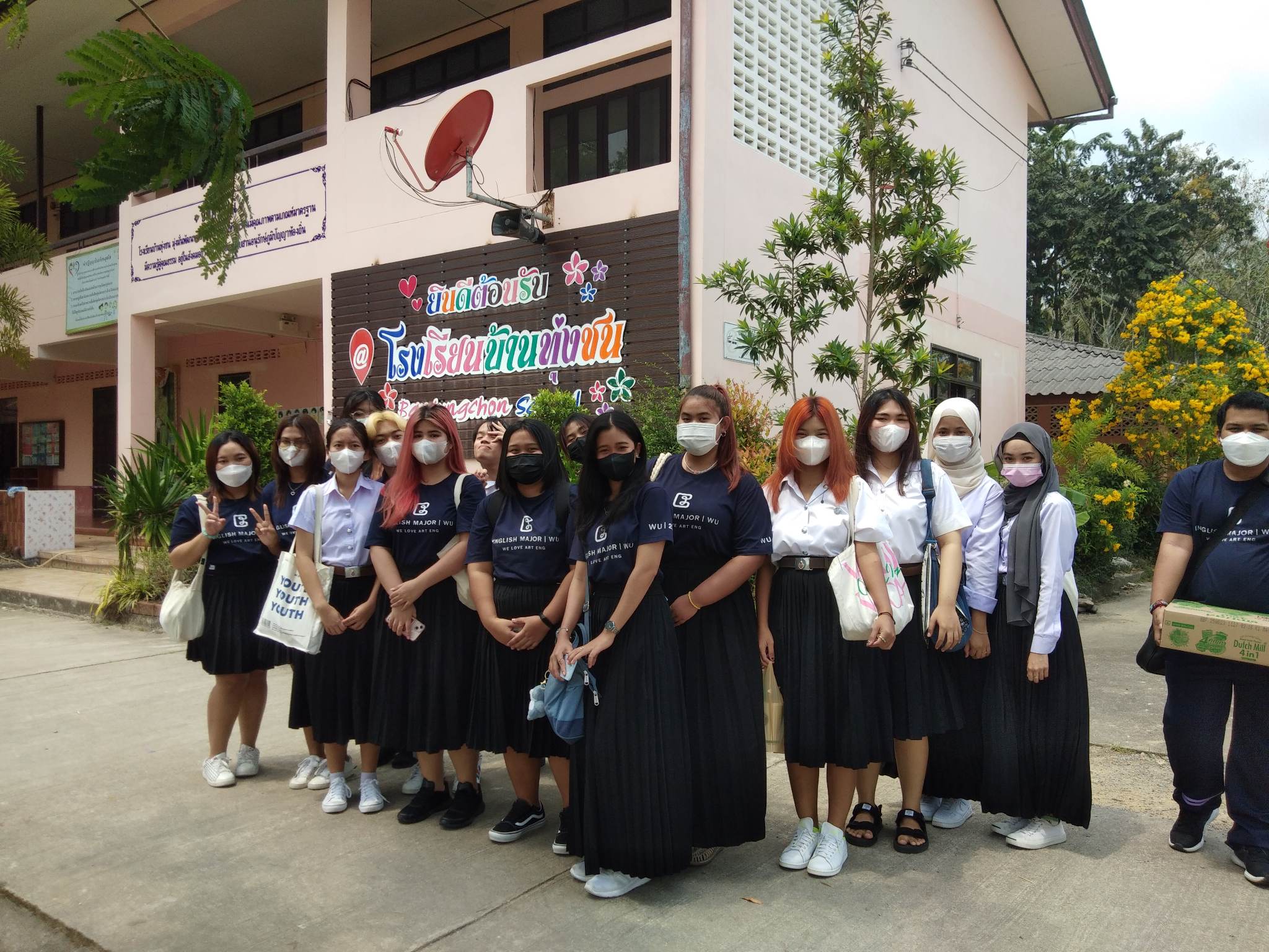 เมื่อวันที่ 1, 8 และ 15 มีนาคม พ.ศ. 2566 ที่ผ่านมา ผศ.ดร. พัชรี อิ่มศรี อาจารย์ผู้ประสานงานรายวิชา ENG63-121 Introduction to Linguistics ได้นำนักศึกษาสาขาภาษาอังกฤษชั้นปีที่ 1 และ 2 ที่ลงทะเบียนเรียนในรายวิชาดังกล่าว ไปจัดกิจกรรมเสริมภาษาอังกฤษให้กับนักเรียนชั้นมัธยมศึกษาชั้นปีที่ 2 และ 3 โรงเรียนชุมชนใหม่และโรงเรียนบ้านทุ่งชน โดยเน้นการเสริมทักษะภาษาอังกฤษให้กับนักเรียนเป็นรายคน ทั้งด้านทักษะการอ่าน การเขียน การฟัง การออกเสียง ไวยากรณ์และคำศัพท์ กิจกรรมในครั้งนี้เป็นการบูรณาการงานบริการวิชาการกับการเรียนการสอน นักศึกษาได้มีโอกาสประยุกต์ใช้ความรู้ภาษาอังกฤษในการถ่ายทอดความรู้ให้กับนักเรียนชั้นมัธยมศึกษา เป็นการเสริมประสบการณ์ด้านการสอนให้กับนักศึกษาและเปิดโอกาสให้นักศึกษาได้ทำประโยชน์ต่อชุมชน