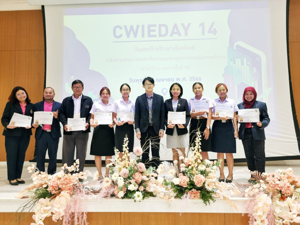 เมื่อวันที่ 19 เมษายน 2566 นางสาวสุดารัตน์ เจตนา นักศึกษาหลักสูตรภาษาอังกฤษคว้ารางวัลชนะเลิศ ประเภทนักศึกษาสหกิจศึกษาดีเด่นสายสังคมศาสตร์ การประกวดการนำเสนอผลการปฏิบัติงานสหกิจศึกษาและการศึกษาเชิงบูรณาการกับการทำงาน ประจำปีการศึกษา 2565 ในงานวันสหกิจศึกษาสัมพันธ์ ภาคใต้ตอนบน ครั้งที่ 14 ณ มหาวิทยาลัยราชภัฏภูเก็ต โดยผู้ชนะเลิศในแต่ละประเภทในการประเกวดดังกล่าวจะเป็นตัวแทนเครือข่ายฯ เข้าร่วมประกวดนักศึกษาสหกิจศึกษาและการศึกษาเชิงบูรณาการกับการทำงาน ประจำปีการศึกษา 2565 ระดับชาติ ณ กระทรวงการอุดมศึกษา วิทยาศาสตร์ วิจัยและนวัตกรรมในช่วงเดือนพฤษภาคม 2566