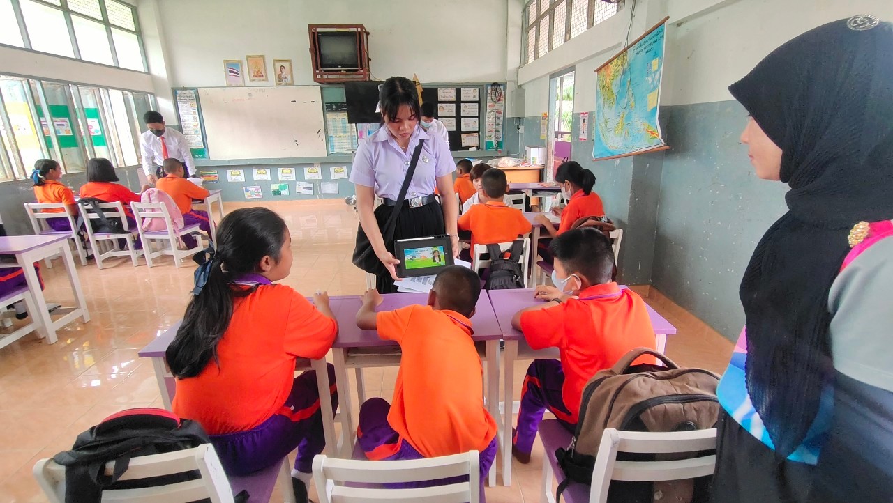 ภาคการศึกษาที่ 1/2566 ที่ผ่านมา ผศ.ดร.พัชรี อิ่มศรี อาจารย์ประจำหลักสูตรภาษาอังกฤษ สำนักวิชาศิลปศาสตร์ ร่วมกับศูนย์บริการวิชาการ มหาวิทยาลัยวลัยลักษณ์ ได้นำนักศึกษาสาขาภาษาอังกฤษ ชั้นปีที่ 1 ที่ลงทะเบียนเรียนในรายวิชา ENG63-101 English Grammar through Translation จัดกิจกรรรมพัฒนาทักษะการอ่านคำศัพท์และการออกเสียงภาษาอังกฤษให้กับนักเรียนชั้นประถมศึกษาปีที่ 5 โรงเรียนชุมชนใหม่ โรงเรียนวัดยางงามและโรงเรียนประทีปศาสน์อิสมาอีลอนุสรณ์