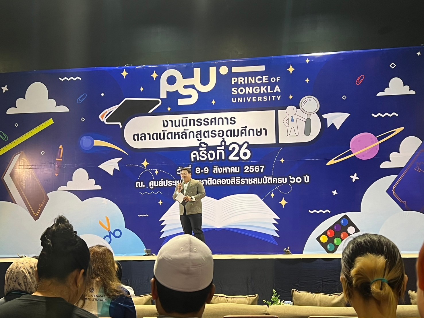 สำนักวิชาครุศาสตร์และศิลปศาสตร์ มหาวิทยาลัยวลัยลักษณ์ เข้าร่วมกิจกรรมนิทรรศการตลาดนัดหลักสูตรอุดมศึกษา ครั้งที่ 26 ระหว่างวันที่ 8-9 สิงหาคม 2567 ณ Convention Hall ศูนย์ประชุมนานาชาติฉลองสิริราชสมบัติครบ 60 ปี จัดโดยมหาวิทยาลัยสงขลานครินทร์ โดยนิทรรศการมีวัตถุประสงค์ให้นักเรียนระดับมัธยมศึกษาตอนปลายจากทั่วทั้งภาคใต้ได้รับทราบข้อมูลของหลักสูตรและสาขาวิชาเพื่อการศึกษาต่อในระดับอุดมศึกษา ภายในงานมีมหาวิทยาลัยทั้งจากในประเทศและต่างประเทศกว่า 160 แห่ง เข้าร่วม