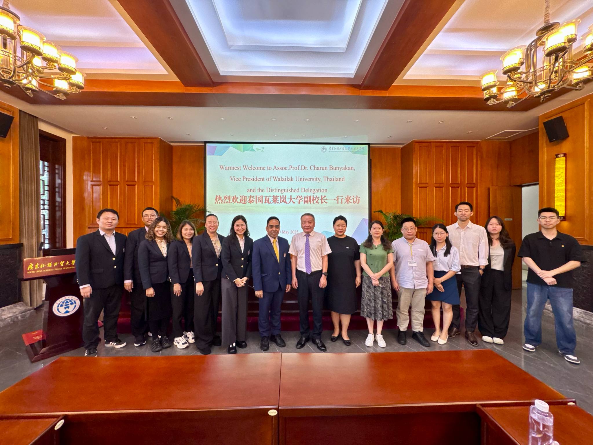 - เข้าพบปะหารือกับผู้บริหารของมหาวิทยาลัยภาษาและการค้าต่างประเทศกวางตุ้งหนานกั๋ว (Guangdong University of Foreign Studies Nanguo) เพื่อเสริมสร้างและขยายขอบเขตความร่วมมือทางวิชาการระหว่างสองสถาบัน การแลกเปลี่ยนนักศึกษาไทยและจีนระหว่างสองสถาบัน การแลกเปลี่ยนคณาจารย์เพื่อการสอนและวิจัยร่วมกัน การดำเนินงานวิจัยเพื่อตีพิมพ์บทความในฐานข้อมูลนานาชาติ การร่วมกันพัฒนาตำราเรียน และการจัดสัมมนาทางวิชาการออนไลน์สำหรับทั้งคณาจารย์และนักศึกษาของทั้งสองมหาวิทยาลัย