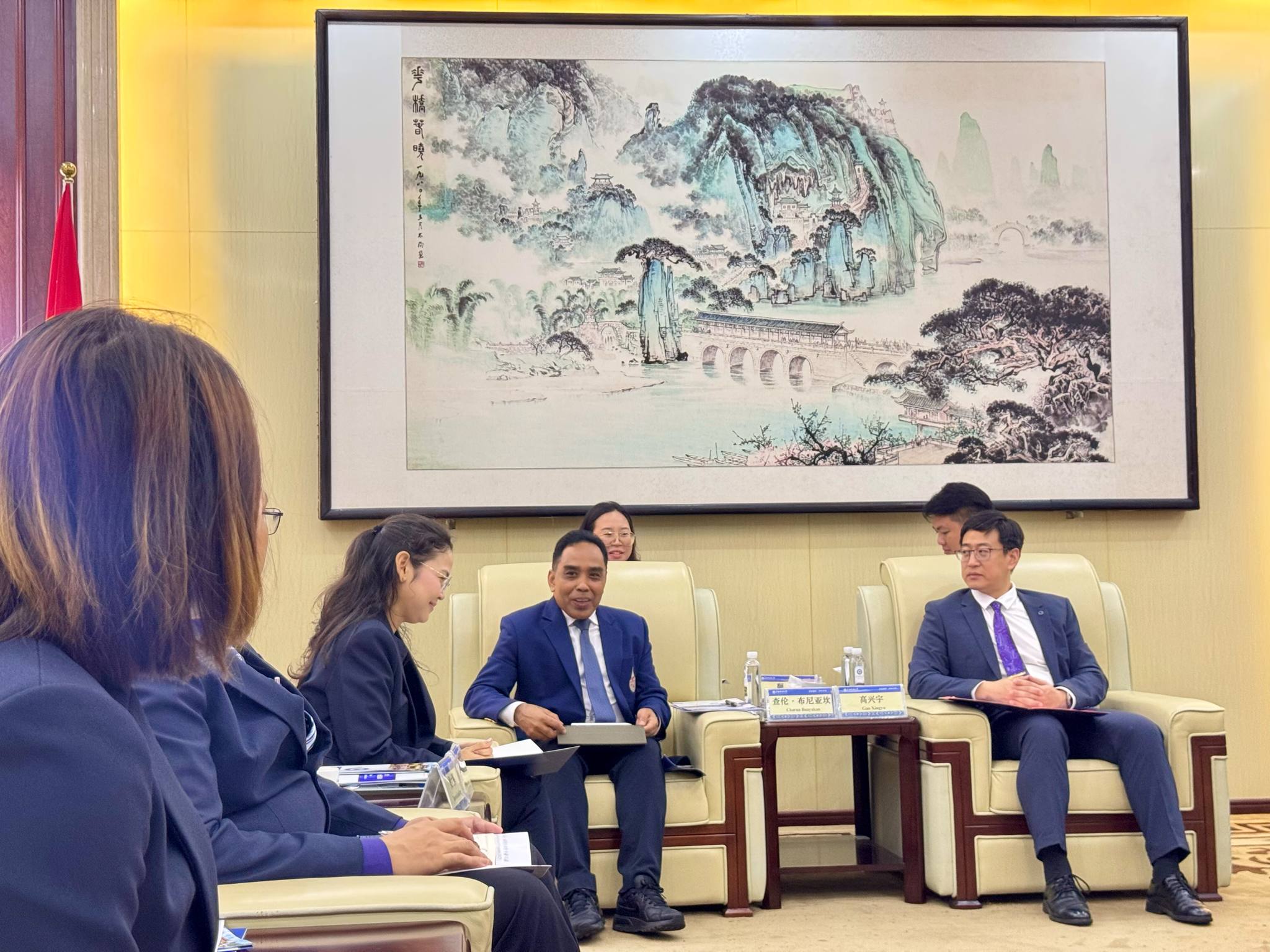 - ร่วมหารือแลกเปลี่ยนแนวคิดด้านความร่วมมือทางวิชาการ ณ มหาวิทยาลัยชนชาติกว่างซี (Guangxi Minzu University: กวางสี) เพื่อประสานความร่วมมือเรื่องการแลกเปลี่ยนนักศึกษาไทยและจีนระหว่างสองสถาบัน การวิจัยร่วมกัน และการเป็นที่ปรึกษาร่วมในระดับปริญญาเอก