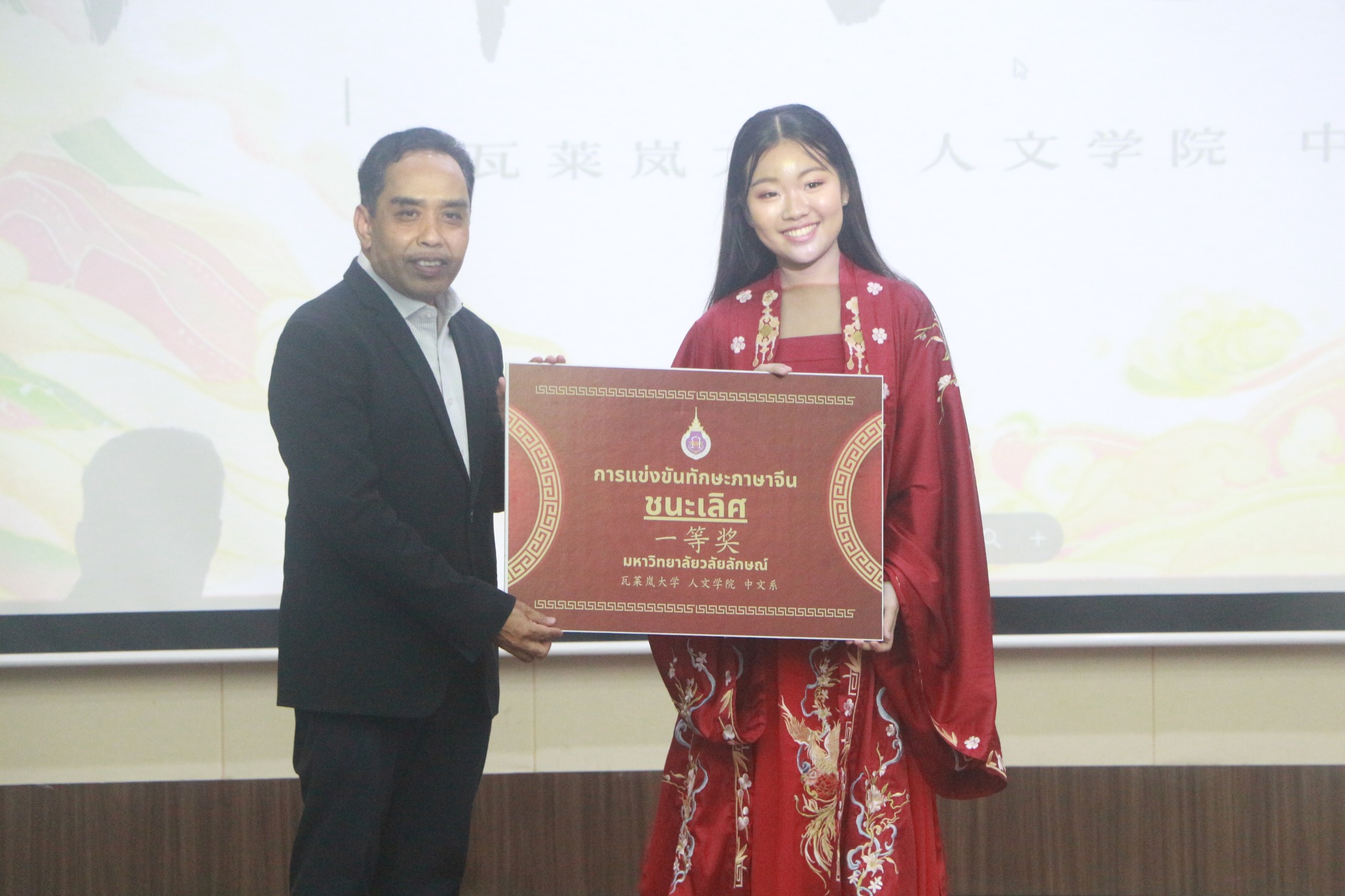 เมื่อวันที่ 7 สิงหาคม 2568 ที่ผ่านมา หลักสูตรภาษาจีน มหาวิทยาลัยวลัยลักษณ์ จัดโครงการ “การแข่งขันทักษะภาษาจีน” ประจำปี 2568 เพื่อเปิดเวทีให้นักเรียนได้พัฒนาศักยภาพด้านภาษาและวัฒนธรรมจีน โดยได้รับเกียรติจาก รองศาสตราจารย์ ดร.จรัญ บุญกาญจน์ รองอธิการบดีและรักษาการแทนคณบดีสำนักวิชาศิลปศาสต์ เป็นผู้มอบรางวัลและแสดงความยินดีกับผู้เข้าร่วมแข่งขันในครั้งนี้ ขณะเดียวกัน หลักสูตรภาษาจีนยังได้รับเกียรติจาก อาจารย์ ดร.กมลทิพย์ คล้ายบ้านใหม่ รองคณบดีสำนักวิชาศิลปศาสตร์ กล่าวเปิดกิจกรรม พร้อมด้วยคณาจารย์หลักสูตรภาษาจีนที่ร่วมให้กำลังใจและสร้างบรรยากาศอบอุ่นตลอดงาน