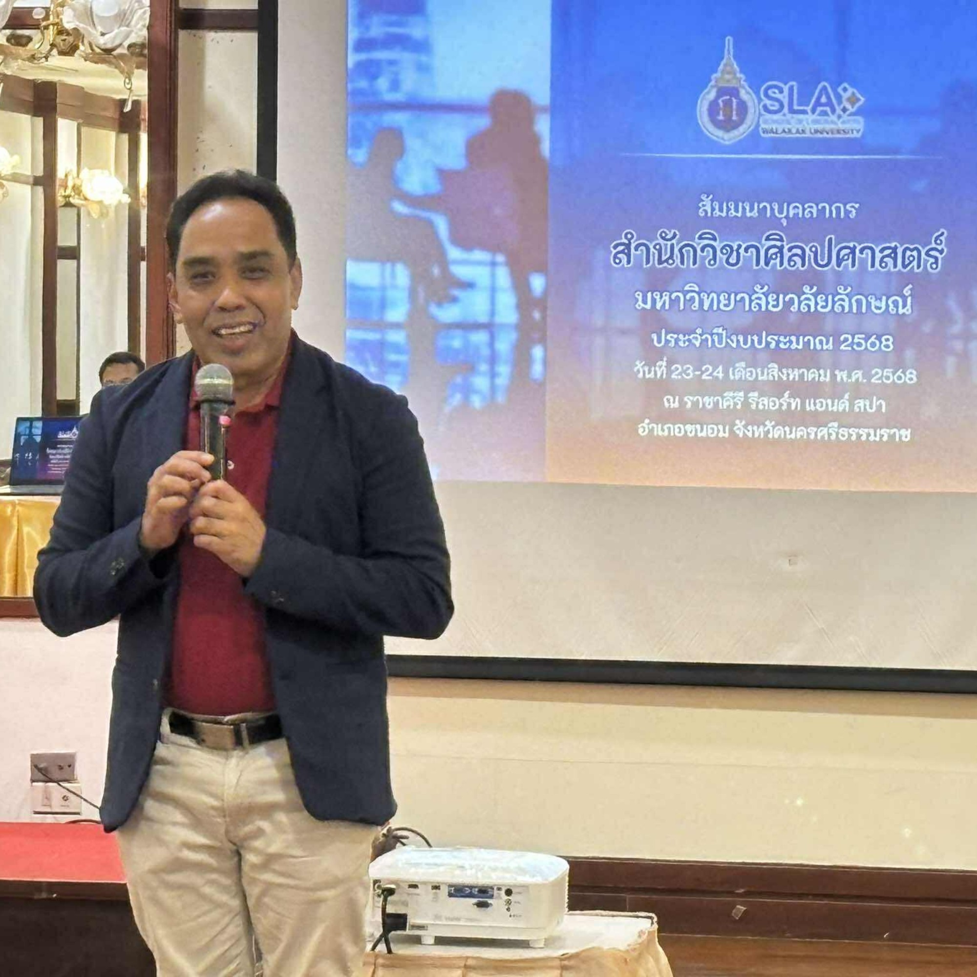 คณาจารย์และนักวิชาการจากหลักสูตรศิลปศาสตรบัณฑิต สาขาภาษาไทยเพื่อการสื่อสาร มหาวิทยาลัยวลัยลักษณ์ เข้าร่วมการสัมมนาบุคลากรสำนักวิชาศิลปศาสตร์ เมื่อวันที่ 23-24 สิงหาคม 2568 ณ ราชาคีรีรีสอร์ท อำเภอขนอม จังหวัดนครศรีธรรมราช เพื่อร่วมกำหนดแนวทางการดำเนินงานและทิศทางของสาขาวิชาฯ ในปีงบประมาณ 2569 โดยได้รับเกียรติจาก รองศาสตราจารย์ ดร.จรัญ บุญกาญจน์ รองอธิการบดีและรักษาการแทนคณบดีสำนักวิชาศิลปศาสตร์ เป็นประธานในพิธีเปิดและร่วมกิจกรรมตลอดทั้งสองวัน