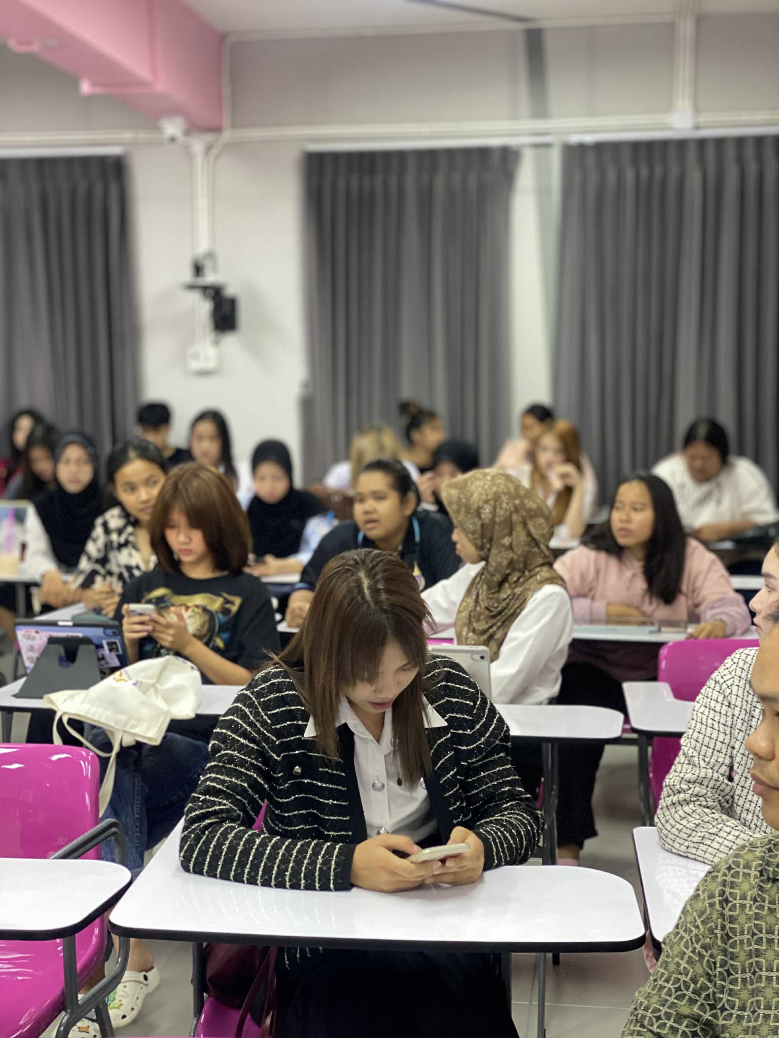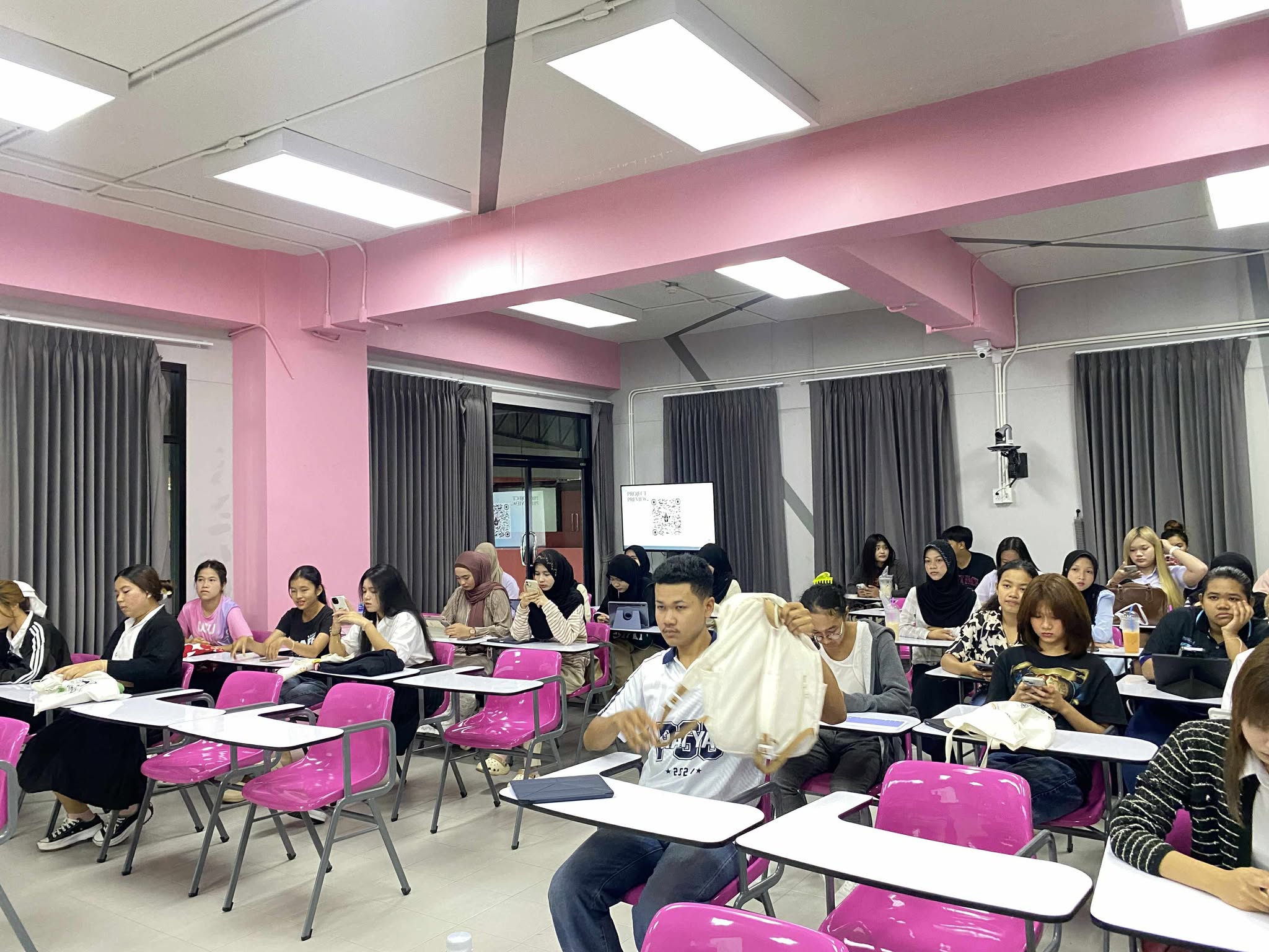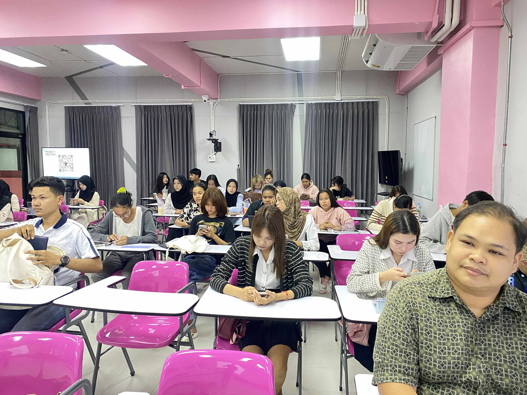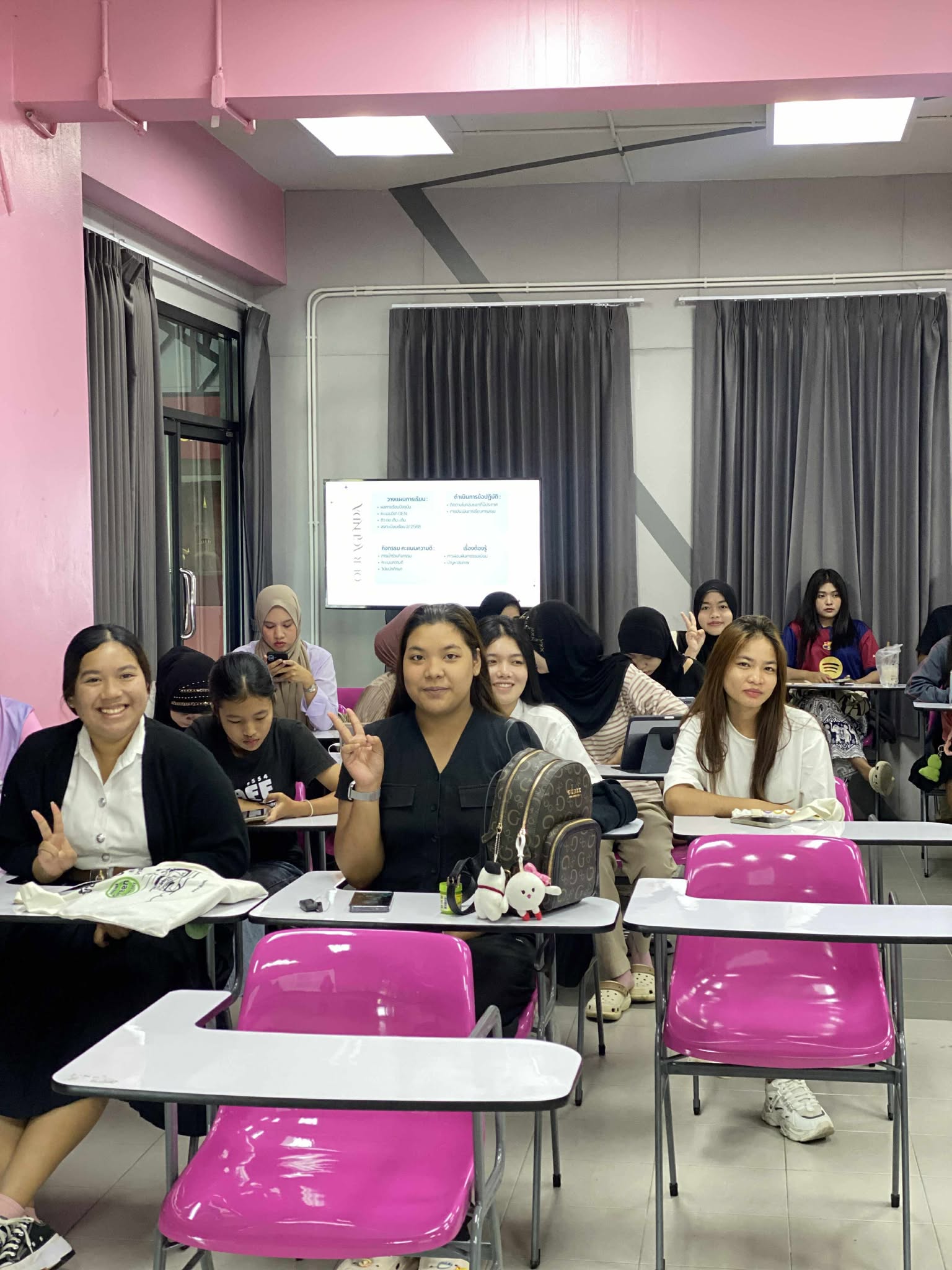เมื่อวันอังคารที่ 19 สิงหาคม 2568 หลักสูตรศิลปศาสตรบัณฑิต สาขาภาษาไทยเพื่อการสื่อสาร มหาวิทยาลัยวลัยลักษณ์ จัดกิจกรรม “นักศึกษาชั้นปีที่ 1 พบอาจารย์ที่ปรึกษา” ณ อาคารสถาปัตยกรรมศาสตร์และการออกแบบ เพื่อสร้างความสัมพันธ์อันดีและเตรียมความพร้อมให้นักศึกษาใหม่ กิจกรรมดังกล่าวได้รับเกียรติจาก ผู้ช่วยศาสตราจารย์ทัดดาว รักมาก หัวหน้าสาขาวิชา พร้อมด้วยคณาจารย์ประจำหลักสูตร ได้แก่ อาจารย์ธีรวัฒน์ กล่าวเกลี้ยง อาจารย์กรกฎ คำแหง และอาจารย์กวินสรา สุดใจ ร่วมพูดคุยและชี้แจงแนวทางสำคัญต่าง ๆ สำหรับการศึกษาในระดับอุดมศึกษา อาทิ ระบบการเรียนการสอน เกณฑ์การวัดผล การเข้าร่วมกิจกรรมเสริมหลักสูตร การเก็บสะสมคะแนนความดี และการขอรับบริการกองทุนกู้ยืมเพื่อการศึกษา (กยศ.)