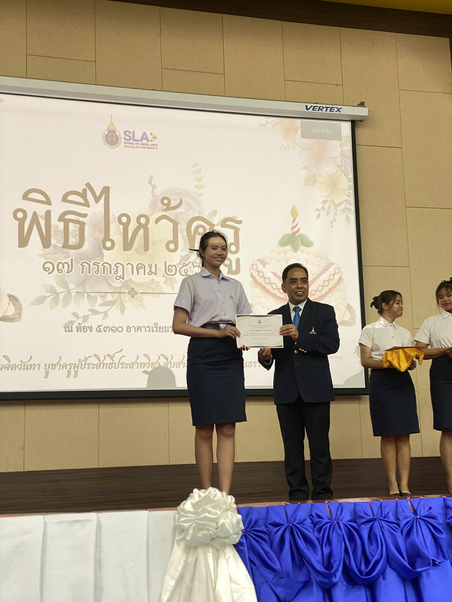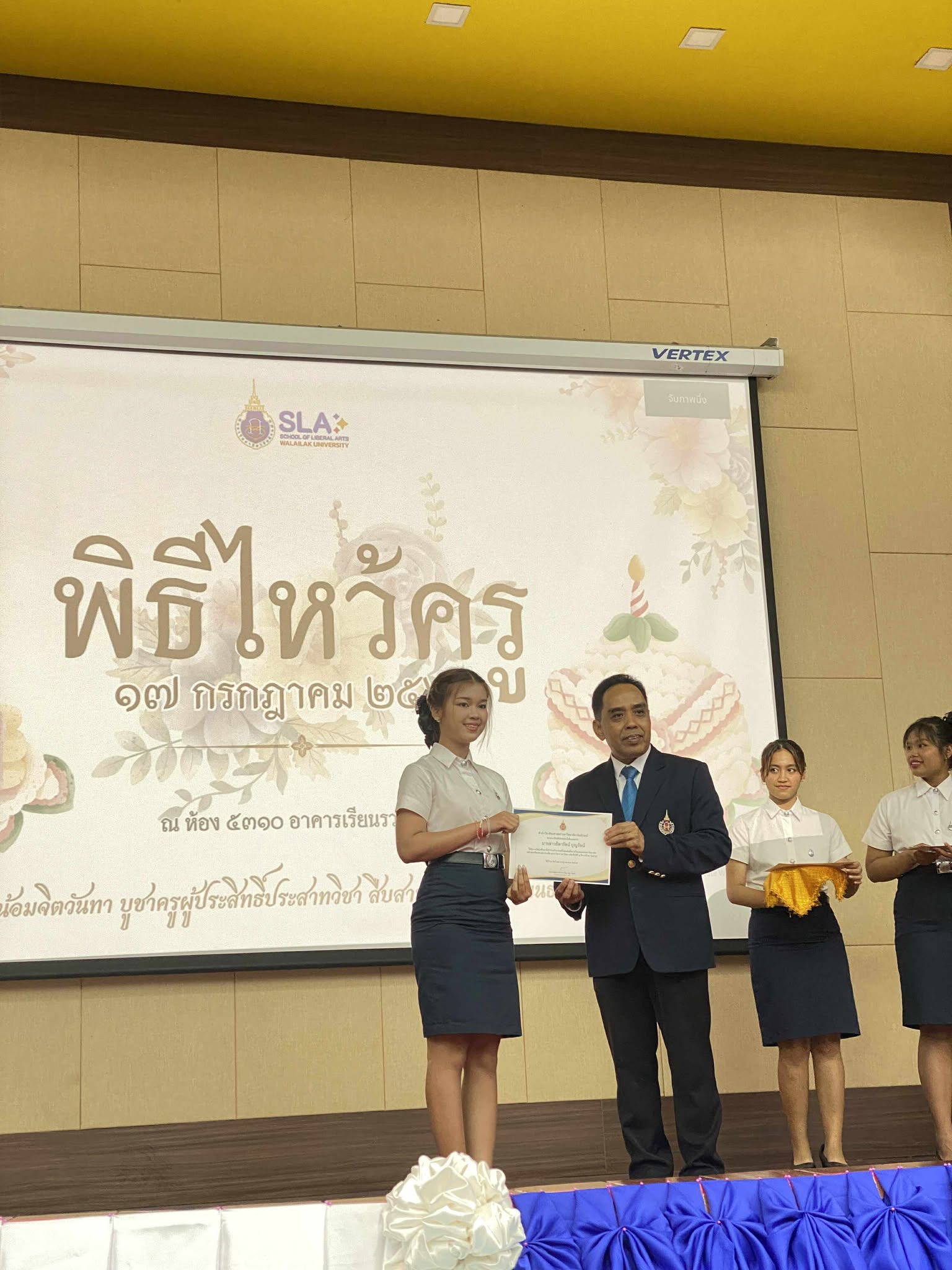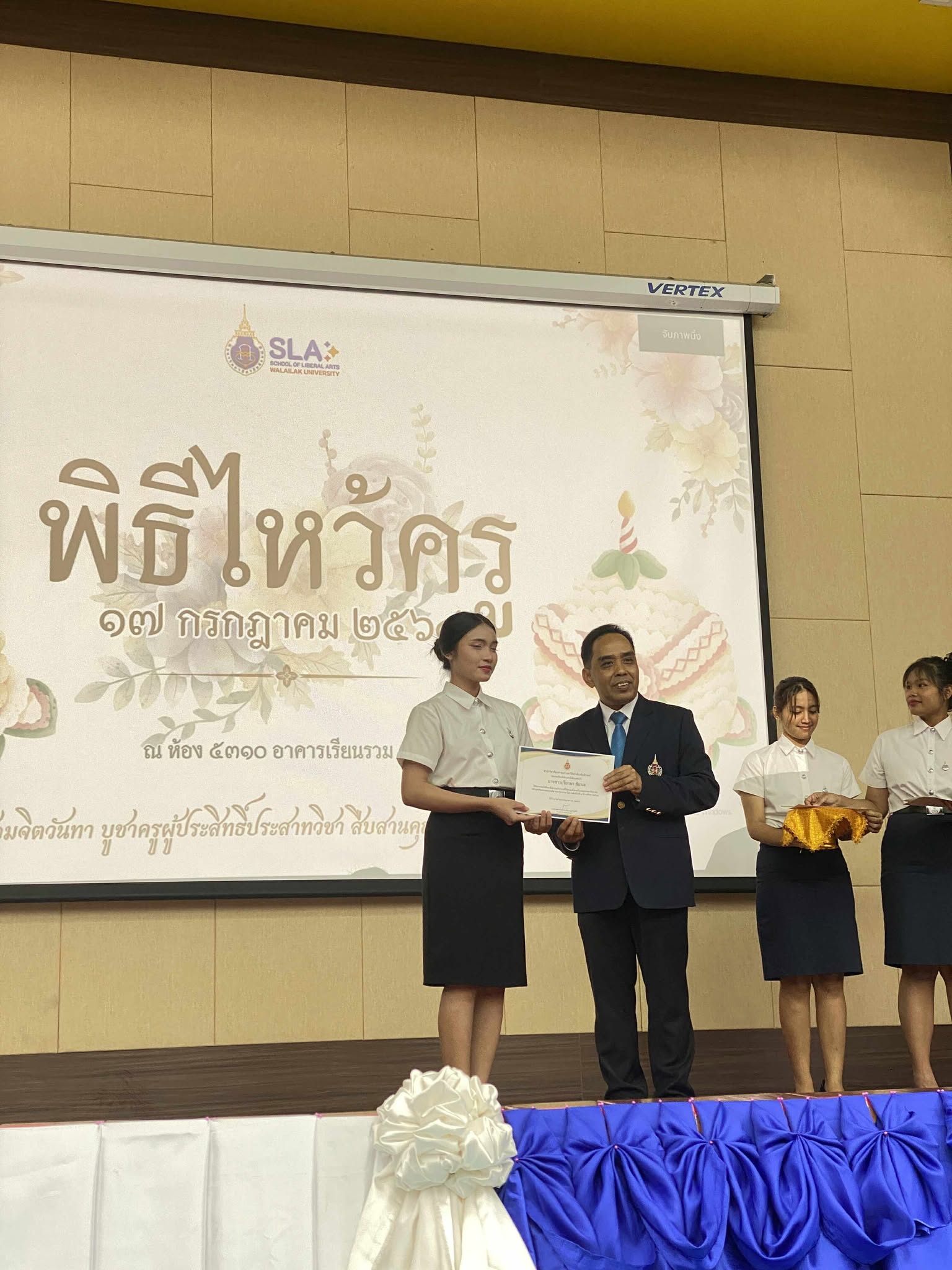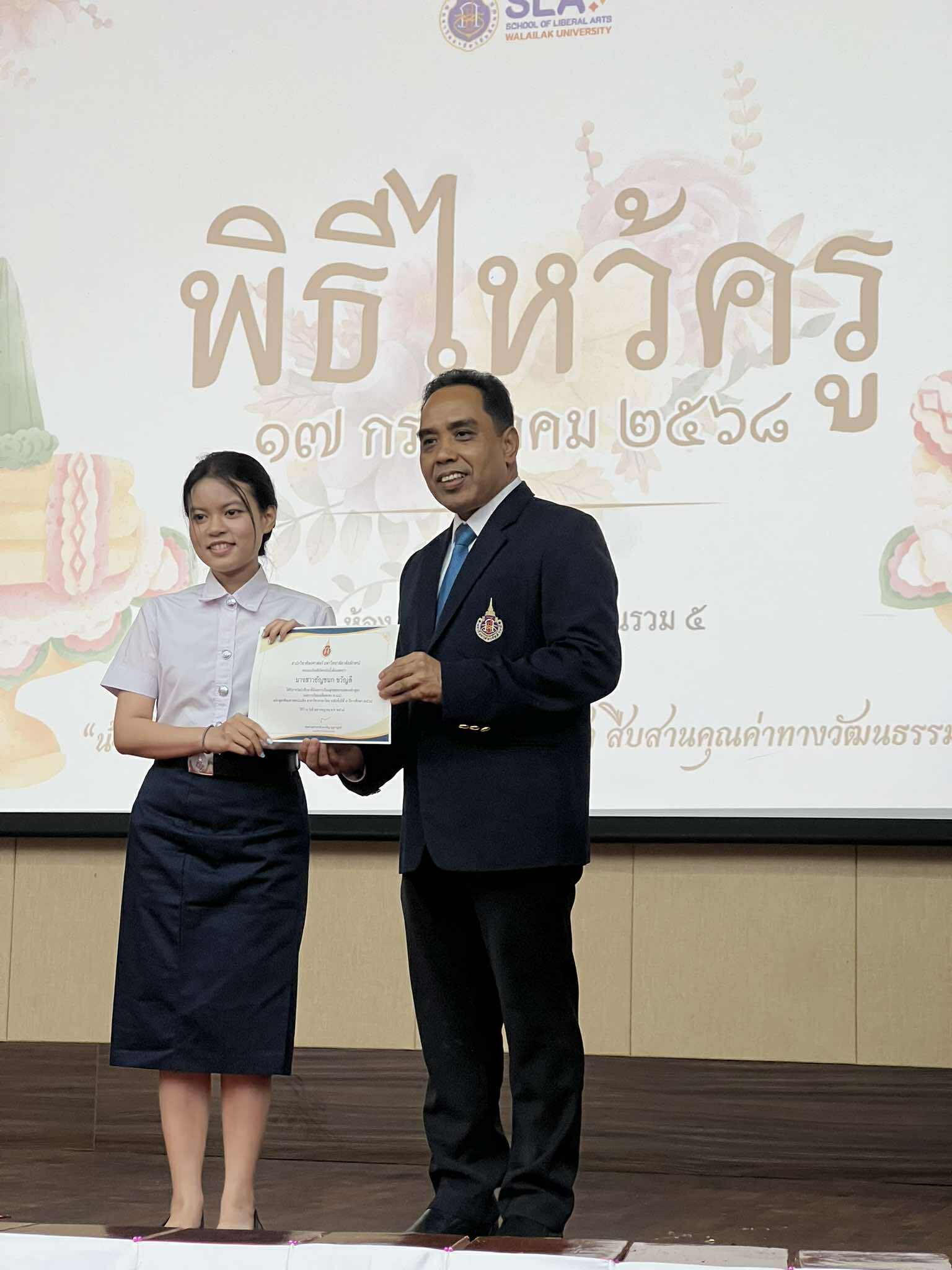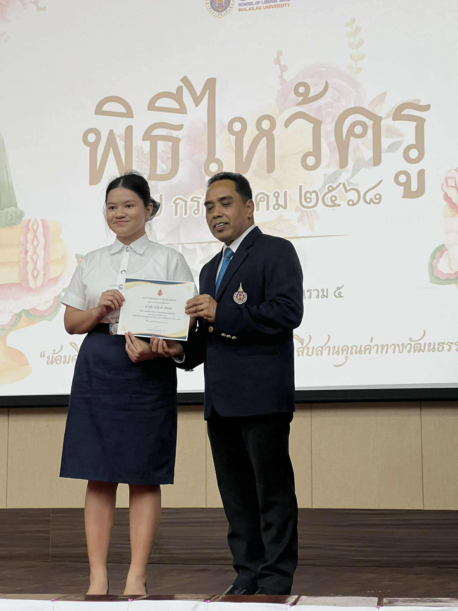 วันที่ 17 กรกฎาคม 2568 เวลา 18.00 น. สโมสรนักศึกษาสำนักวิชาศิลปศาสตร์ มหาวิทยาลัยวลัยลักษณ์ ได้จัดกิจกรรม “ไหว้ครูสำนักวิชาศิลปศาสตร์ ประจำปีการศึกษา 2568” ขึ้นอย่างอบอุ่น ณ ห้อง 5310 อาคารเรียนรวม 5 โดยได้รับเกียรติจากรองศาสตราจารย์ ดร.จรัญ บุญกาญจน์ รองอธิการบดีและรักษาการแทนคณบดีสำนักวิชาศิลปศาสตร์ มาเป็นประธานในพิธี และกล่าวให้โอวาทแก่นักศึกษาเพื่อเป็นขวัญกำลังใจ