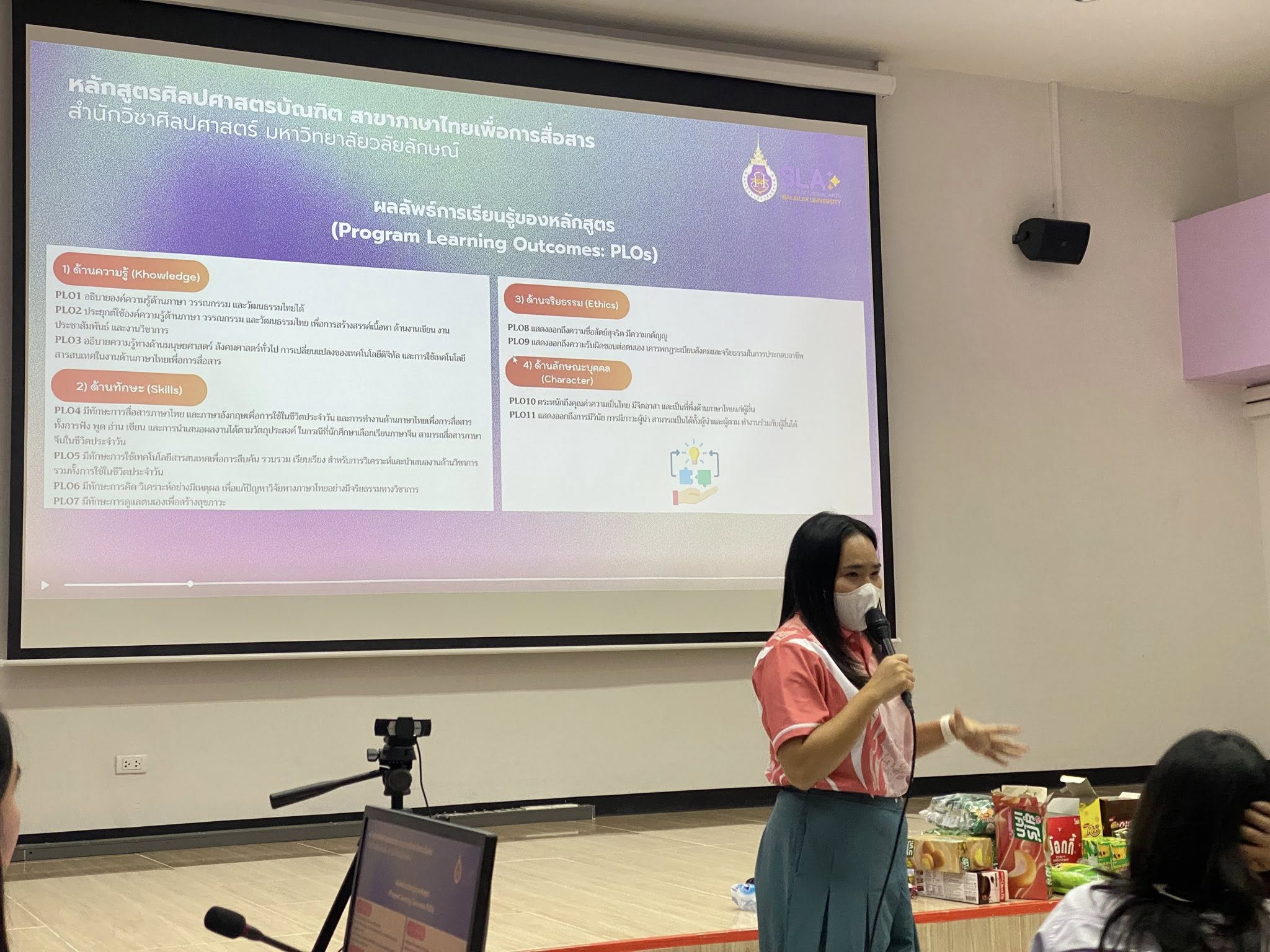 กิจกรรมในครั้งนี้เป็นการปฐมนิเทศนักศึกษาชั้นปีที่ 1 หลักสูตรศิลปศาสตรบัณฑิต สาขาภาษาไทยเพื่อการสื่อสาร โดยมีอาจารย์ที่ปรึกษาแนะนำหลักสูตร แนะแนวทางการศึกษา การเก็บคะแนนความดี และสิ่งที่ต้องรู้ตลอด 4 ปี รวมทั้งการมีการทำความรู้จักคณาจารย์ นักวิชาการ และรุ่นพี่ปี 2-3 ตลอดจนอบรมมารยาทในการสื่อสารออนไลน์ นักศึกษาชั้นปีที่ 1 เข้าร่วมทั้งสิ้น 48 คน คณาจารย์และนักวิชาการจำนวน 6 คน รุ่นพี่ปี 2-3 จำนวน 35 คน บรรยากาศเป็นไปอย่างอบอุ่นและสนุกสนาน