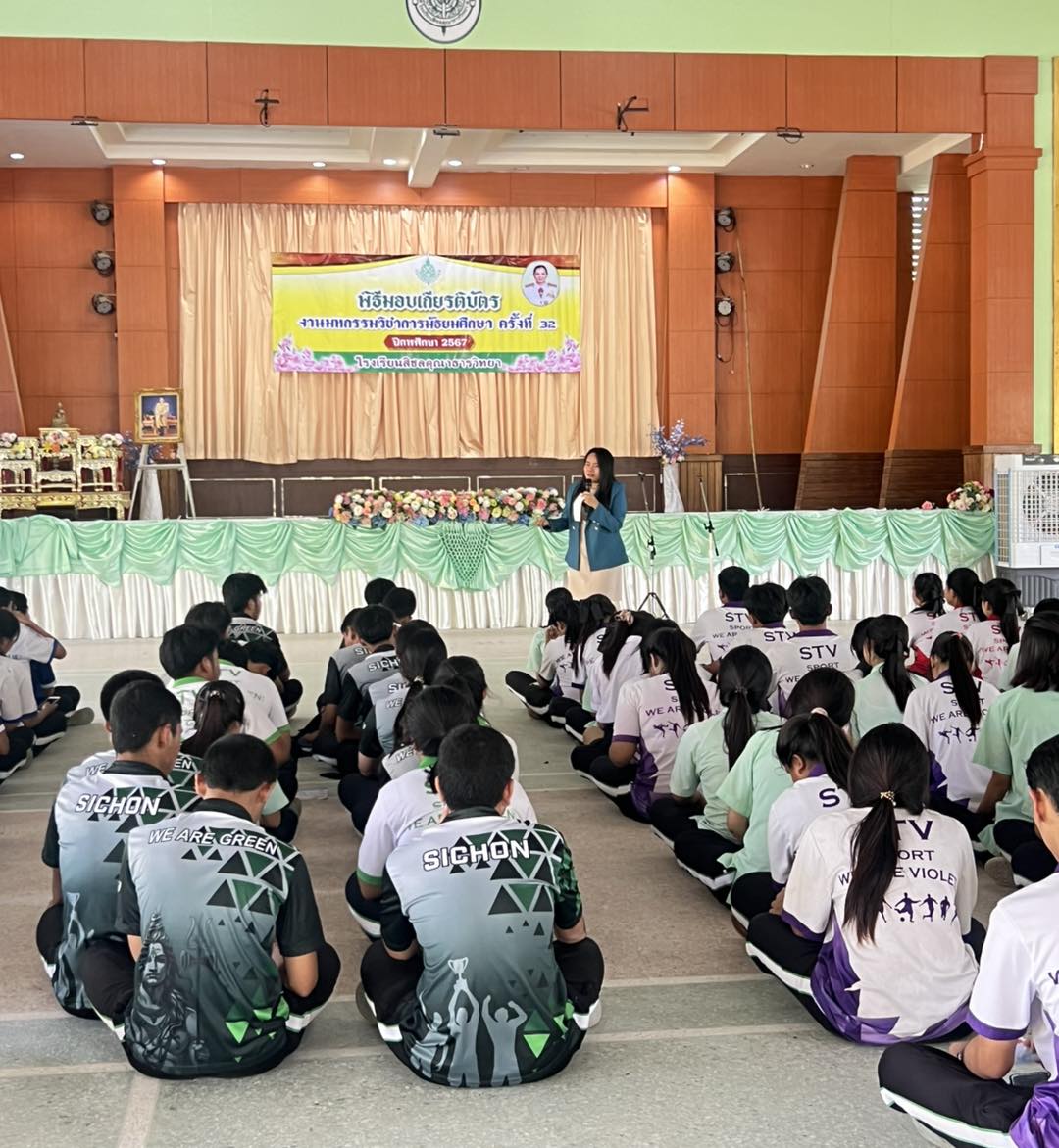 เมื่อวันที่ 21 กุมภาพันธ์ 2568 หลักสูตรศิลปศาสตรบัณฑิต สาขาภาษาไทยเพื่อการสื่อสาร สำนักวิชาศิลปศาสตร์ มหาวิทยาลัยวลัยลักษณ์ ส่งทีมรุ่นพี่นักศึกษาลงพื้นที่ประชาสัมพันธ์หลักสูตรและแนะแนวการศึกษาแก่น้องๆ นักเรียนระดับชั้นมัธยมศึกษาปีที่ 6 ณ โรงเรียนสิชลคุณาธารวิทยา อำเภอสิชล จังหวัดนครศรีธรรมราช ทีมรุ่นพี่ประกอบด้วย นางสาวฮุสนา หะมะ(ปี 3), นางสาวจารุวรรณ ขาวเกตุ (ปี 3), นางสาวอัสมา เจะแว (ปี 3)และ นางสาวสาธินี ยาประจัน (ปี 3) โดยมีอาจารย์กวินสรา สุดใจ ร่วมกิจกรรมแนะแนวการศึกษา