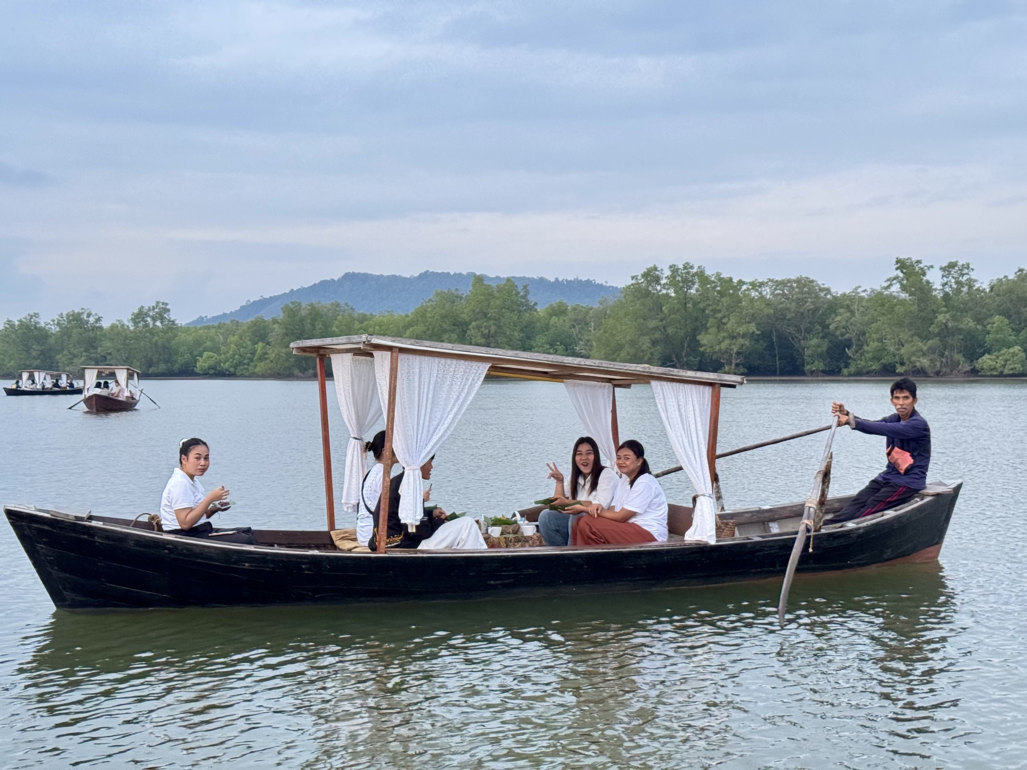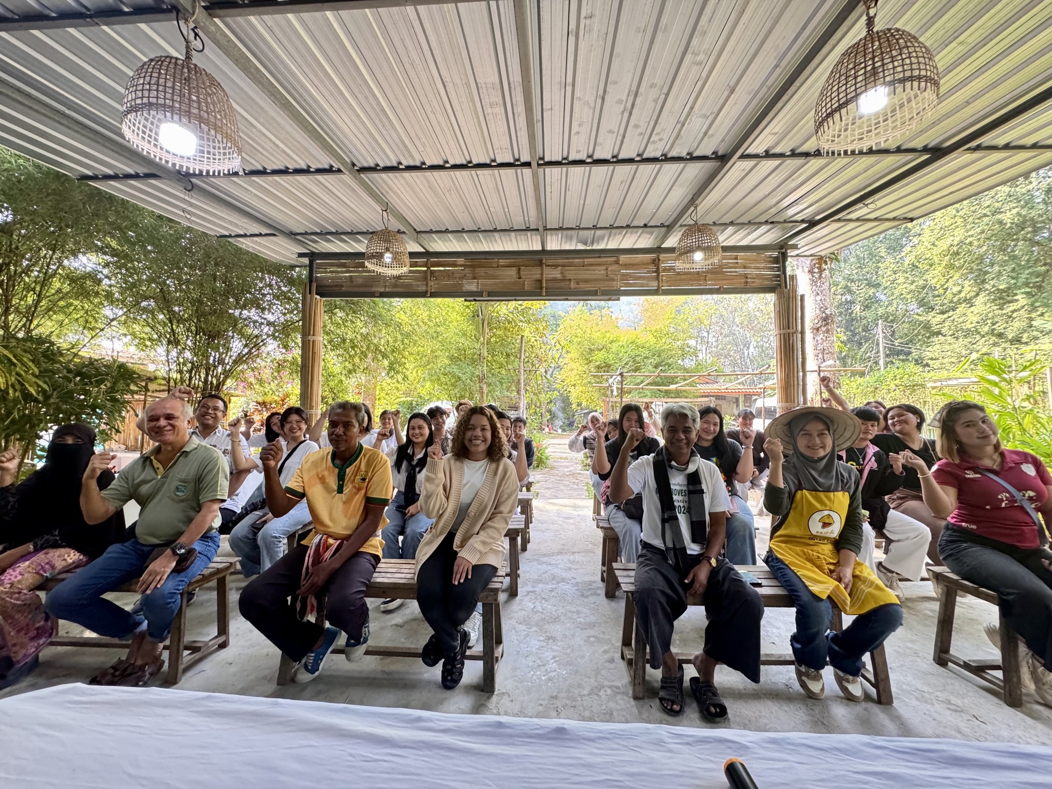 ส่วนกิจกรรมวันที่สอง เริ่มต้นตั้งแต่เช้าตรู่ คณะเรียนรู้ภาคสนามฯ ทำกิจกรรมร่วมกับวิสาหกิจท่องเที่ยวชุมชนบ้านทุ่งหยีเพ็ง ซึ่งเป็นองค์กรท้องถิ่นที่มุ่งเน้นการท่องเที่ยวเชิงอนุรักษ์ ด้วยกิจกรรม “อาบอรุณ” ซึ่งเป็นกิจกรรมที่ผู้เข้าร่วมจะได้สัมผัสความงามของธรรมชาติยามเช้า ผ่านการล่องเรือชมป่าชายเลน และทัศนียภาพอันงดงามของท้องทะเล นอกจากนี้ ชุมชนยังดำเนินธุรกิจอย่างยั่งยืน โดยลดการใช้พลังงาน คัดแยกขยะ เลือกใช้วัตถุดิบในท้องถิ่น ลดปริมาณขยะอาหาร ใช้ภาชนะที่นำกลับมาใช้ซ้ำได้ และมีแผนที่จะนำพลังงานแสงอาทิตย์มาใช้กับเรือ เพื่อทดแทนการใช้พลังงานเชื้อเพลิง และเพื่ออนุรักษ์ป่าชายเลน