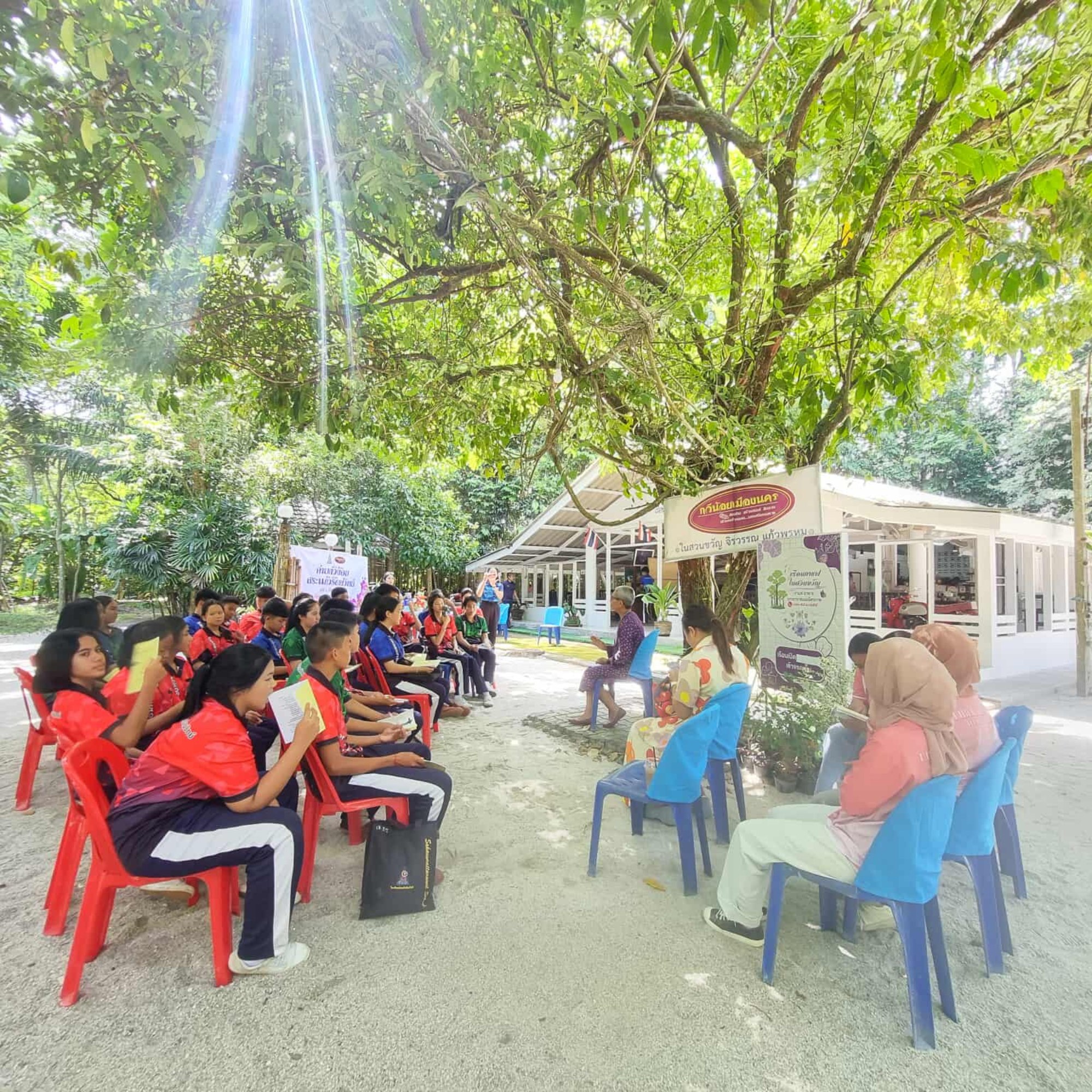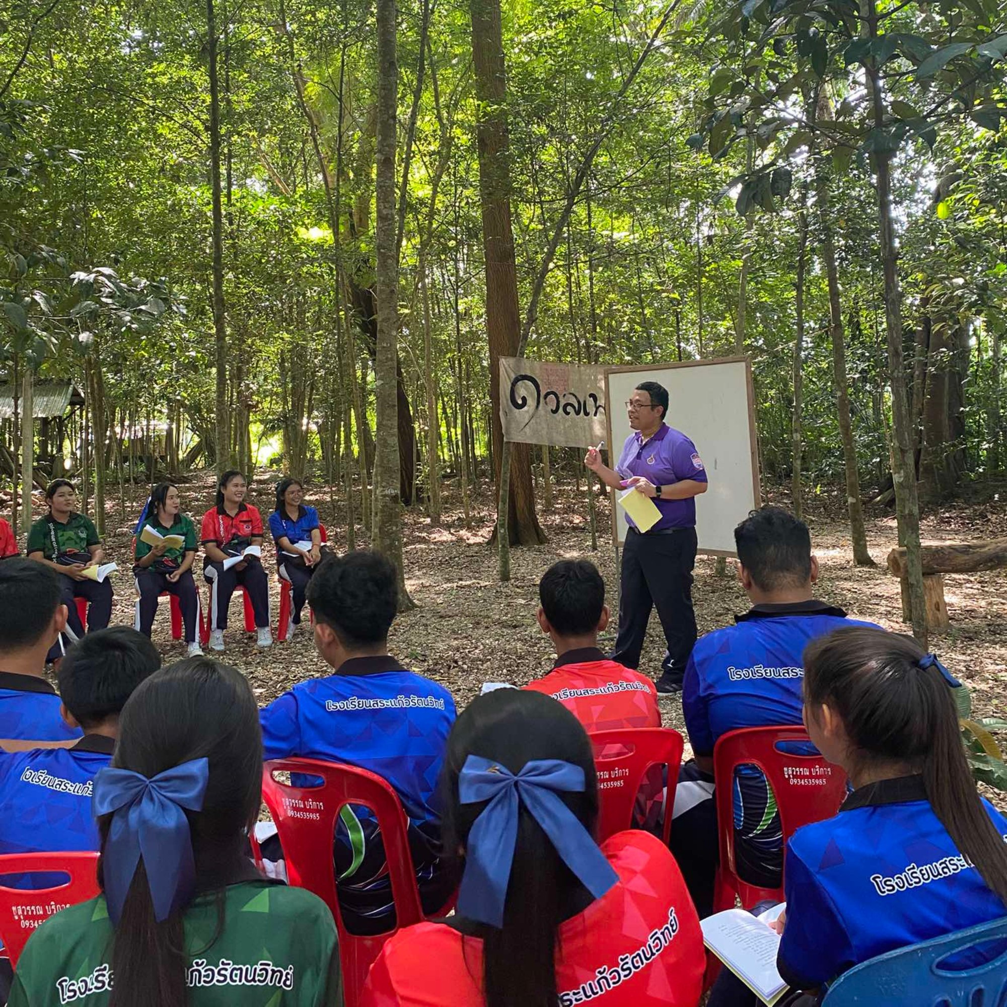 วันเสาร์ที่ 6 กันยายน 2568 อาจารย์และนักศึกษาสาขาวิชาภาษาไทย สำนักวิชาศิลปศาสตร์ มหาวิทยาลัยวลัยลักษณ์ ได้รับเกียรติเป็นคณะวิทยากรในกิจกรรม “ค่ายกวีน้อยเมืองนครสระแก้วรัตนวิทย์” ซึ่งจัดโดยกลุ่มสาระการเรียนรู้ภาษาไทย โรงเรียนสระแก้วรัตนวิทย์ ณ เรือนกาแฟในสวนขวัญ สำนักกวีน้อยเมืองนคร อำเภอท่าศาลา จังหวัดนครศรีธรรมราช