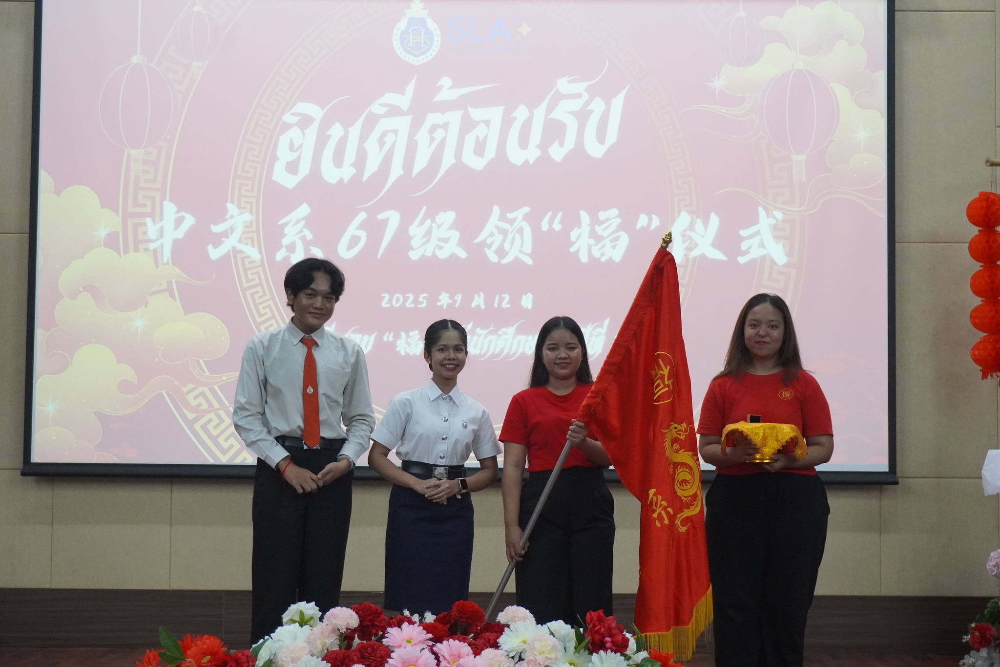 เมื่อวันที่ 12 กันยายน พ.ศ. 2568 นักศึกษาชั้นปีที่ 2 สาขาวิชาภาษาจีน สำนักวิชาศิลปศาสตร์ มหาวิทยาลัยวลัยลักษณ์ ได้เข้าร่วม พิธีมอบ 福 (福 หมายถึง ความสุข ความเจริญรุ่งเรือง และความเป็นสิริมงคลในวัฒนธรรมจีน) ภายในงานได้รับเกียรติจาก อาจารย์ ดร.ศิริคุณ พันธ์รังษี หัวหน้าสาขาวิชาภาษาจีน เป็นประธานกล่าวเปิดงาน พร้อมทั้งคณาจารย์ผู้สอนในสาขาวิชาเข้าร่วมแสดงความยินดีและมอบโอวาทแก่นักศึกษา บรรยากาศเต็มไปด้วยความอบอุ่น ความหมายเชิงสัญลักษณ์ และมิตรภาพระหว่างอาจารย์และนักศึกษา
