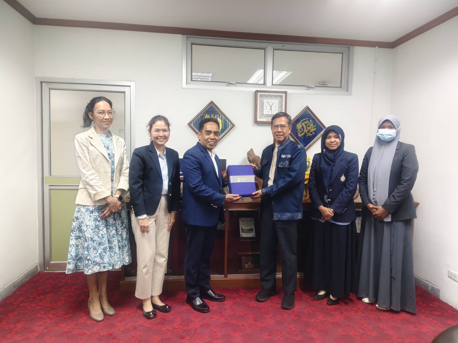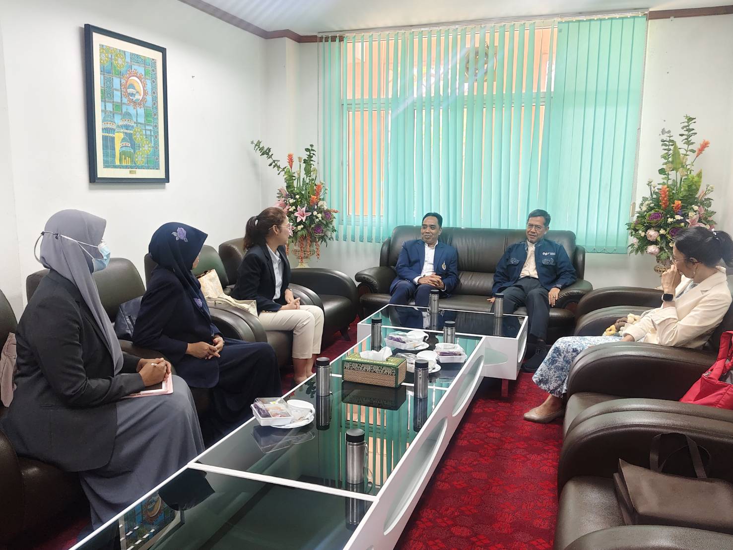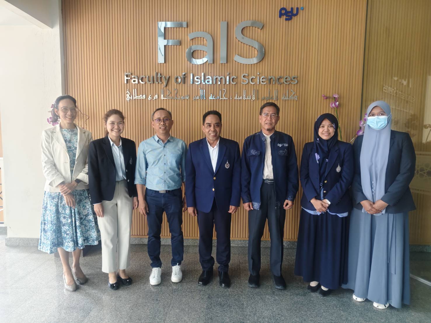 คณะศึกษาดูงานจากมหาวิทยาลัยวลัยลักษณ์ได้รับการต้อนรับอย่างอบอุ่นจาก ผู้ช่วยศาสตราจารย์ ดร.มูหัมมัดรอฟลี แวหะมะ คณบดีคณะวิทยาการอิสลาม พร้อมด้วยคณาจารย์และบุคลากร รวมถึงผู้ช่วยศาสตราจารย์บัญชา เตส่วน รองคณบดีคณะมนุษยศาสตร์และสังคมศาสตร์ และหัวหน้าสาขาวิชาต่าง ๆ ที่ได้ให้เกียรติแลกเปลี่ยนข้อมูลและประสบการณ์เกี่ยวกับการเรียนการสอนหลักสูตรภาษาอาหรับ