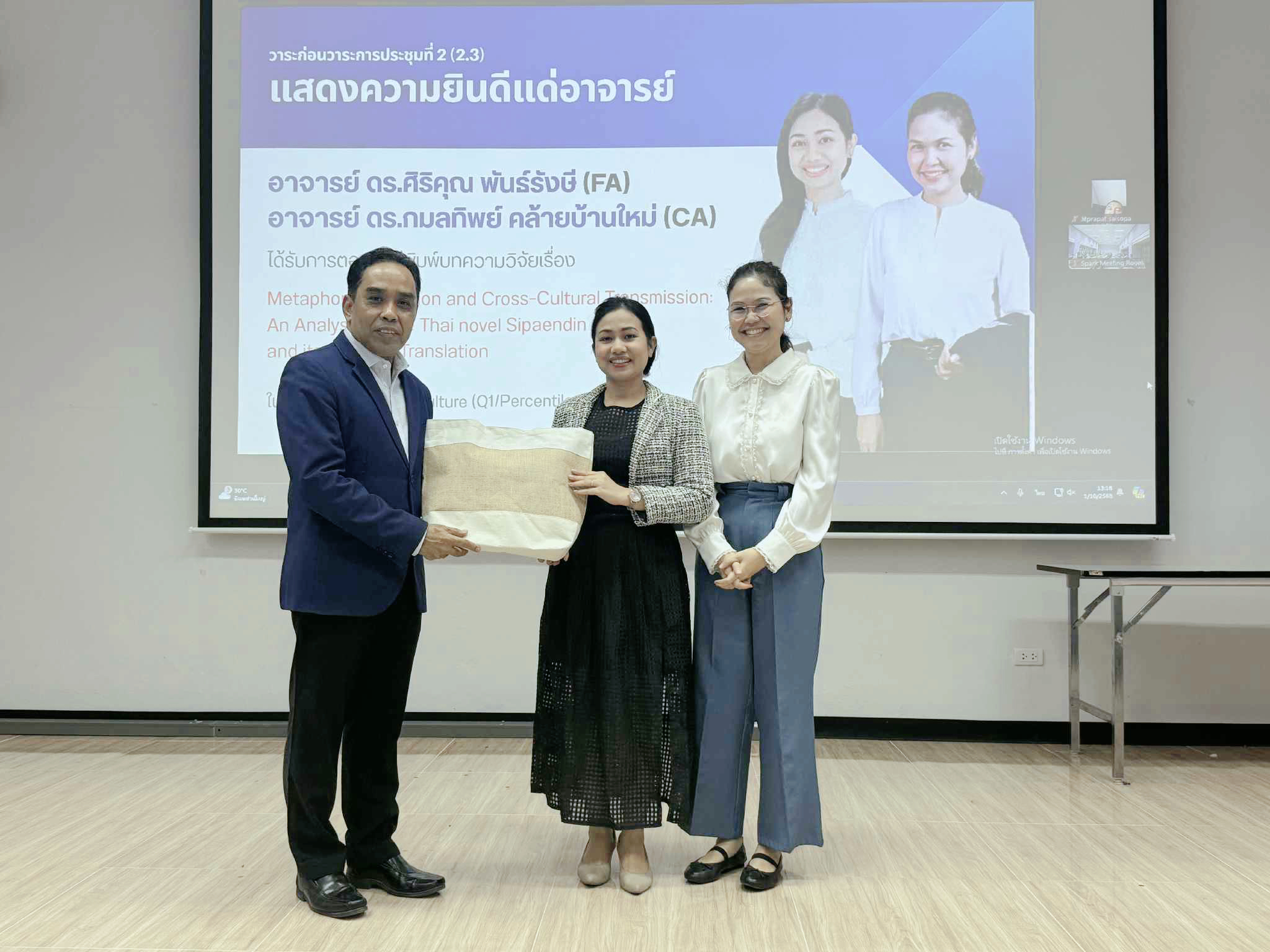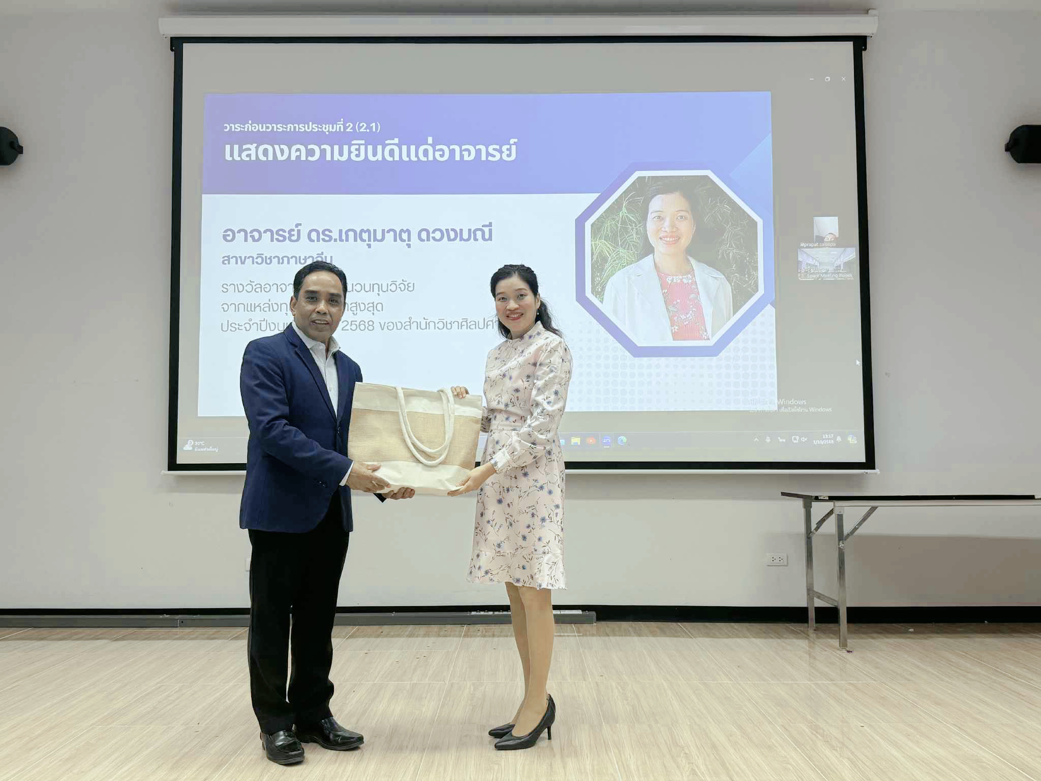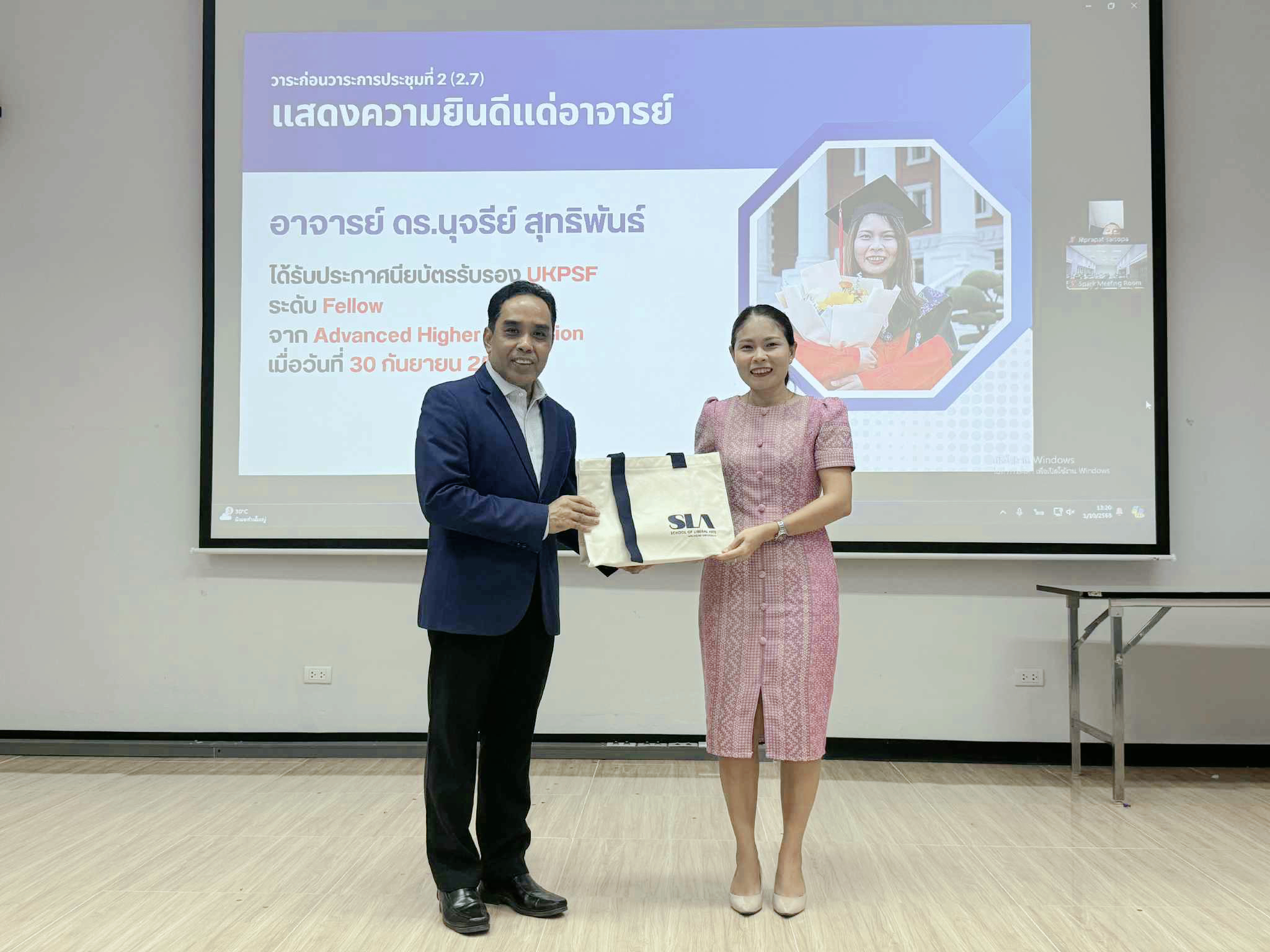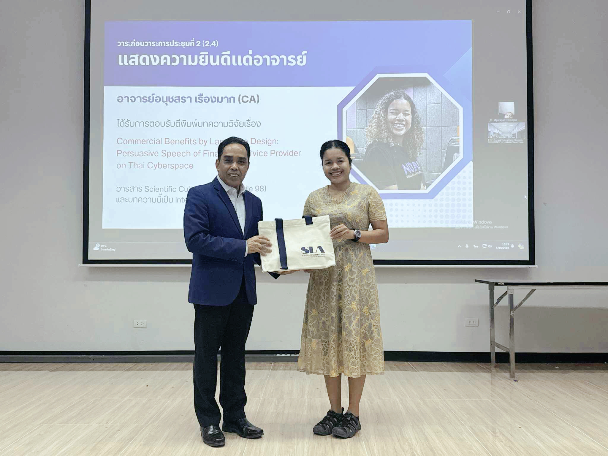 เมื่อวันที่ 1 ตุลาคม 2568 วาระก่อนวาระประชุมบุคลากรสำนักวิชาศิลปศาสตร์ มหาวิทยาลัยวลัยลักษณ์ ประจำเดือนตุลาคม พ.ศ. 2568 ได้รับเกียรติจาก รองศาสตราจารย์ ดร. จรัญ บุญกาญจน์ รองอธิการบดีมหาวิทยาลัยวลัยลักษณ์ และรักษาการแทนคณบดีสำนักวิชาศิลปศาสตร์ มอบของที่ระลึกแด่คณาจารย์ เพื่อแสดงความยินดี และชื่นชมแก่คณาจารย์ ดังนี้