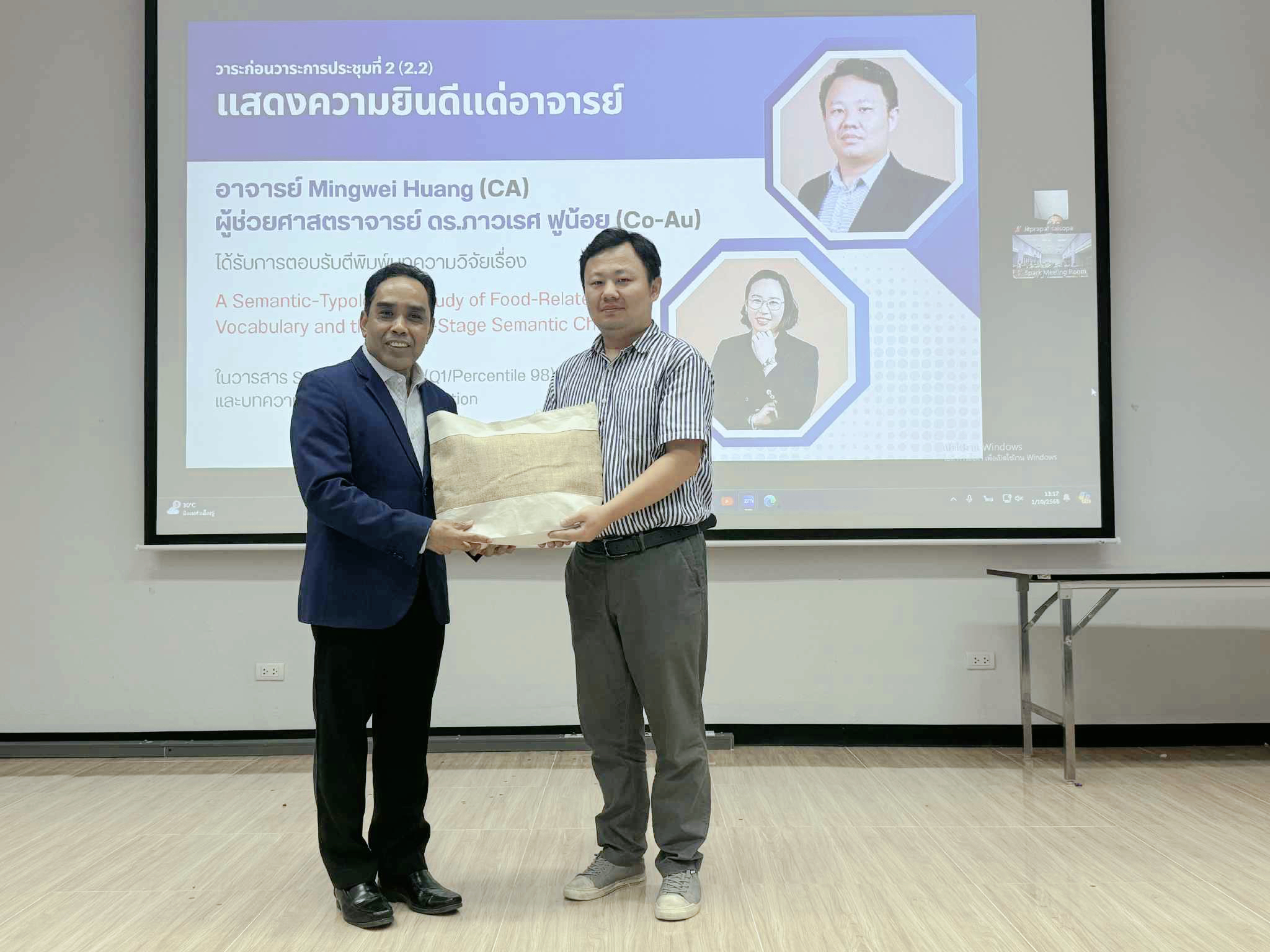 2. Mr. Mingwei Huang (CA) และ ผศ.ดร.ภาวเรศ ฟูน้อย (Co-Au.) ได้ตอบรับตีพิมพ์ บทความวิจัย เรื่อง “A Semantic-Typological Study of Food-Related Vocabulary and the Three-Stage Semantic Chain” ในวารสาร Scientific Culture (Q1/Per.98)