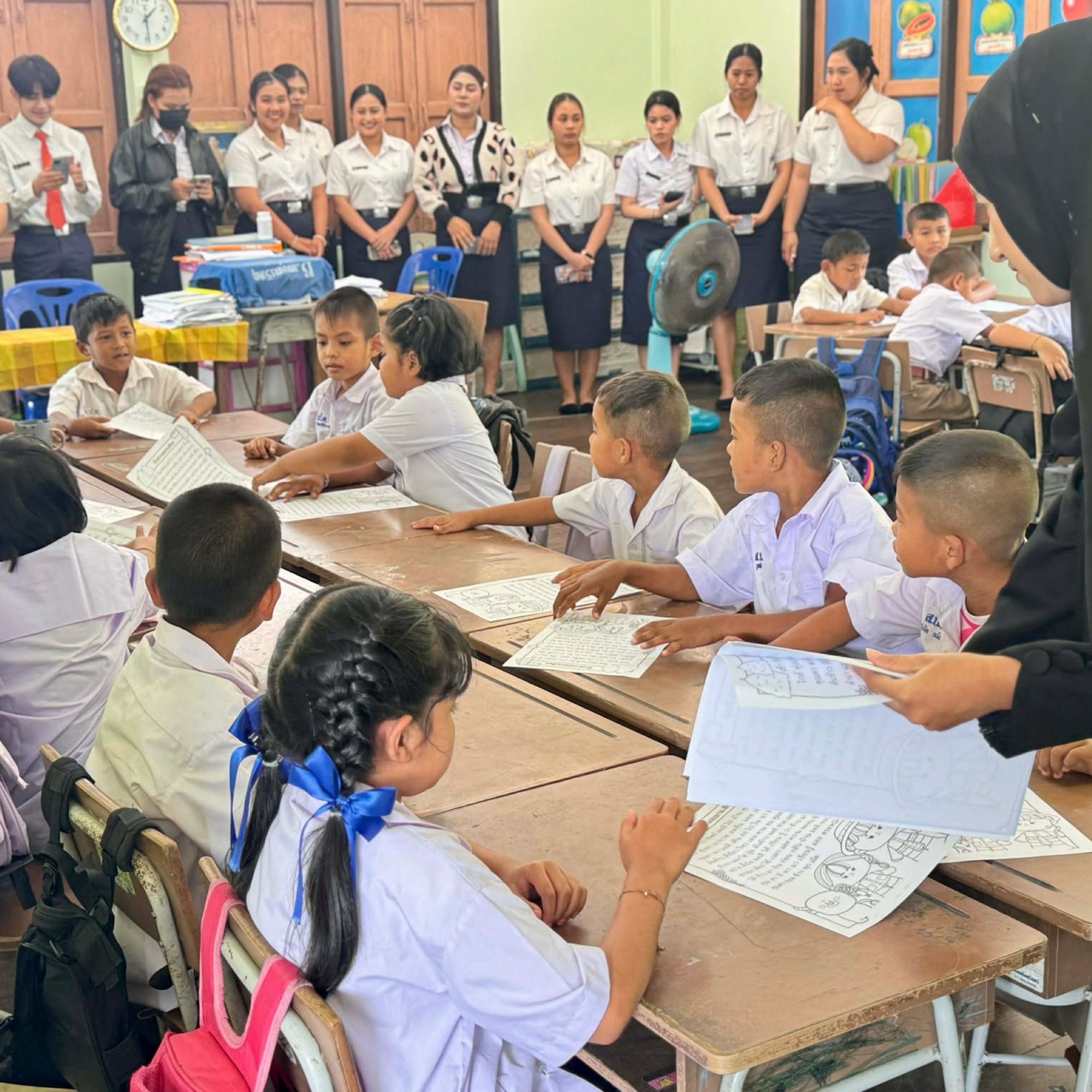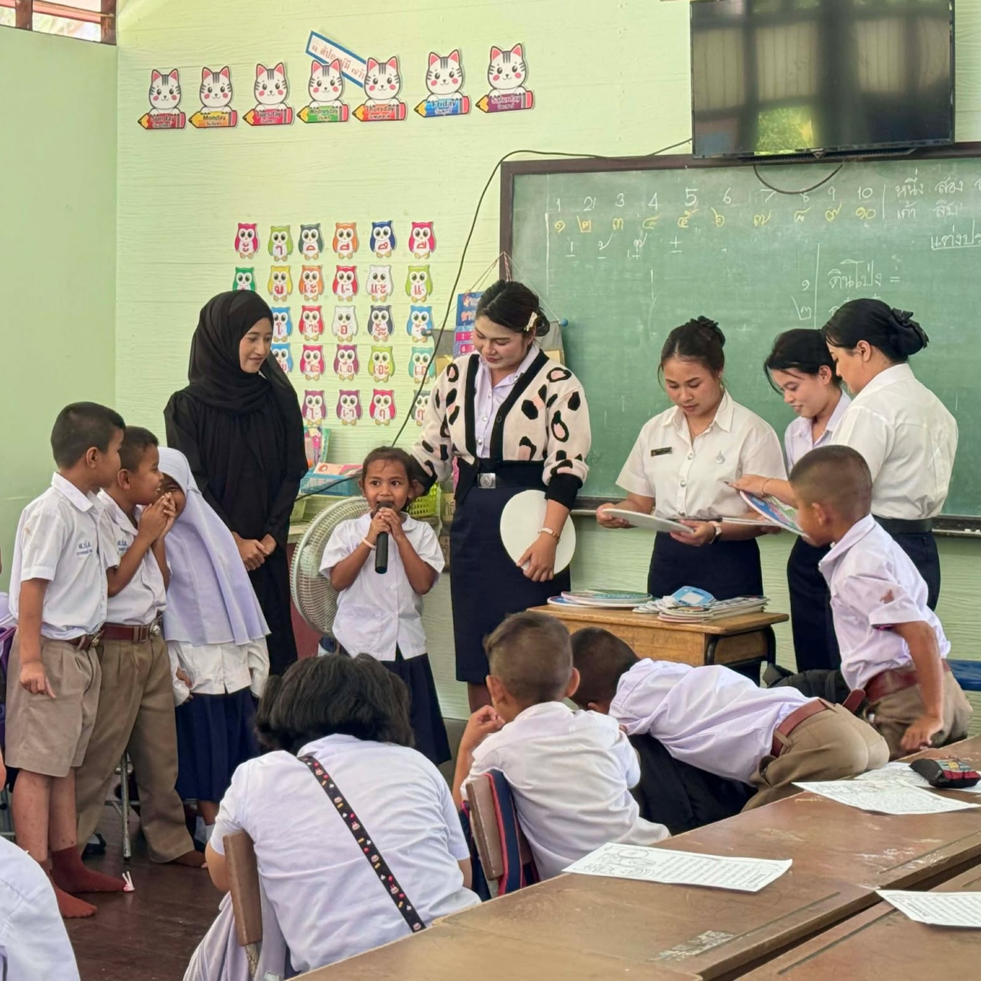 เมื่อวันอังคารที่ 27 มกราคม 2569 เวลา 13.00-15.00 น. นักศึกษาชั้นปีที่ 3 สาขาวิชาภาษาไทย สำนักวิชาศิลปศาสตร์ มหาวิทยาลัยวลัยลักษณ์ ลงพื้นที่สังเกตการสอน ณ โรงเรียนวัดสระประดิษฐ์ อำเภอท่าศาลา จังหวัดนครศรีธรรมราช นำโดย อาจารย์อนุชสรา เรืองมาก อาจารย์ผู้สอนรายวิชา THA62-444 การสอนภาษาไทย วัตถุประสงค์หลักของการลงพื้นที่ในครั้งนี้ ไม่ได้เป็นเพียงการเข้าไปสังเกตพฤติกรรมในห้องเรียนเท่านั้น แต่คือการถอดรหัสทฤษฎีสู่การปฏิบัติจริง เพื่อให้เห็นว่าหลักการสอนและจิตวิทยาการศึกษาที่ได้เรียนมานั้น ถูกนำมาปรับใช้ในบริบทที่หลากหลายอย่างไร นักศึกษาจะได้เรียนรู้ถึง “ศาสตร์และศิลป์ในการจัดการเรียนรู้” ตั้งแต่เทคนิคการเปิดบทเรียนที่น่าสนใจ การเลือกใช้สื่อการสอนที่ตอบโจทย์ ไปจนถึงวิธีการวัดผลที่สะท้อนความสามารถที่แท้จริงของผู้เรียน มากไปกว่านั้น กิจกรรมนี้ยังมุ่งเน้นการทำความเข้าใจธรรมชาติของผู้เรียนอย่างลึกซึ้ง การสังเกตพฤติกรรมในพื้นที่จริงช่วยให้เห็นถึงความแตกต่างระหว่างบุคคล และปฏิสัมพันธ์ที่เกิดขึ้นในชั้นเรียน ซึ่งเป็นข้อมูลสำคัญในการออกแบบการสอนที่เข้าถึงเด็กทุกคนได้อย่างมีประสิทธิภาพ ควบคู่ไปกับการศึกษาการบริหารจัดการชั้นเรียน เพื่อรับมือกับสถานการณ์หน้างานที่ไม่สามารถคาดเดาได้