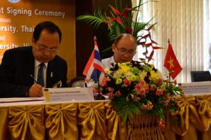 ในภาคเช้ามีการลงนามบันทึกข้อตกลงความร่วมมือทางวิชาการ (MOA) ระหว่างอธิการบดีของทั้งสองมหาวิทยาลัยในเรื่องการแลกเปลี่ยนนักศึกษา ณ ห้องรับรองนายกสภามหาวิทยาลัย อาคารบริหาร โดยหลักสูตรอาเซียนศึกษา มหาวิทยาลัยวลัยลักษณ์ มีแผนที่จะส่งนักศึกษาไปเรียนรู้ภาษาและวัฒนธรรมเวียดนามที่ Haiphong University ตามโครงการ In-Country Language and Cultural Studies Program เป็นระยะเวลา 6 เดือน หรือ 2 ภาคการศึกษา โดยเริ่มที่จะส่งนักศึกษาไปตั้งแต่เดือนธันวาคม 2557