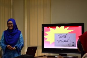 ทั้งนี้ นักศึกษาทั้งสี่ได้มาฝึกปฏิบัติสหกิจศึกษาในหลักสูตรภูมิภาคอาเซียนศึกษาเป็นเวลา 3 เดือน ตั้งแต่วันที่ 1 เมษายน ถึง 30 มิถุนายน 2557 โดยทำหน้าที่สอนภาษามลายูในโรงเรียนเอกชนสอนศาสนาอิสลามสองแห่ง ได้แก่ โรงเรียนมะฮัดอิสลามอีมานียะฮ์มูลนิธิ ตำบลโพธิ์ทอง และโรงเรียนปัญญาสารธรรม มูลนิธิ ตำบลท่าศาลา อำเภอท่าศาลา จังหวัดนครศรีธรรมราช รวมทั้งช่วยจัดเตรียมรายละเอียดและเอกสารประกอบการสอนภาษามลายูสำหรับผู้เริ่มต้น ภายใต้การดูแลของอาจารย์อับดุลรอยะ ปาแนมาแล ในฐานะอาจารย์ที่ปรึกษา