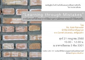 หลักสูตรอาเซียนศึกษาขอเชิญผู้สนใจเข้าร่วมรับฟังและแลกเปลี่ยนความคิดเห็นในการบรรยายพิเศษ Learning through Mistakes: การวิเคราะห์วิธีวิทยาการวิจัยผ่านความผิดพลาดของนักวิจัยคนหนึ่ง โดย Ms. Katie Rainwater นักวิจัย/นักศึกษาปริญญาเอก จาก Cornell University, สหรัฐอเมริกา
