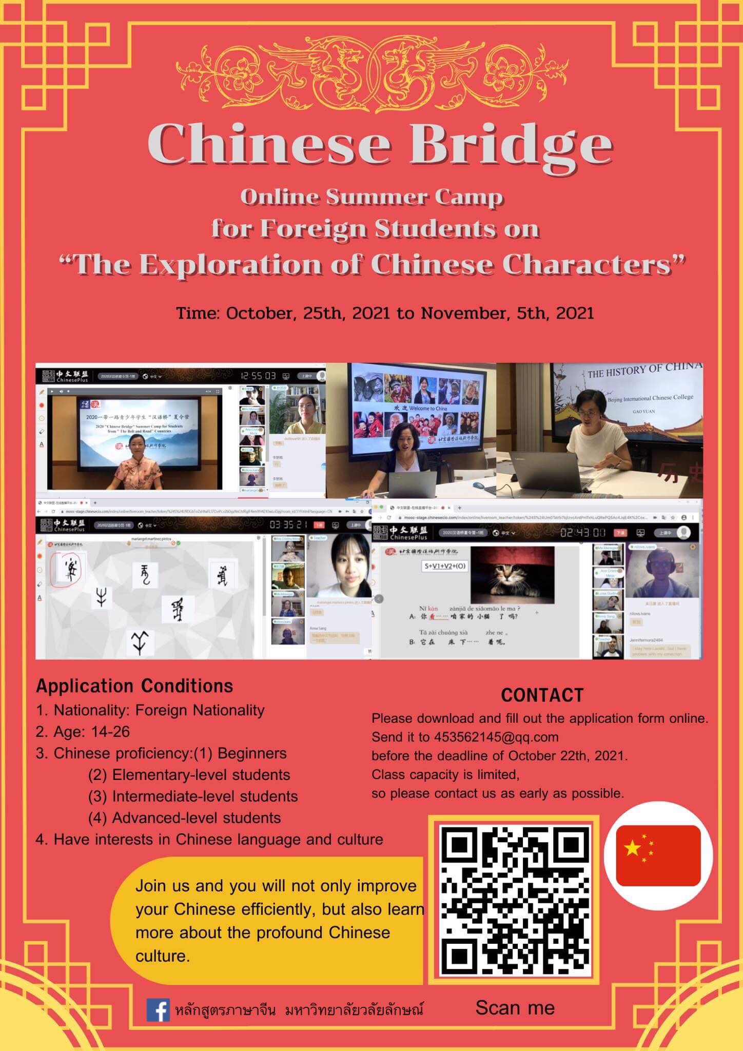 สามารถสมัครได้ตั้งแต่วันนี้ – 22 ตุลาคม 2564 ผ่าน E-mail : 453562145@qq.com