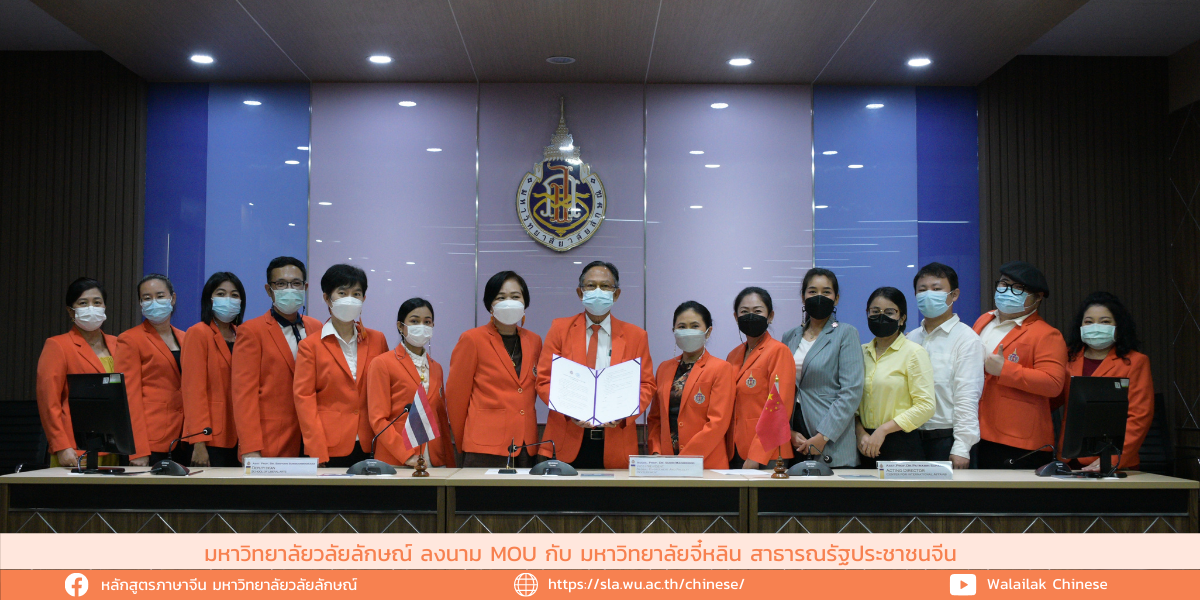 เมื่อวันจันทร์ที่ 13 ธันวาคม 2564 สาขาวิชาภาษาจีน สำนักวิชาศิลปศาสตร์ มหาวิทยาลัยวลัยลักษณ์ ร่วมกับศูนย์กิจการนานาชาติ จัดพิธีลงนามบันทึกข้อตกลงความร่วมมือทางวิชาการระหว่างสำนักวิชาศิลปศาสตร์ มหาวิทยาลัยวลัยลักษณ์ และคณะอักษรศาสตร์ มหาวิทยาลัยจี๋หลิน (College of Humanities, Jilin University) สาธารณรัฐประชาชนจีน โดยมีรองศาสตราจารย์ ดร.สุรินทร์ ไหมศรีกรด รักษาการแทนรองอธิการบดีฝ่ายกิจการต่างประเทศและพัฒนาการเรียนการสอน ในนามรักษาการแทนคณบดีสำนักวิชาศิลปศาสตร์ มหาวิทยาลัยวลัยลักษณ์ ลงนามความร่วมมือ MOU กับ Prof. Zhang Conghao คณบดีคณะอักษรศาสตร มหาวิทยาลัยจี๋หลิน (College of Humanities, Jilin University) สาธารณรัฐประชาชนจีน ณ ห้องประชุมเขาหลวง อาคารสหกิจศึกษา