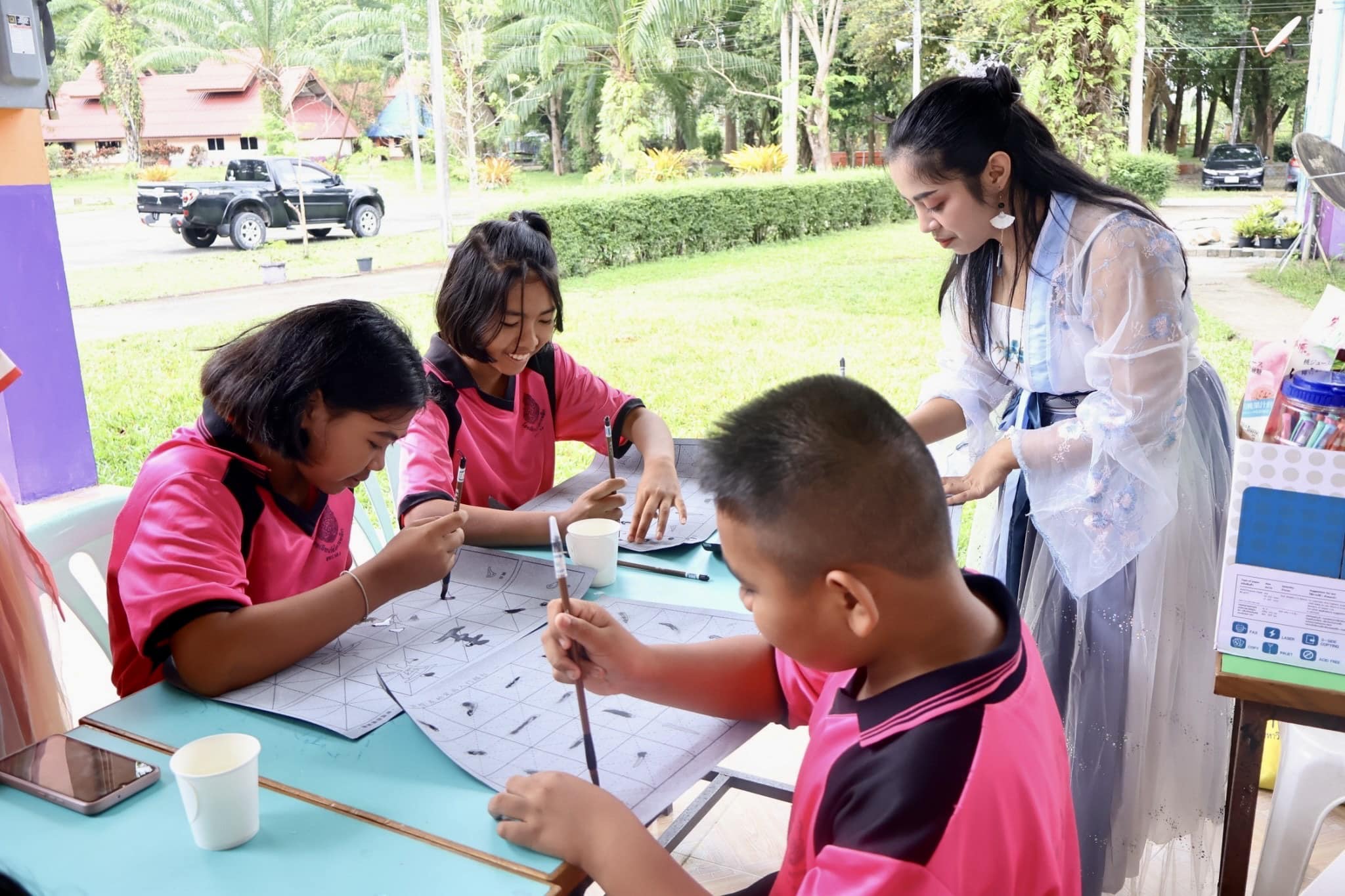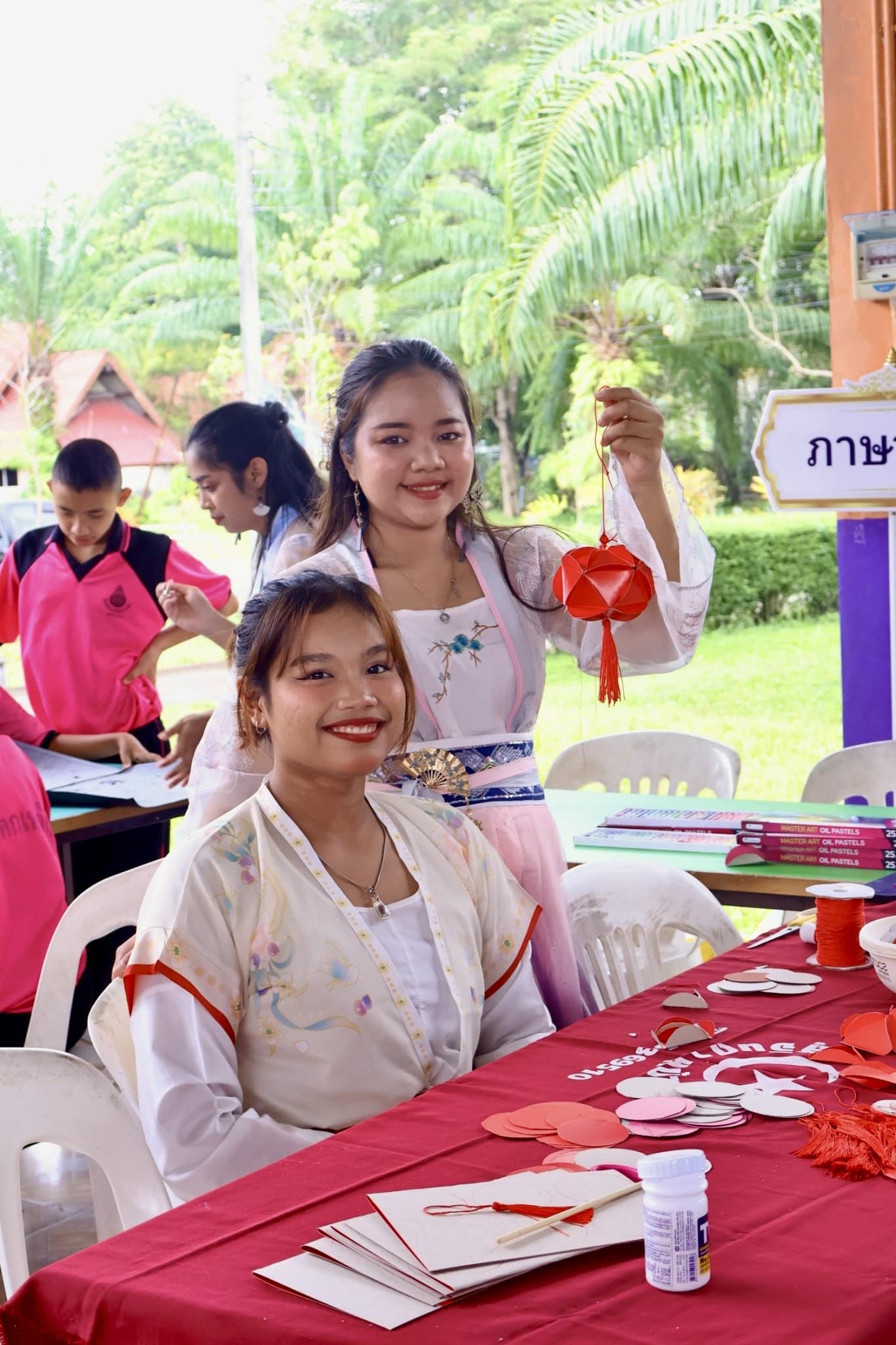 วันที่ 12 มีนาคม 2568 สาขาวิชาภาษาจีน สำนักวิชาศิลปศาสตร์ นำโดย ผศ.ดร.ไพรินทร์ ศรีสินทร อ.ดร.เกตมาตุ ดวงมณี อ.ดร.นุจรีย์ สุทธิพันธ์ และนักศึกษาหลักสูตรภาษาจีนชั้นปีที่ 1 เข้าร่วมจัดกิจกรรมภาษาและวัฒนธรรมจีนในงาน “Open House” เปิดบ้านพอเพียง ช.ม. ครั้งที่ 3 ณ โรงเรียนชุมชนใหม่ โดยคณะอาจารย์และนักศึกษาได้จัดกิจกรรมการเขียนพู่กันจีนและการทำโคมไฟ เพื่อส่งเสริมการเรียนรู้ภาษาและวัฒนธรรมจีนให้กับเยาวชนและชุมชนในพื้นที่ใกล้เคียง