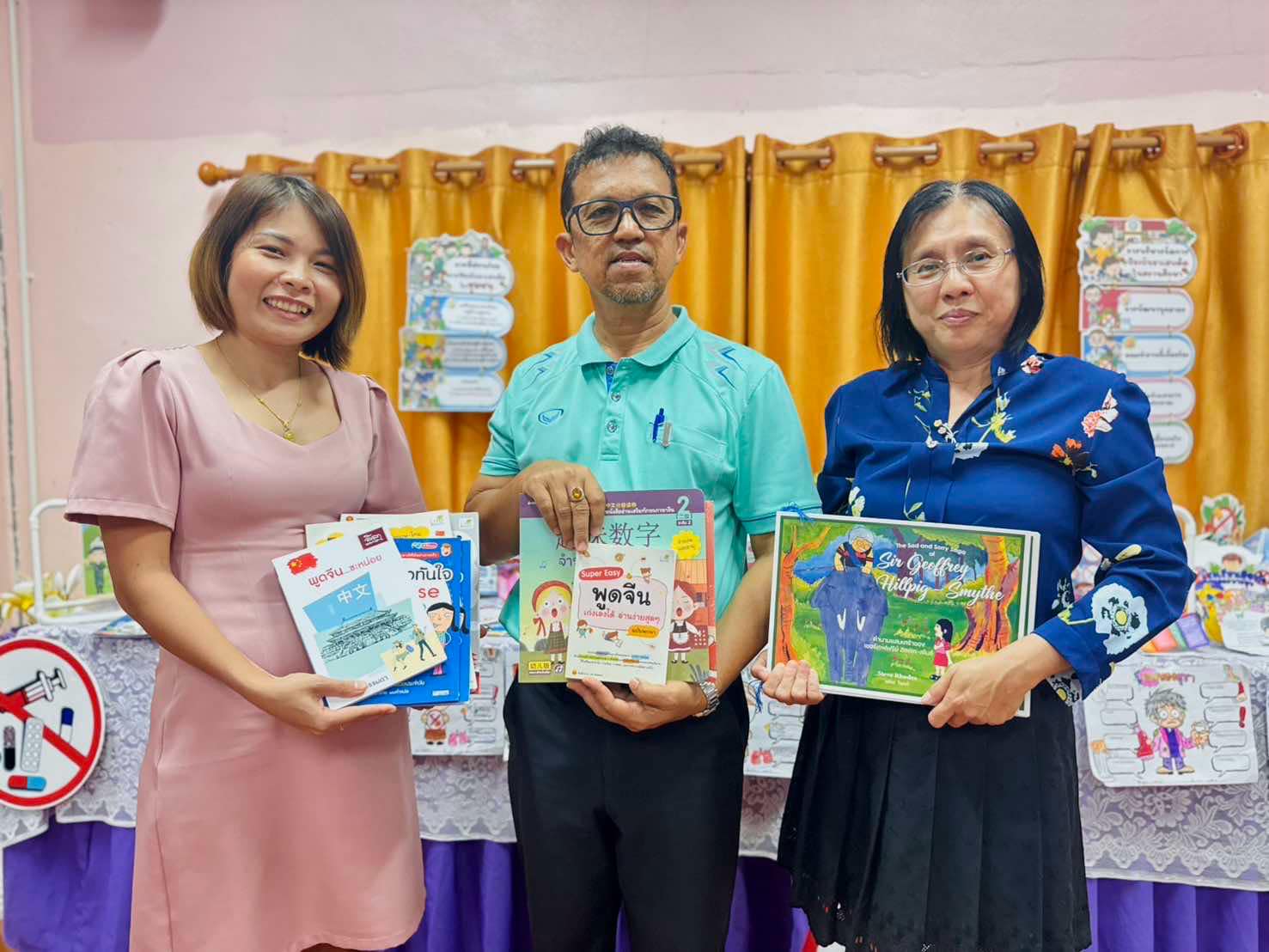 วันที่ 19 กุมภาพันธ์ 2567 ที่ผ่านมา สาขาวิชาภาษาจีน สำนักวิชาศิลปศาสตร์ นำโดย ผศ.ดร.ไพรินทร์ ศรีสินทร และ อ.ดร.นุจรีย์ สุทธิพันธ์ ได้มอบหนังสือภาษาจีน ให้แก่ โรงเรียนชุมชนใหม่ โดยกิจกรรมดังกล่าวเป็นส่วนหนึ่งของ โครงการยกระดับโรงเรียนชุมชนใหม่สู่โรงเรียนต้นแบบด้านการศึกษาอย่างยั่งยืน: กิจกรรมสนุกคิด สนุกทำผ่านกิจกรรมนันทนาการของจีนเพื่อส่งเสริมการเรียนรู้ที่ยั่งยืน ที่มุ่งเน้นการส่งเสริมการเรียนรู้ผ่านการอ่าน นอกเหนือจากการจัดกิจกรรมส่งเสริมความรู้ทางวัฒนธรรมจีนภายในห้องเรียน ซึ่งการมอบหนังสือในครั้งนี้ไม่เพียงเป็นการเพิ่มทรัพยากรทางการศึกษาให้แก่ห้องสมุดของโรงเรียน แต่ยังเป็น โอกาสสำคัญในการจุดประกายความสนใจและสร้างแรงบันดาลใจ ให้แก่นักเรียนในการศึกษาภาษาจีน ซึ่งเป็นภาษาสำคัญในระดับสากล นอกจากนี้อาจารย์จากสาขาภาษาจีนยังได้ร่วมพูดคุยแลกเปลี่ยนความรู้กับผู้อำนวยการของโรงเรียนชุมชนใหม่ พร้อมให้คำแนะนำเกี่ยวกับการใช้หนังสือเพื่อพัฒนาทักษะด้านภาษาจีน ไม่ว่าจะเป็นการฝึกอ่าน ฝึกเขียน หรือเสริมสร้างความเข้าใจเกี่ยวกับวัฒนธรรมจีน